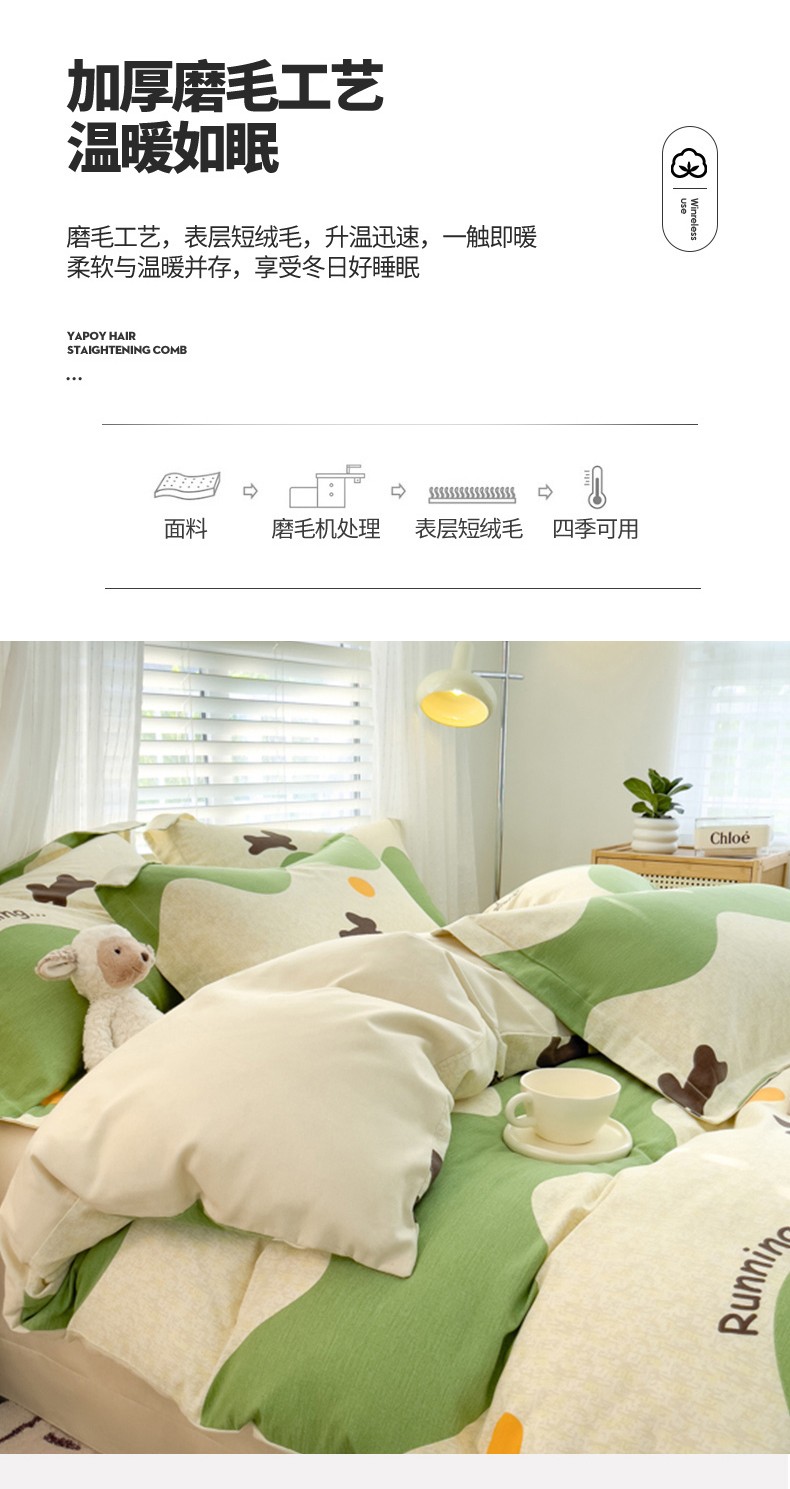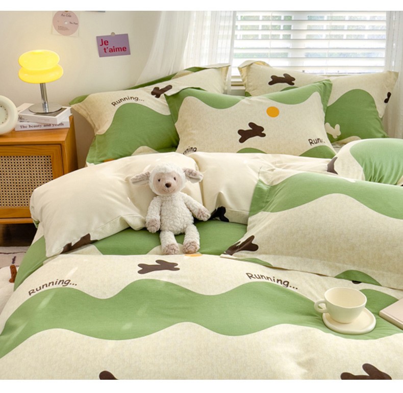 (总)佰亿莱 2024直播爆款小清新简约风全棉加厚磨毛四件套,爱心格,波浪兔,花萌,花园兔,咖啡熊,萌萌狗,时尚花季,时尚恐龙,田园花,郁金香,格韵,黑大格,简约-蓝,简约-绿,洛卡灰,绿格,斯诺克,银杏,羽叶,云舒粉