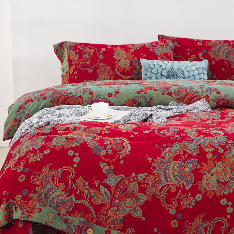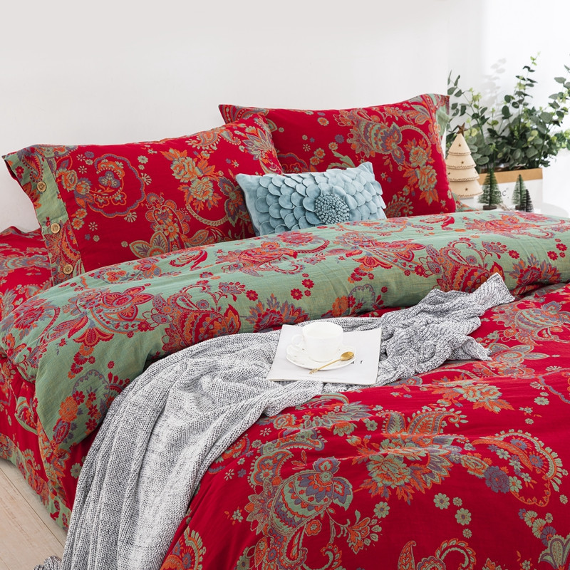 (总)双层纱家居 2025新款全棉纯棉双层纱工艺款四件套,素纱蝶梦-红蕊,素纱蝶梦-陌森,素纱蝶梦-青栀,素纱蝶梦-纤芷,素纱蝶梦-南鸢,素纱蝶梦-玉茗