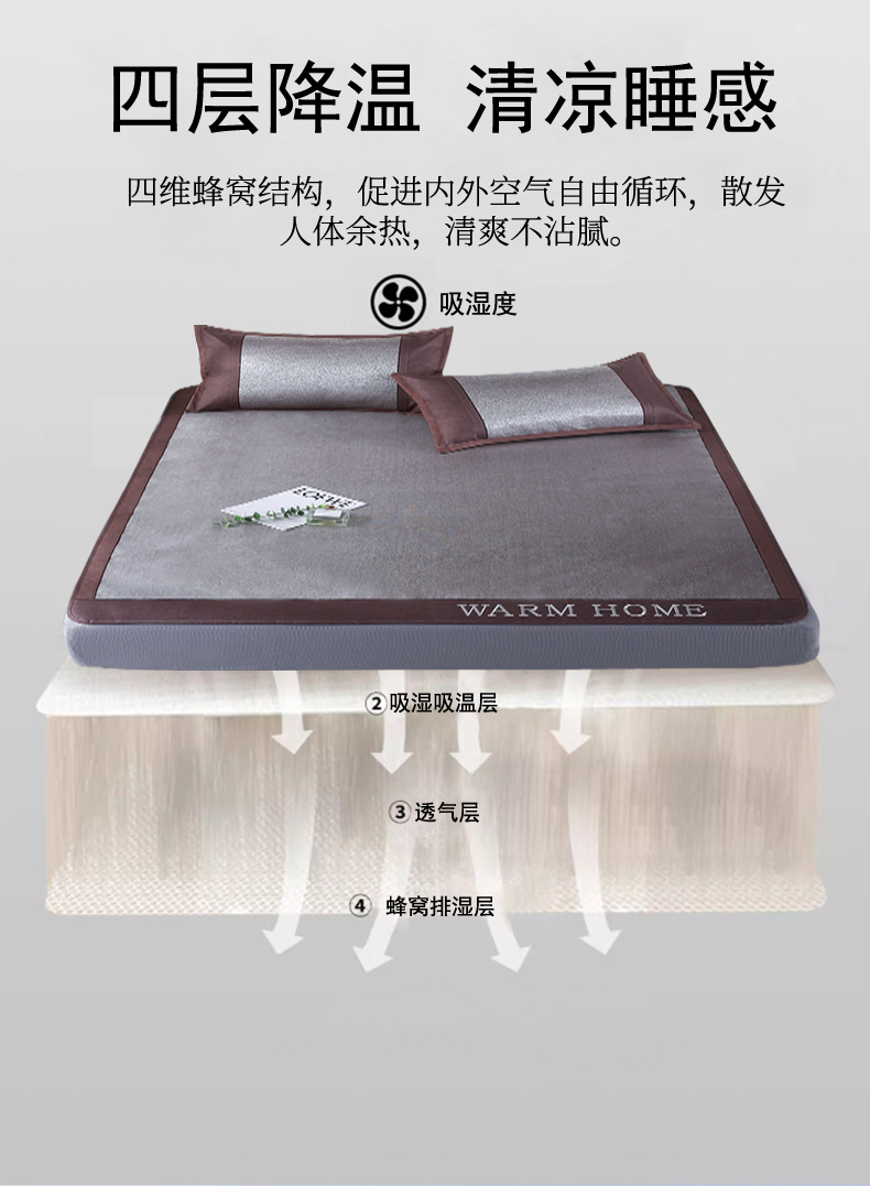 (总)莱轩席业 2024新款A类抗菌刺绣冰丝席条席款凉席,冰川绿,冰川粉,冰川咖,冰川蓝