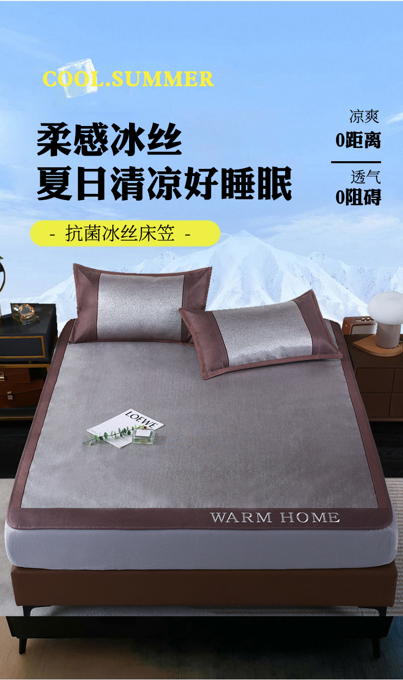 商品名称:莱轩席业 2024新款A类抗菌刺绣冰丝席床笠款 冰川咖