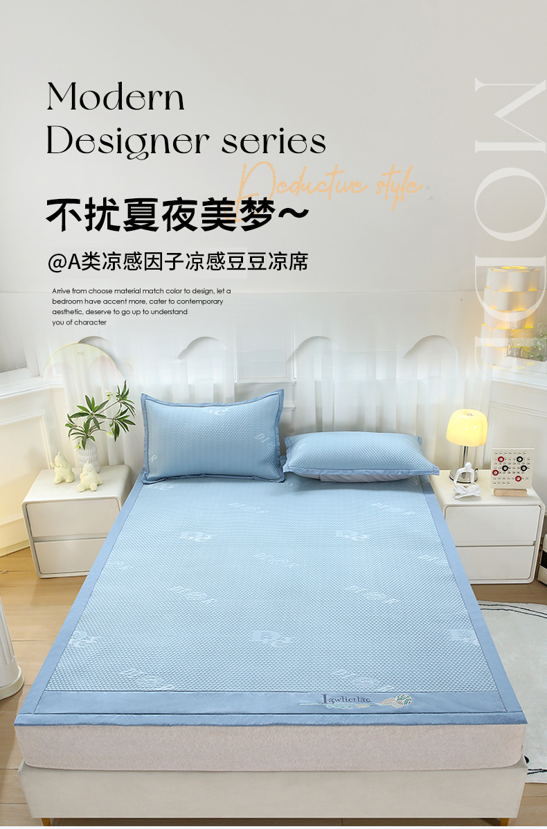 商品名称:青雅 2025新款凉感因子凉豆豆凉席 字母-蓝
