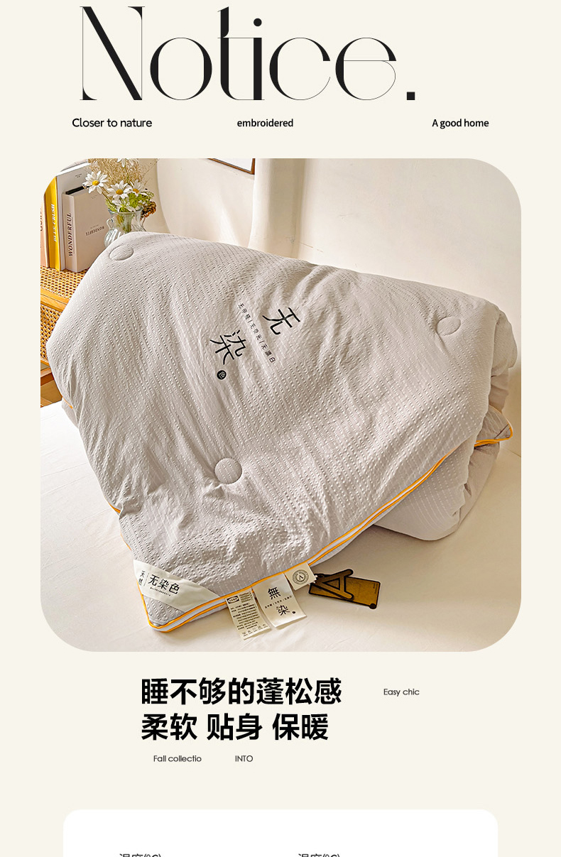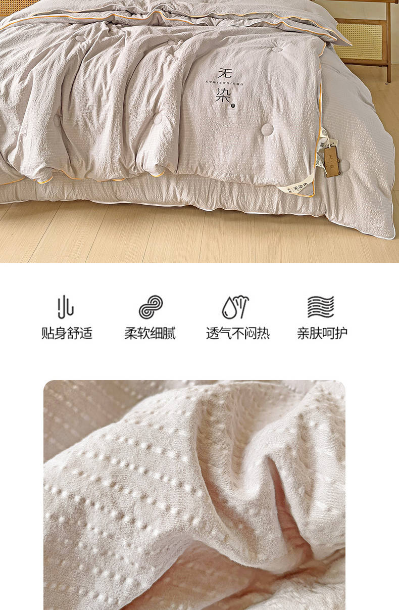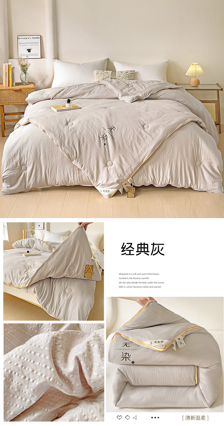 当前位置: 91家纺网 > 商品网购 > 被子 > 冬被 > 梦莎被业 2025新款A类无染针织水洗棉大豆子母被 经典灰