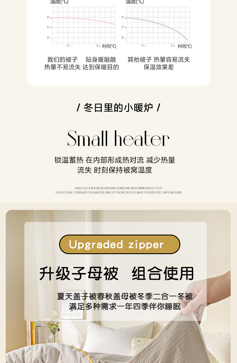 (总)梦莎被业 2025新款A类无染针织水洗棉大豆被拉链款二合一子母被春秋加厚冬被,经典灰,抹茶绿,优雅玉,珍珠白