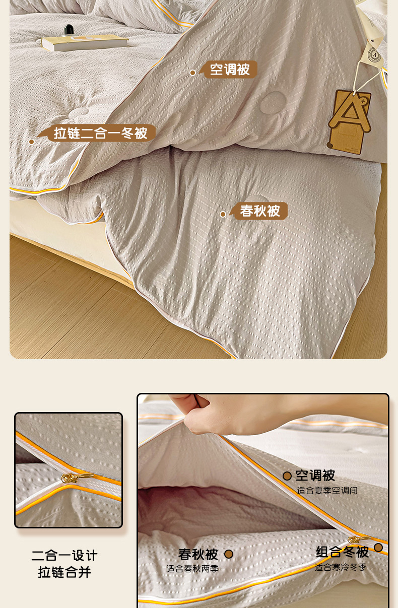 • 91家纺网 家纺一手货源 找家纺 (总)梦莎被业 2025新款A类无染针织水洗棉大豆纤维被二合一拉链款子母被春秋冬被,经典灰,抹茶绿,优雅玉,珍珠白