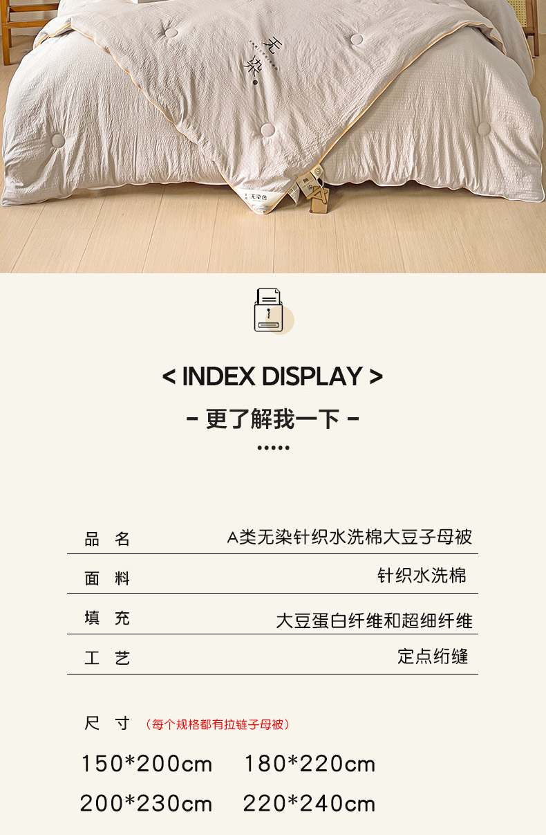 • 91家纺网 家纺一手货源 找家纺 (总)梦莎被业 2025新款A类无染针织水洗棉大豆被拉链款二合一子母被春秋加厚冬被,经典灰,抹茶绿,优雅玉,珍珠白