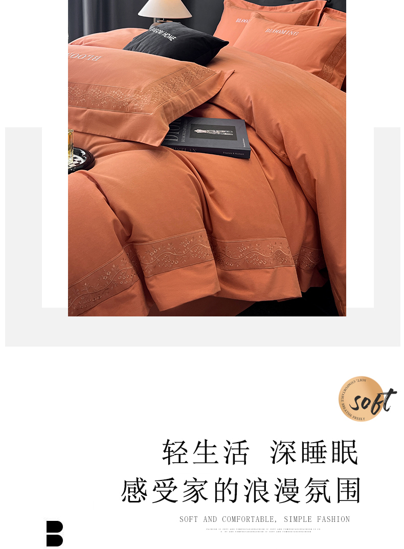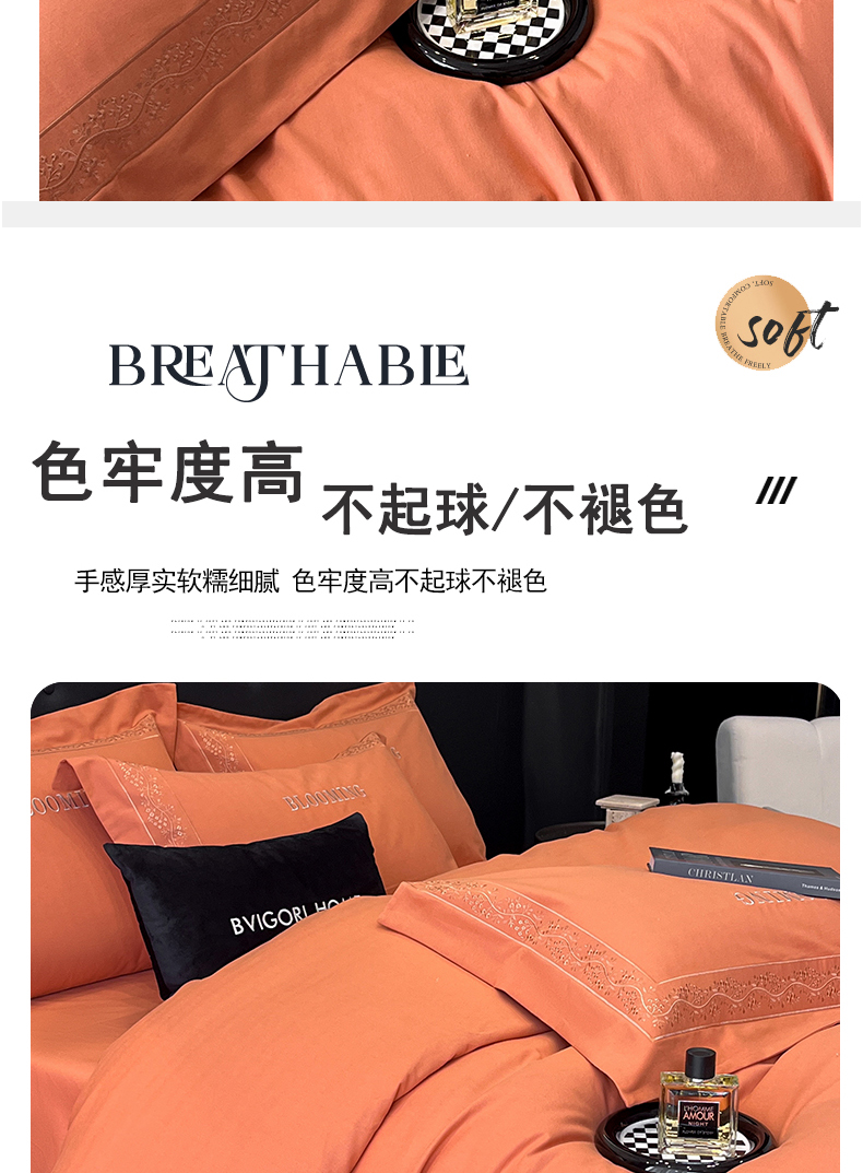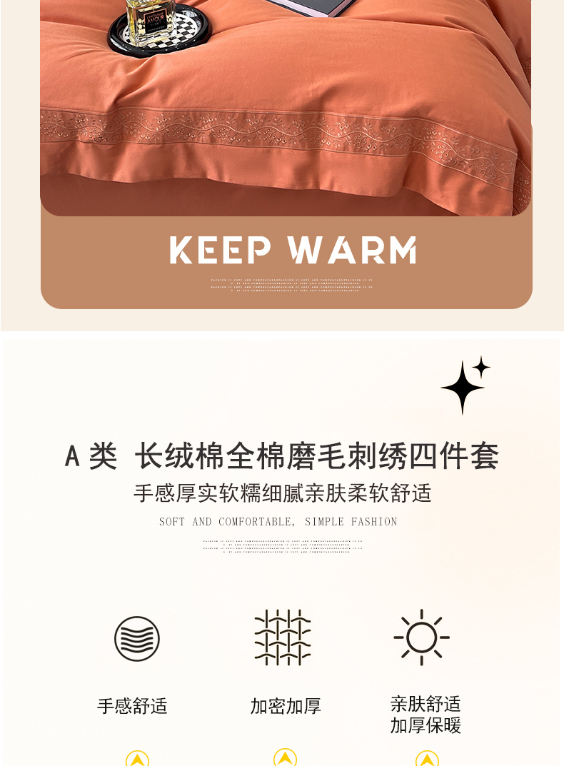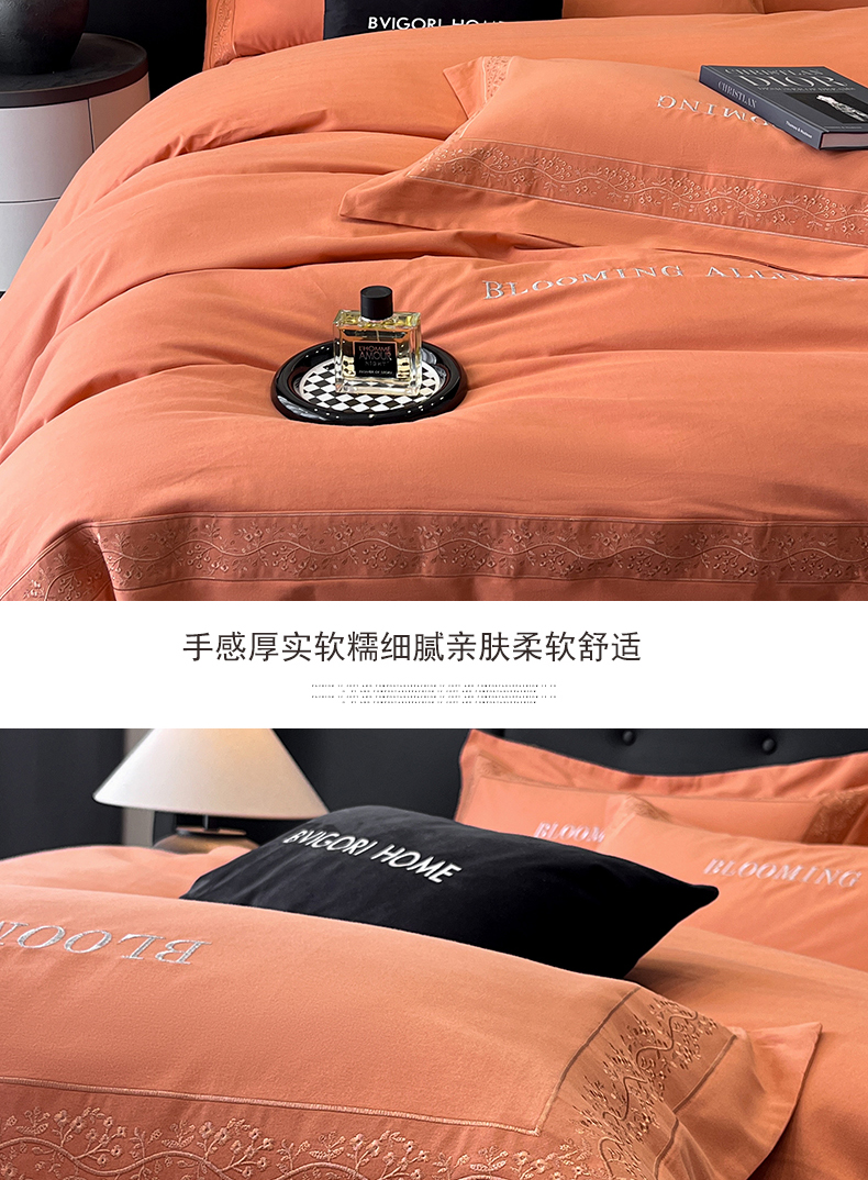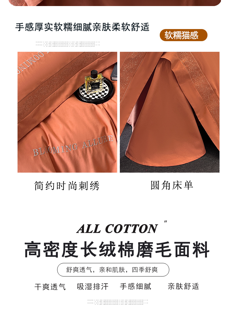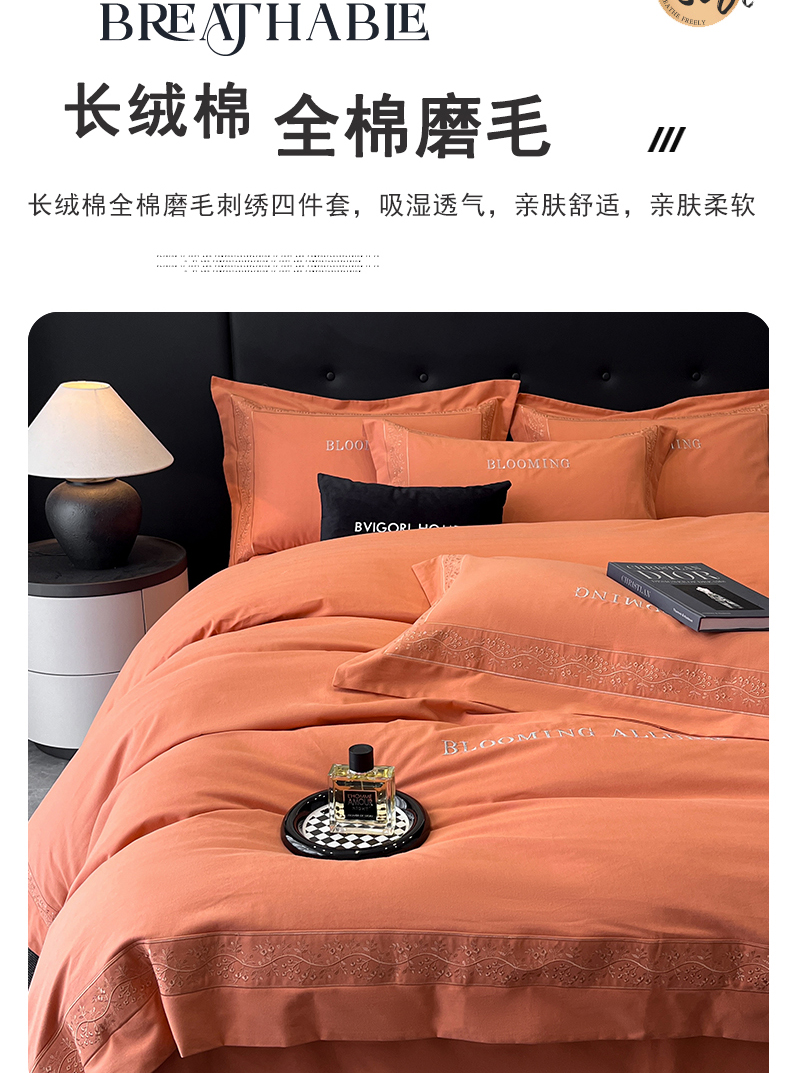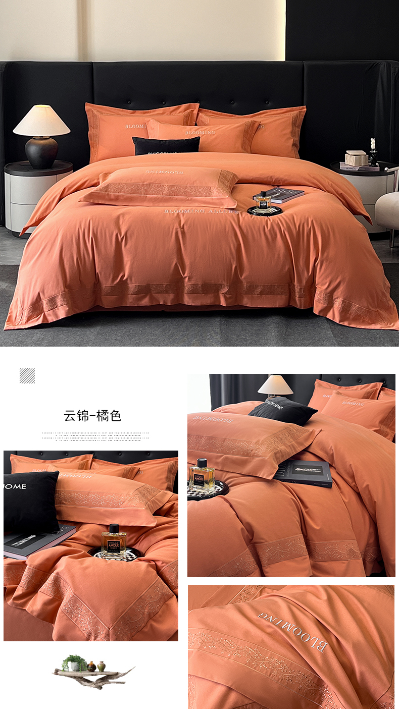 商品名称:安妮家居 2024新款A类云锦长绒棉全棉磨毛四件套含礼盒包装 云锦-橘色