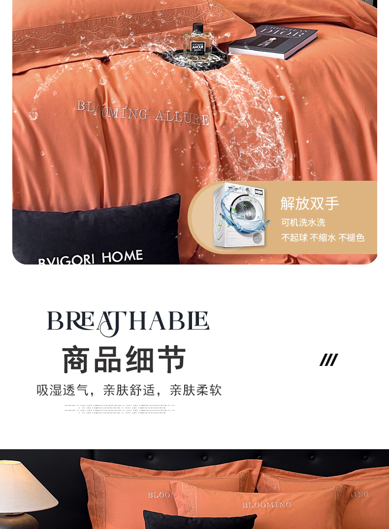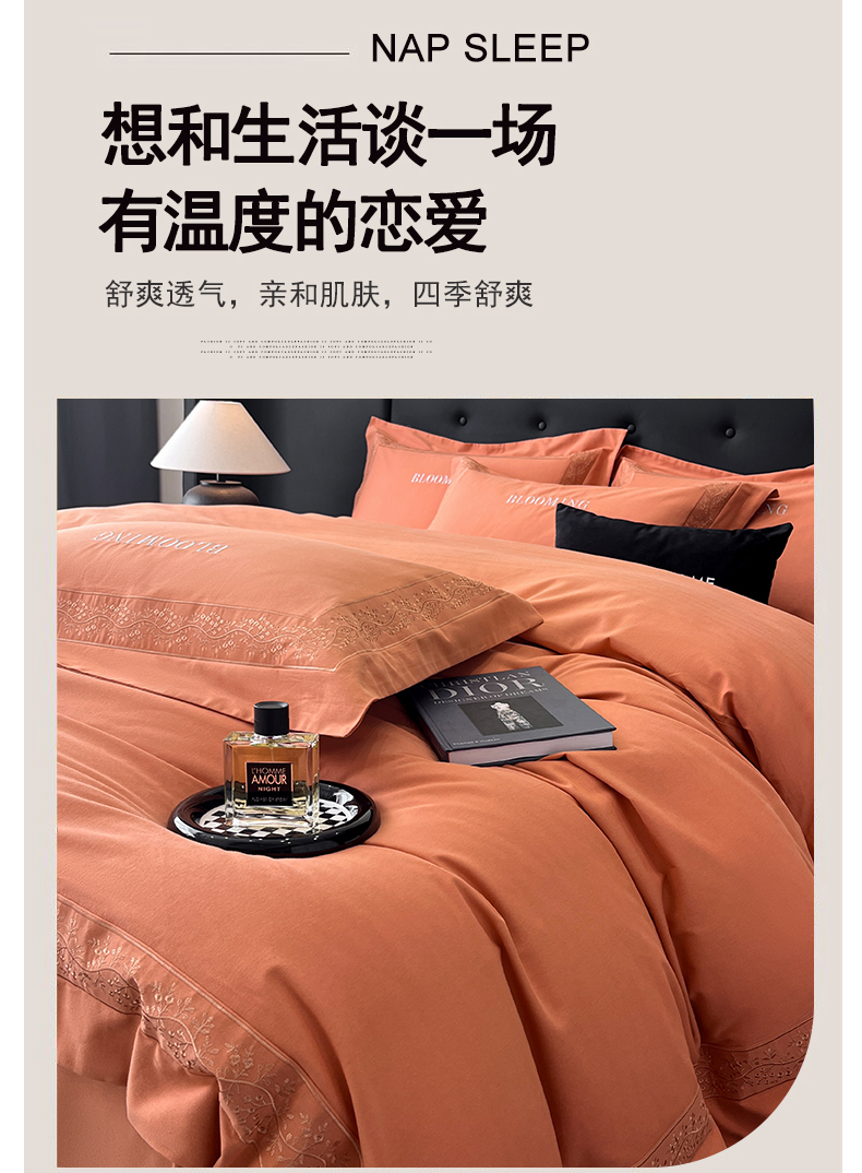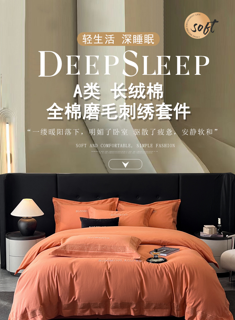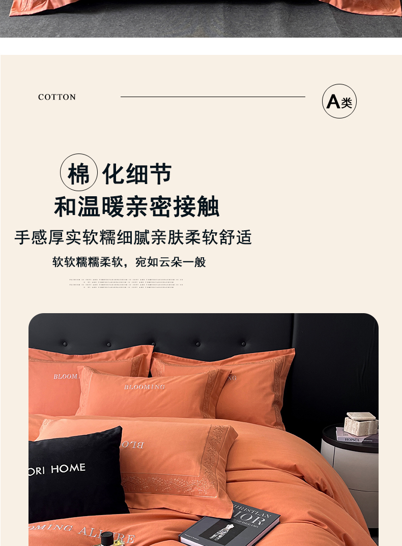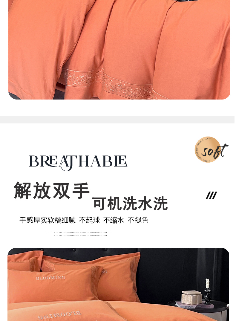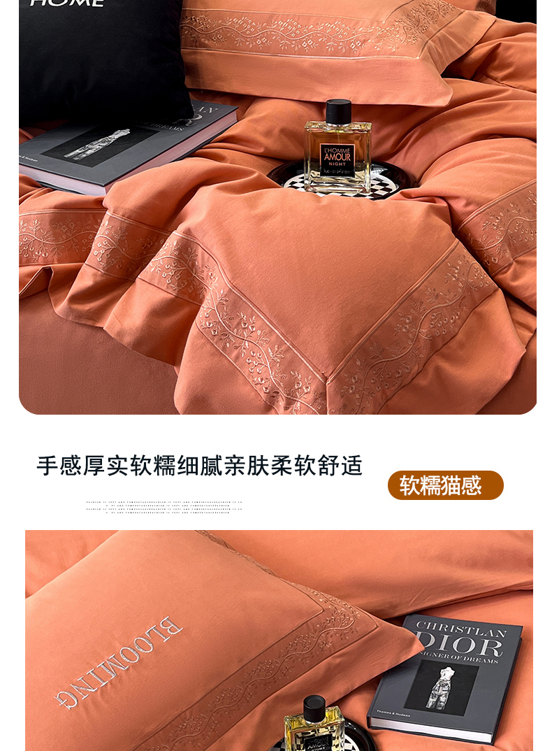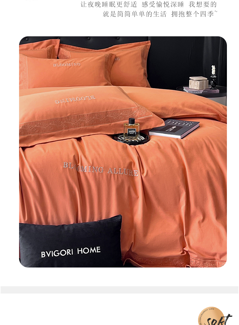 商品名称:安妮家居 2024新款A类云锦长绒棉全棉磨毛四件套含礼盒包装 云锦-橘色