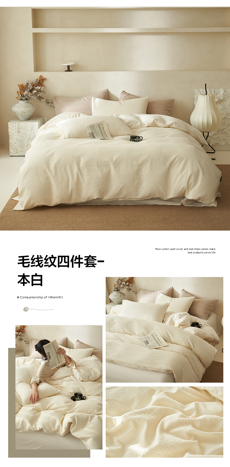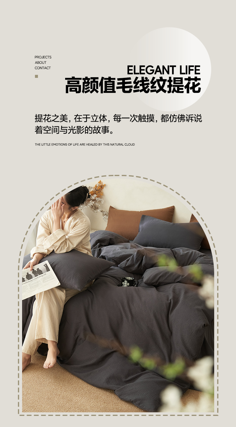 商品名称:2025新款纯棉水洗棉三层线球纹提花四件套 毛线纹四件套-焦糖