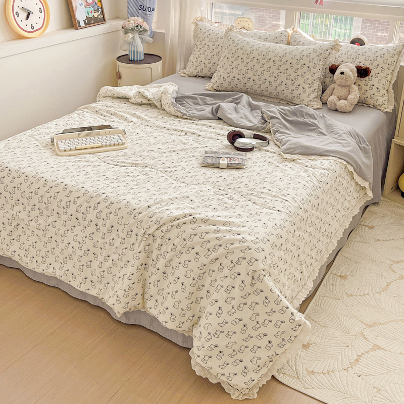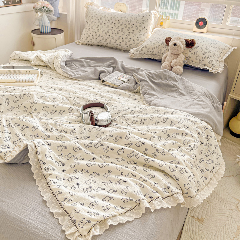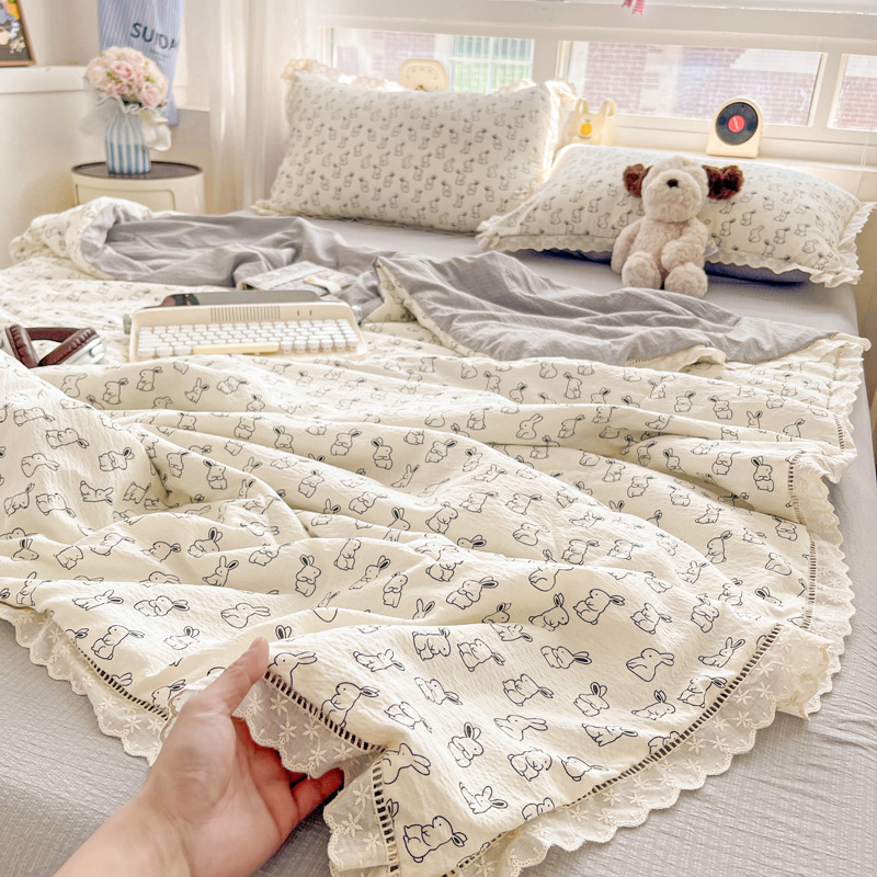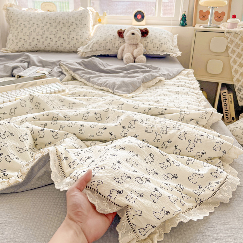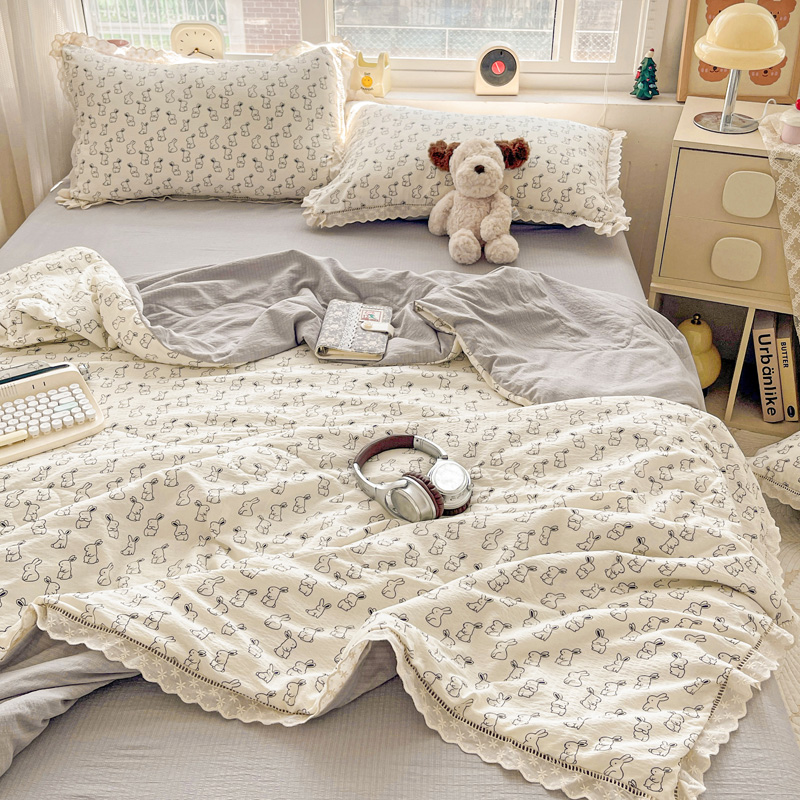 2025新款云感皱皱纱全棉花边款夏被四件套