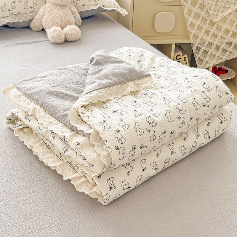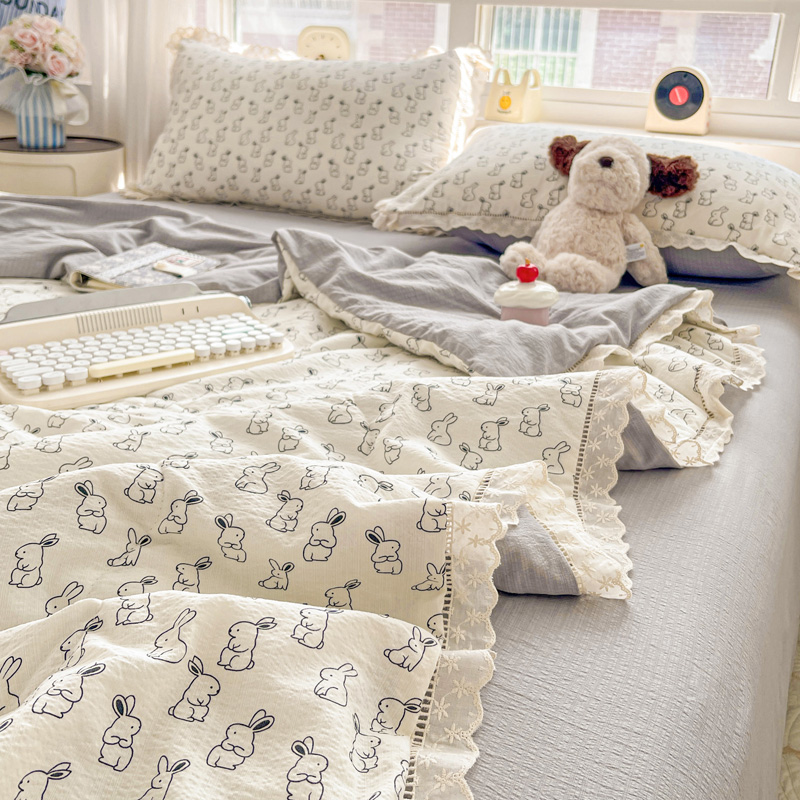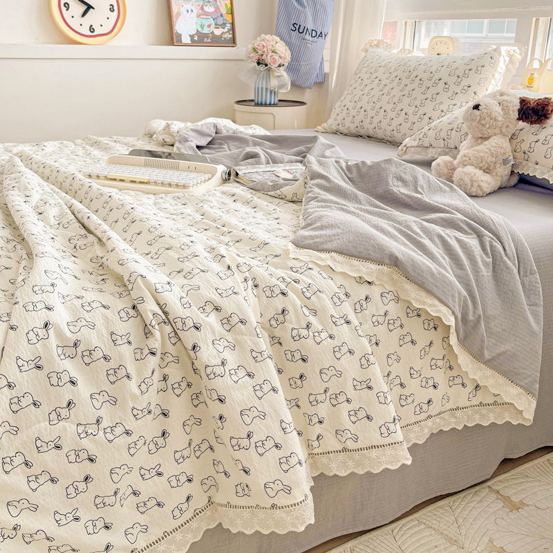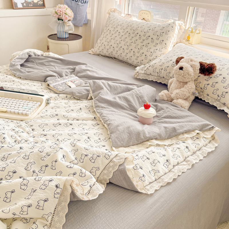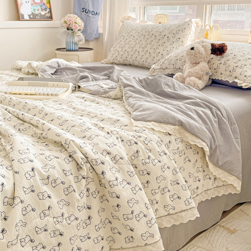 2025新款云感皱皱纱全棉花边款夏被四件套
