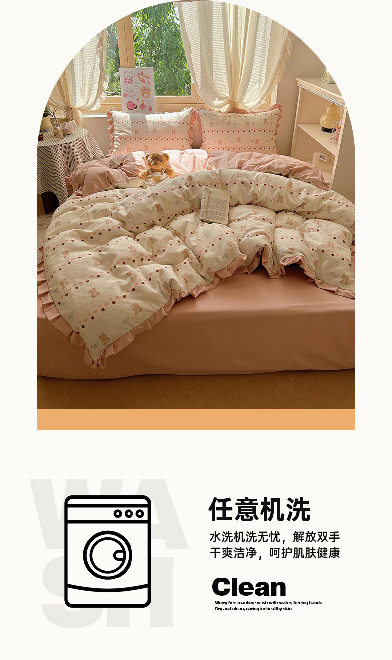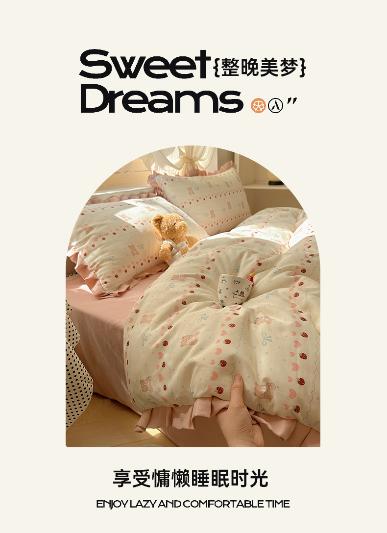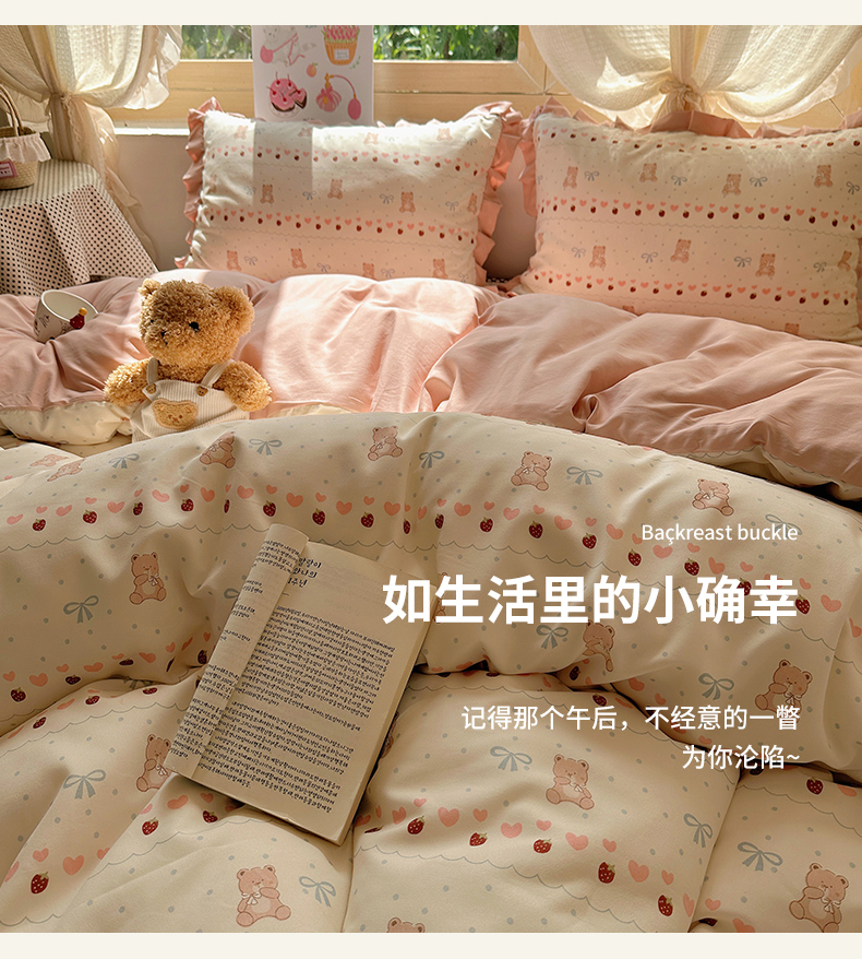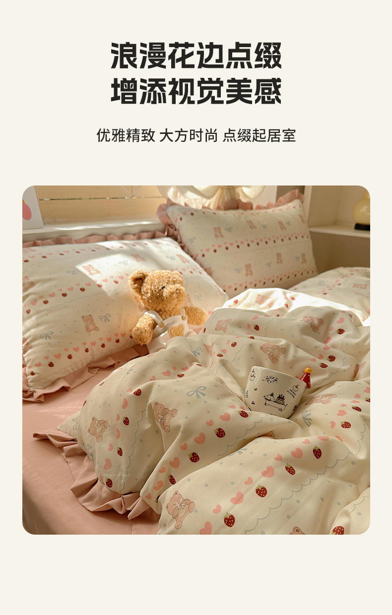 当前位置: 91家纺网 > 商品网购 > 床品套件 > 四件套 > 双层纱四件套 > 韩巢家纺 2025新款针织双层纱花边款被套直播热销款四件套学生宿舍床单三件套-(提供卖家秀) 可爱熊