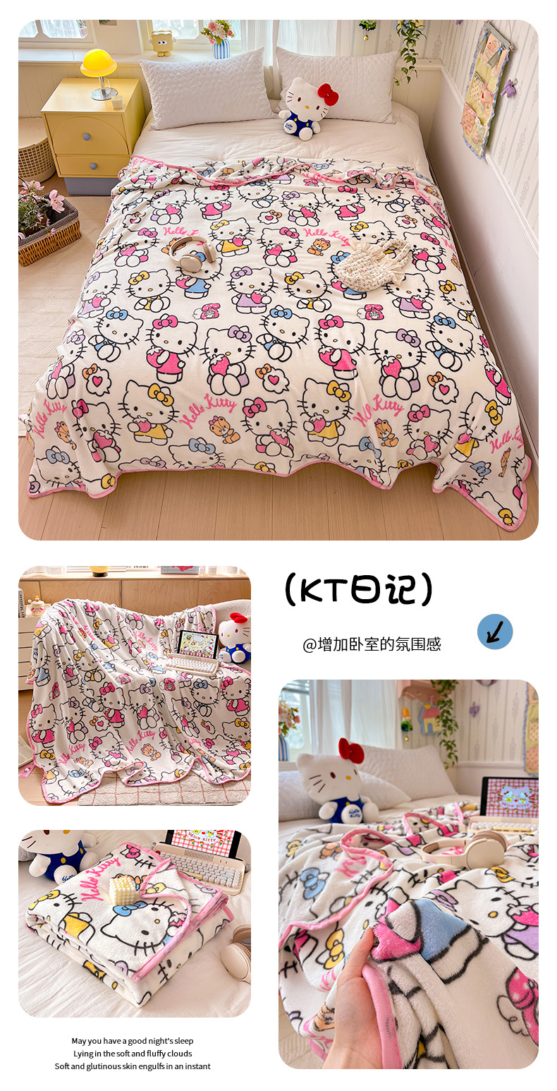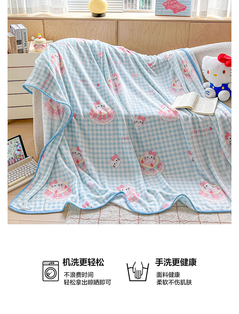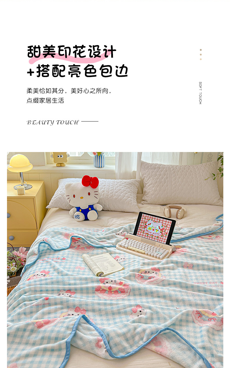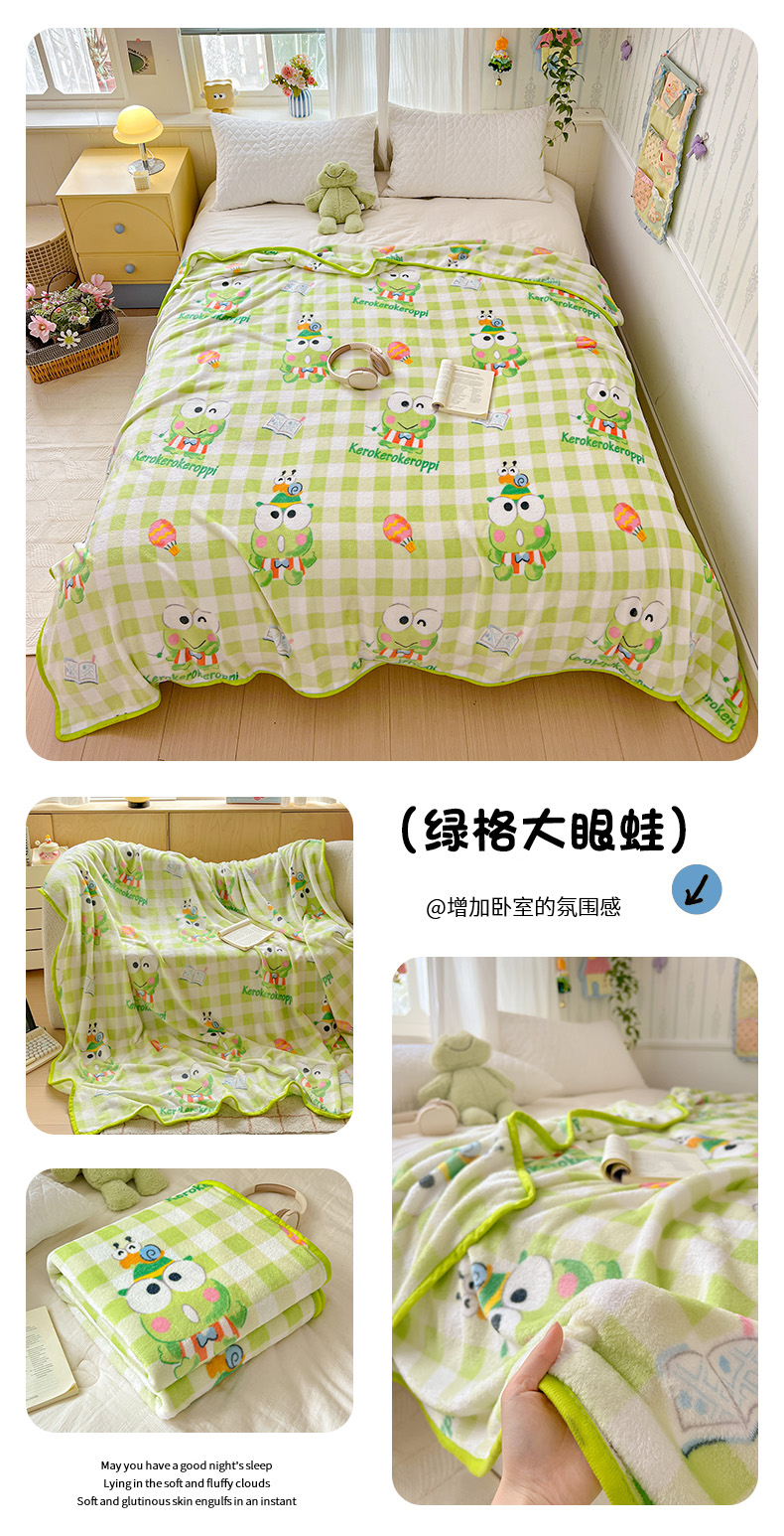 富米莱(原臻工厂) 2025新款正版授权三丽鸥高克重卡通牛奶绒毛毯多功能毯子盖毯一搭配亮色包边 绿格大眼蛙