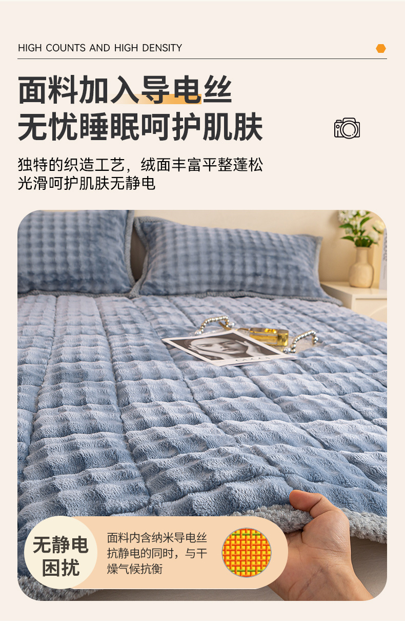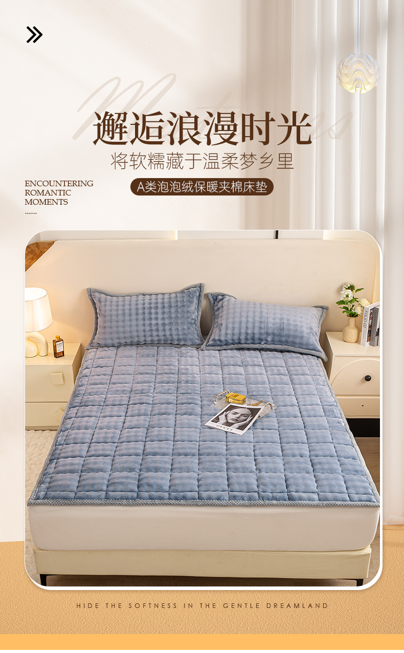 正邦家纺 2025新款泡泡绒床褥床垫 雾蓝