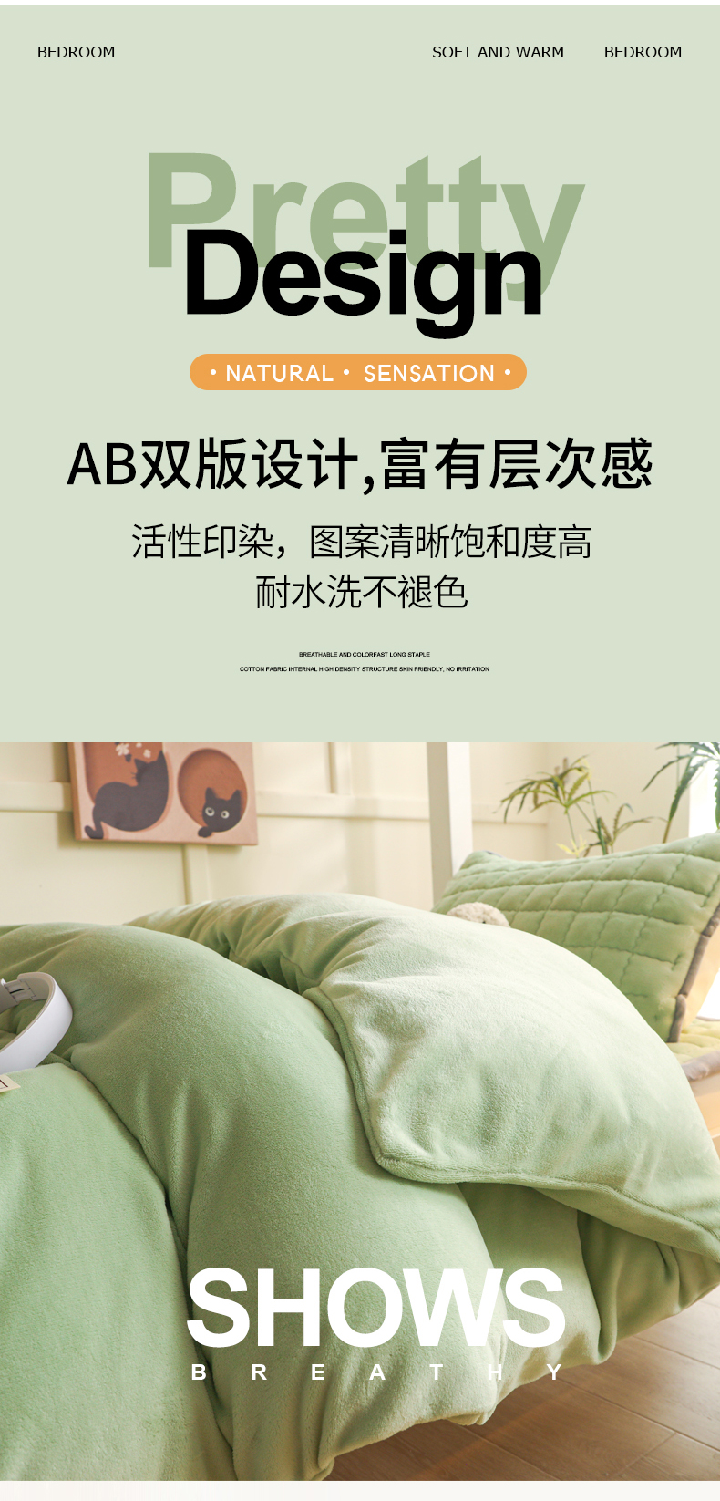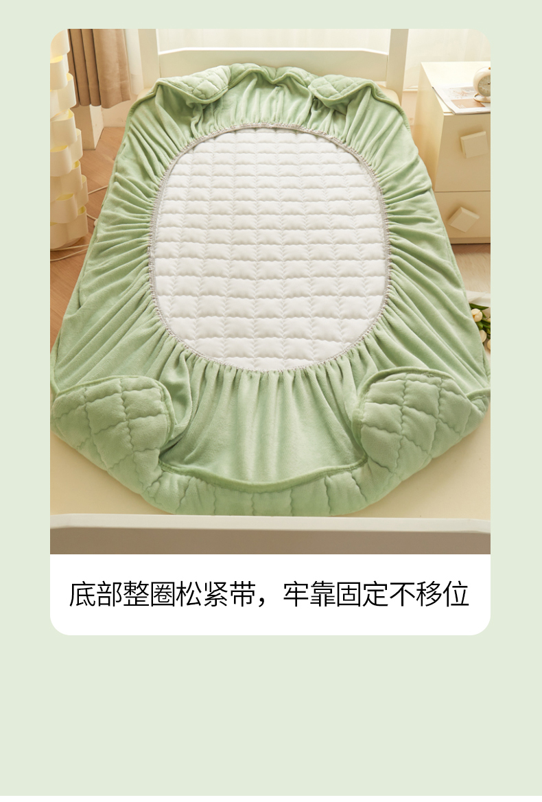 • 91家纺网 家纺一手货源 找家纺 爱思凯家纺 2025新款初心-牛奶绒学生床笠小号三件套 【初心】床笠-香草绿