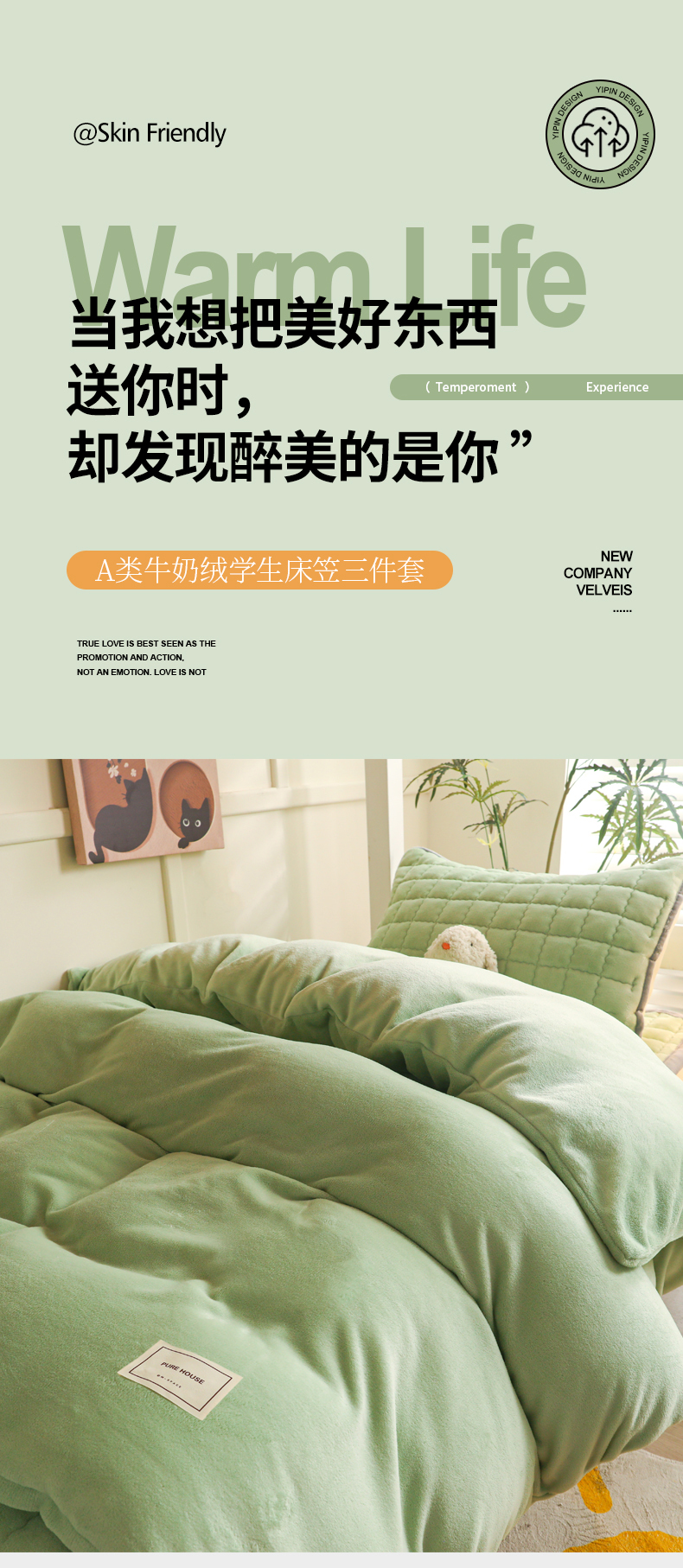 爱思凯家纺 2025新款初心-牛奶绒学生床笠小号三件套 【初心】床笠-香草绿