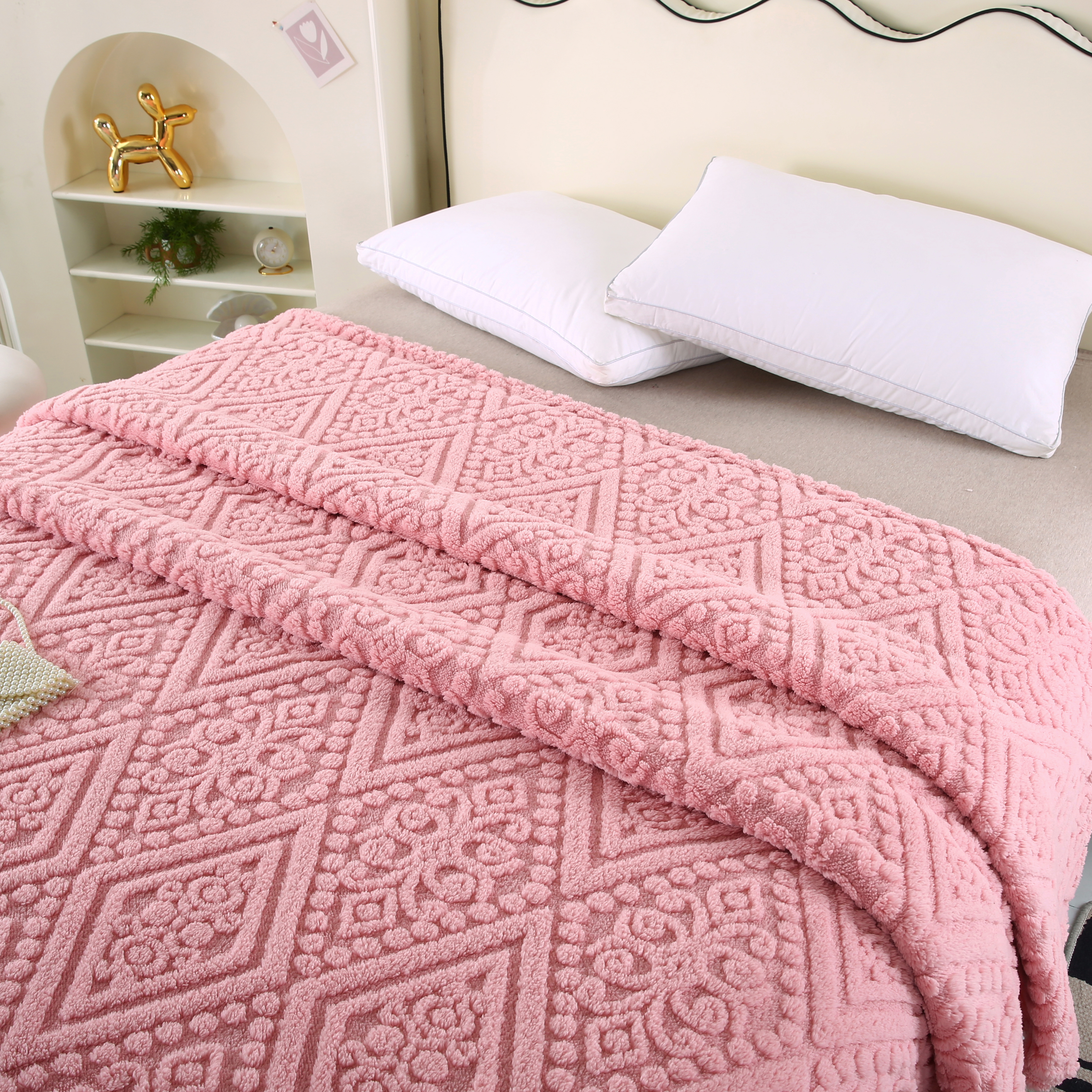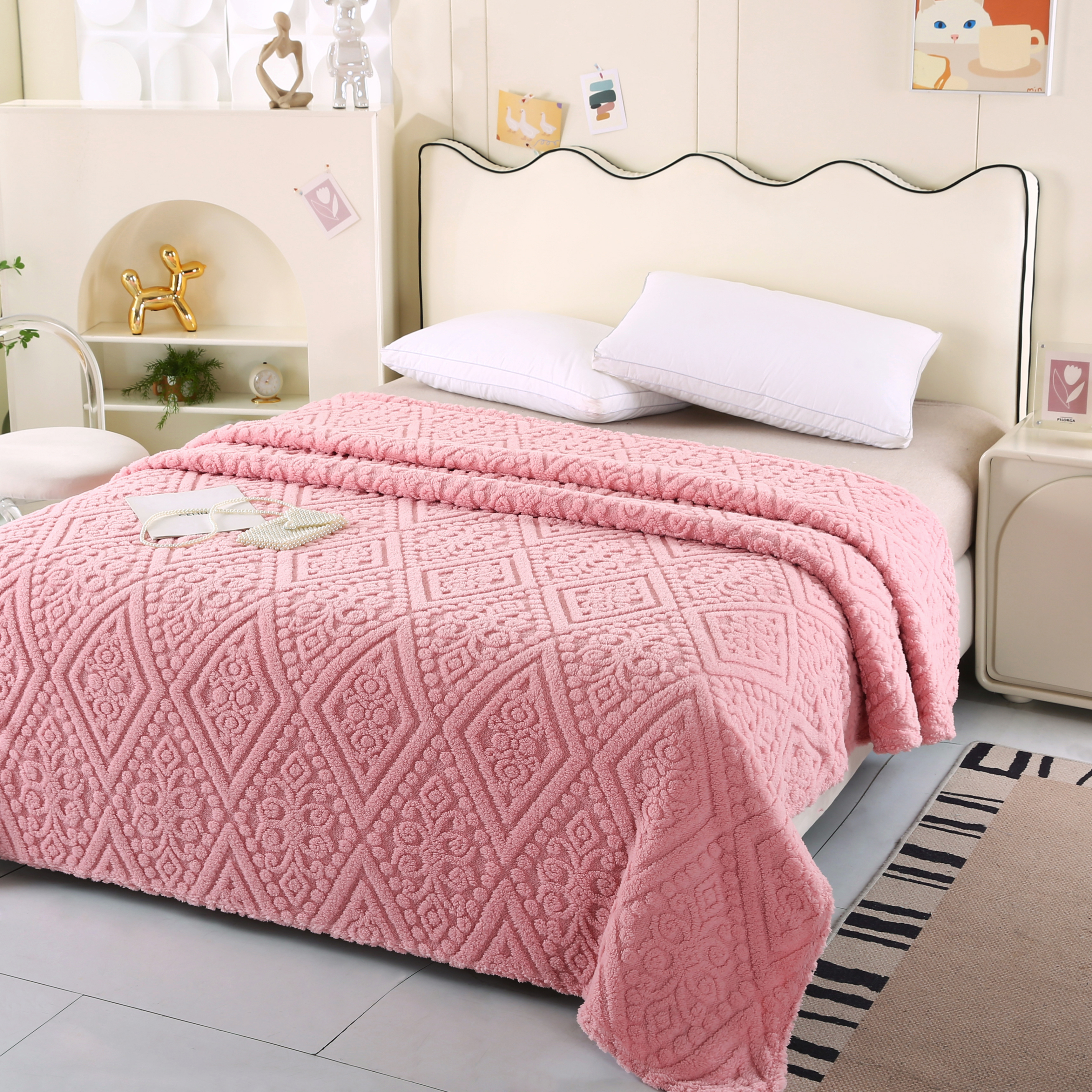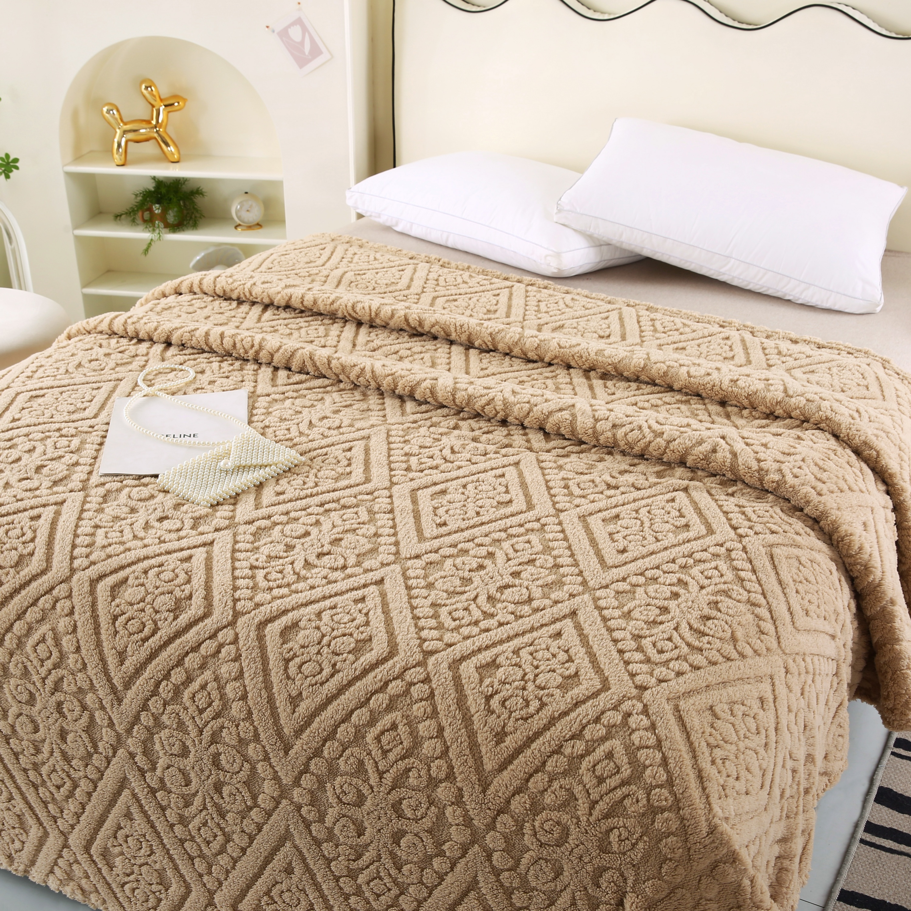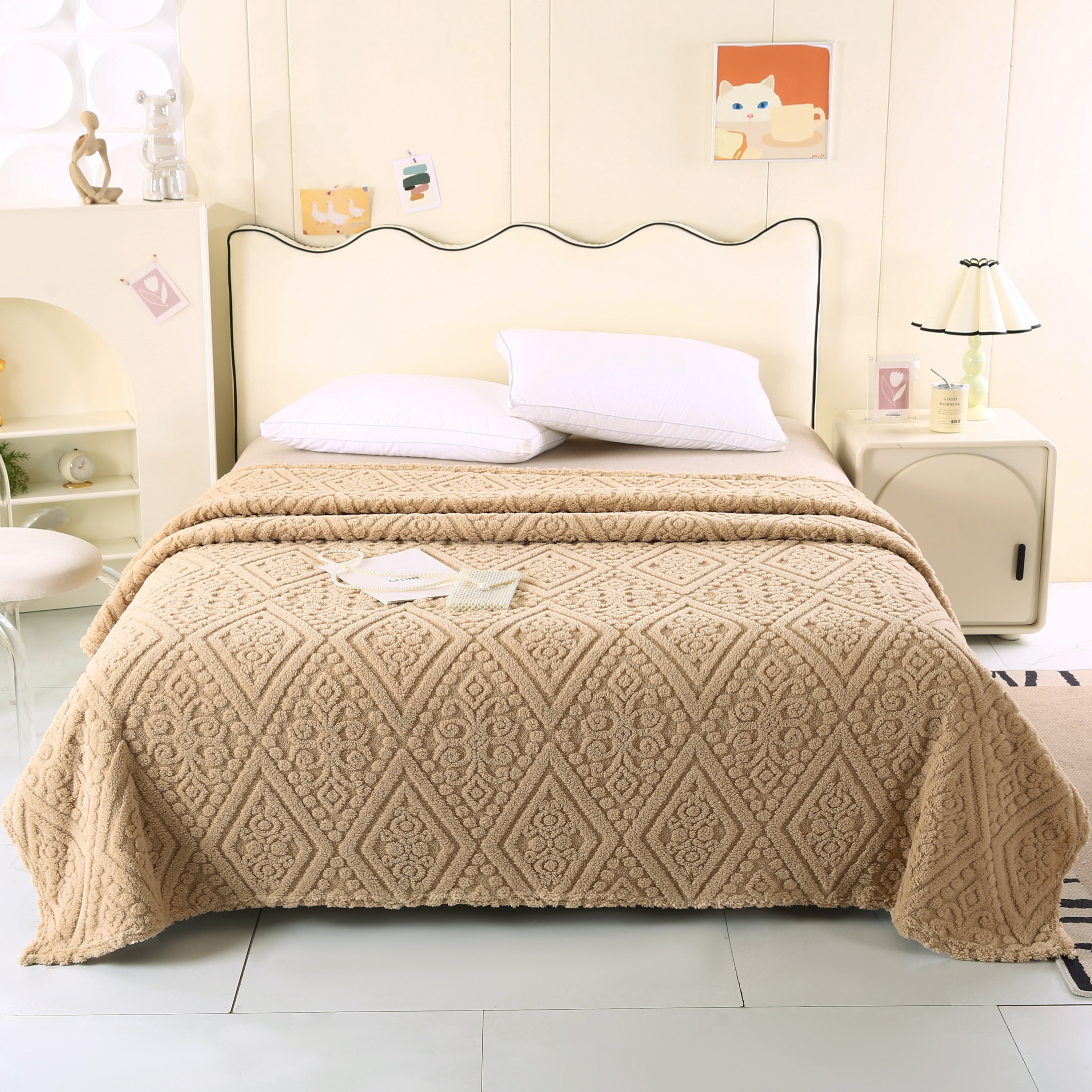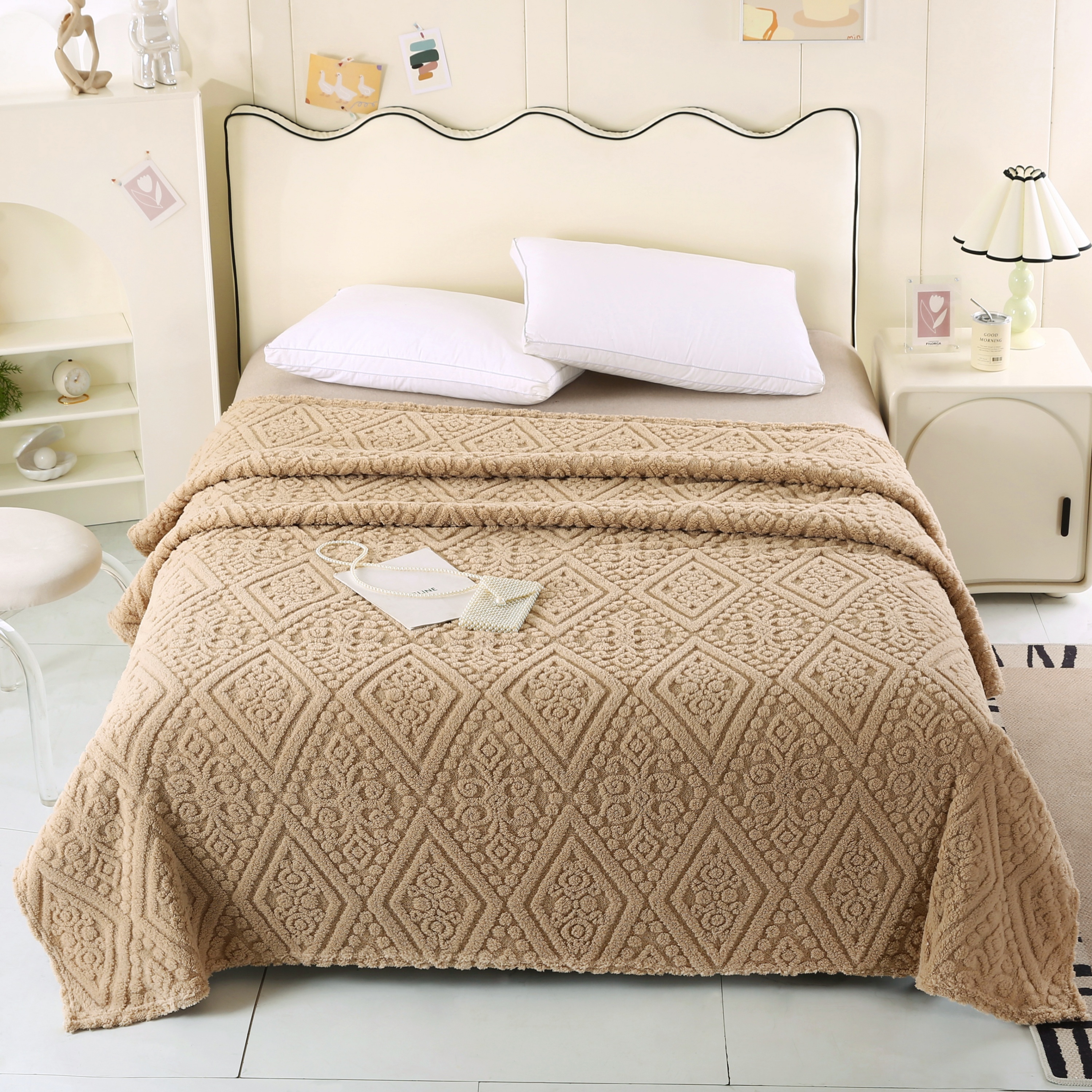 (总)巴木赫 2024新款提花朵朵绒双层羊羔绒毯,茶绿,粉色,咖啡,孔雀蓝,浅灰,浅驼