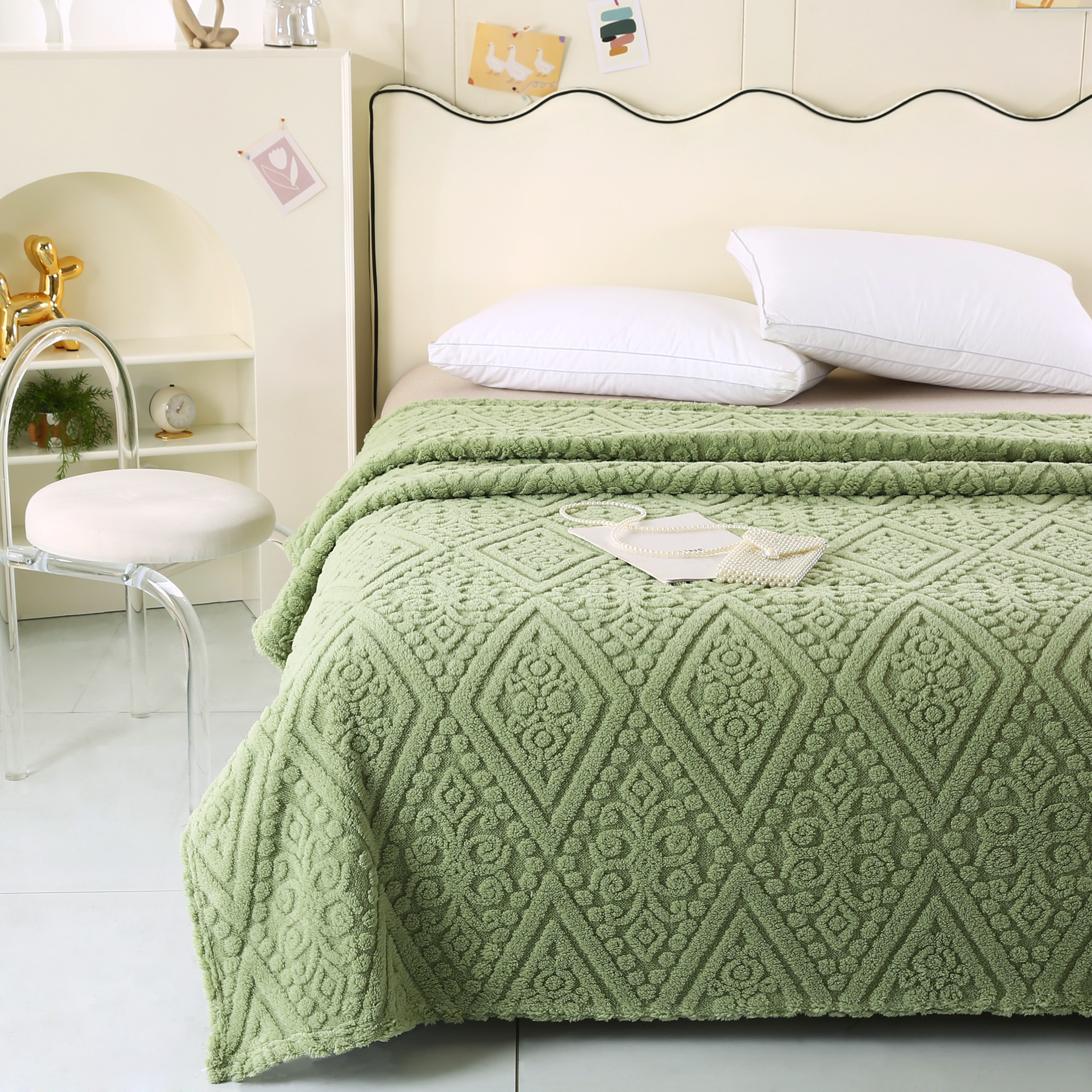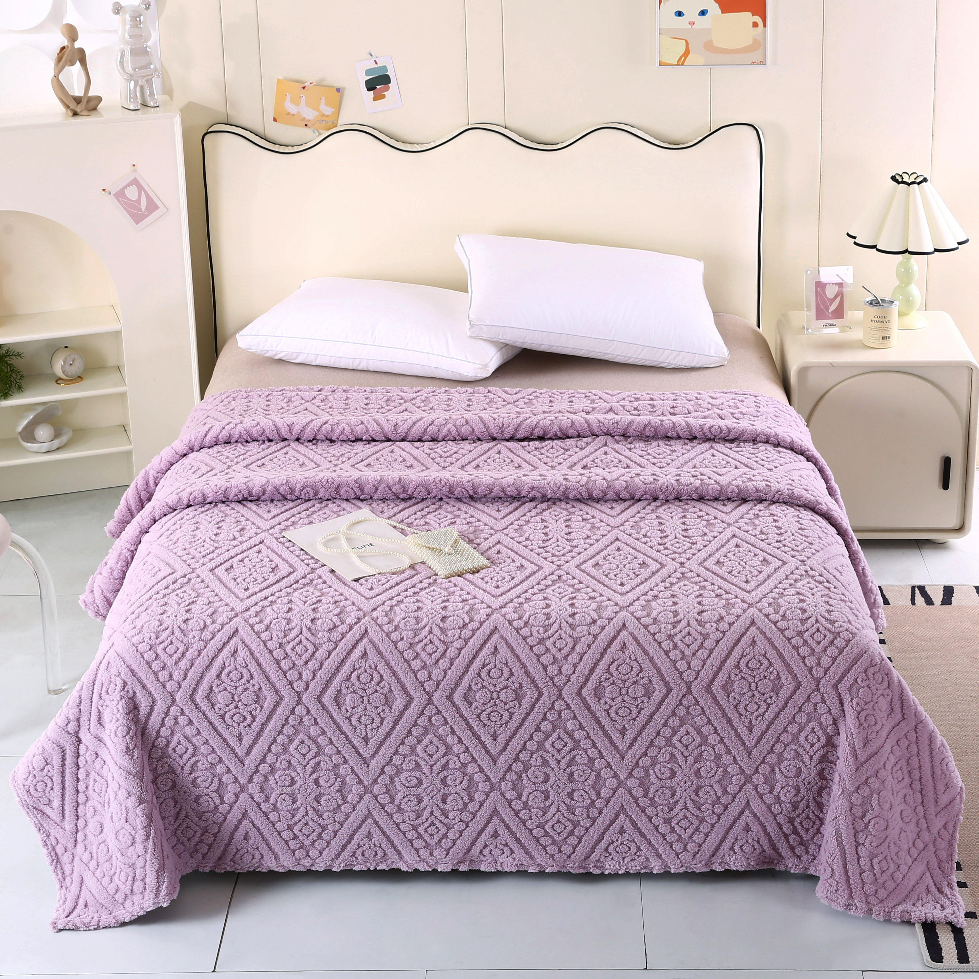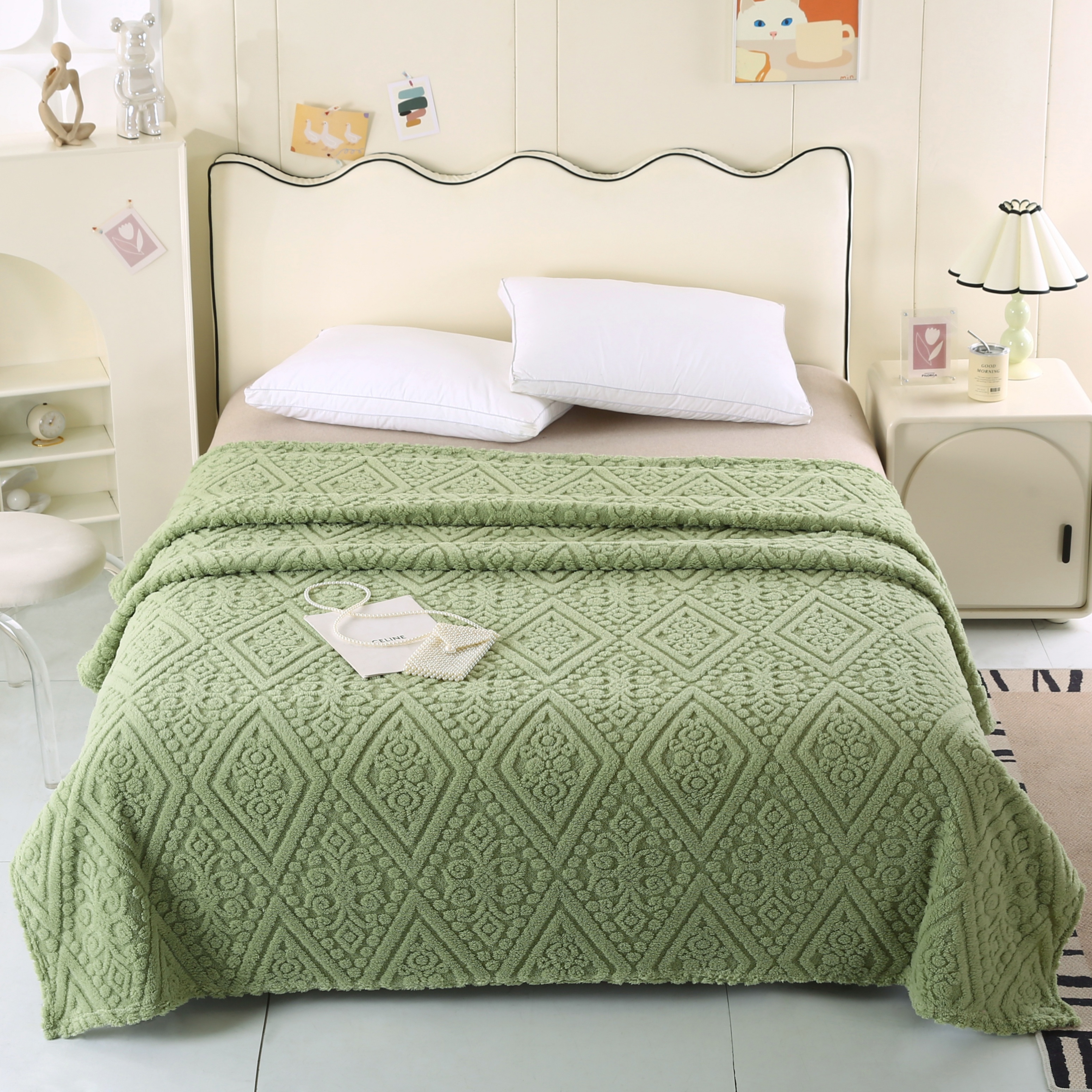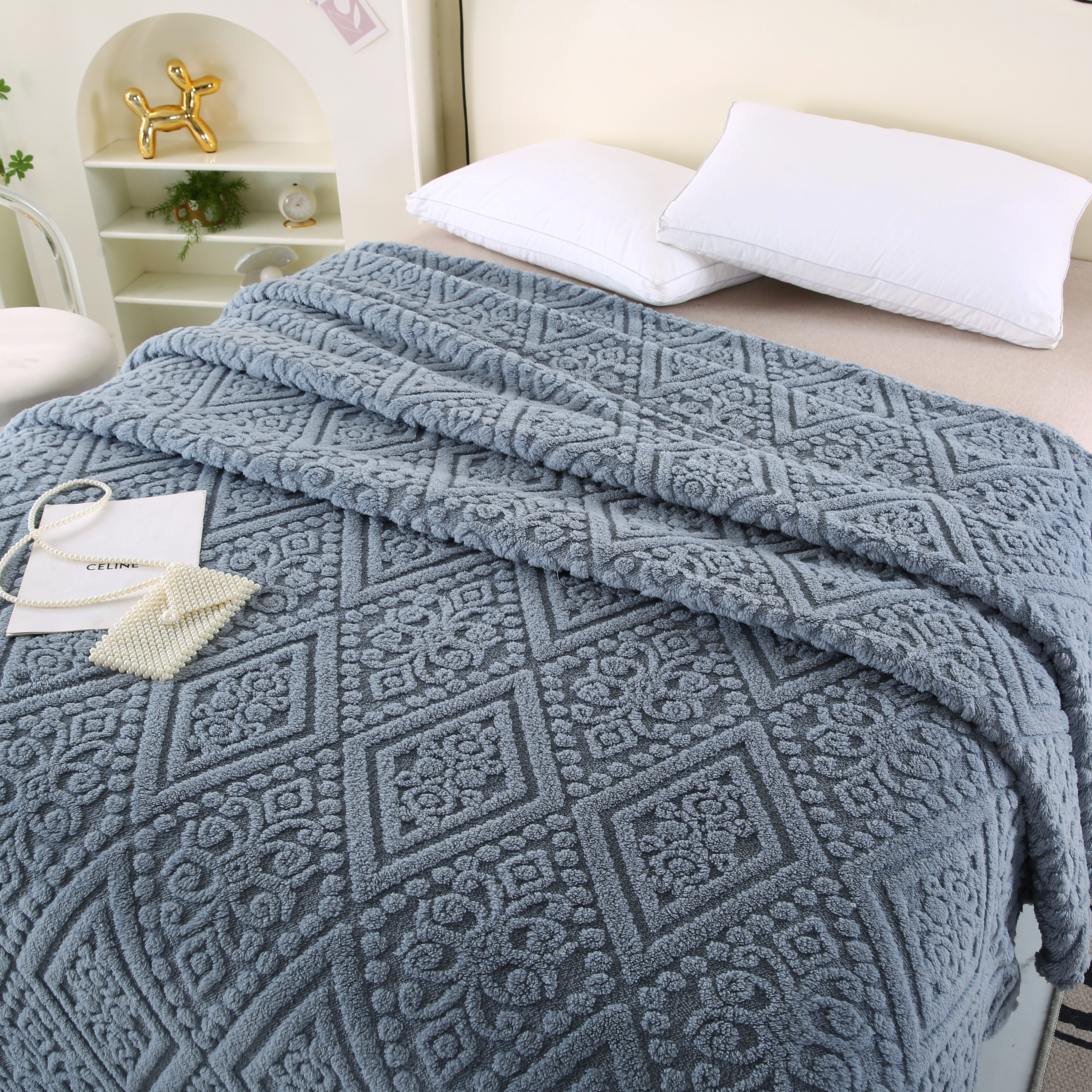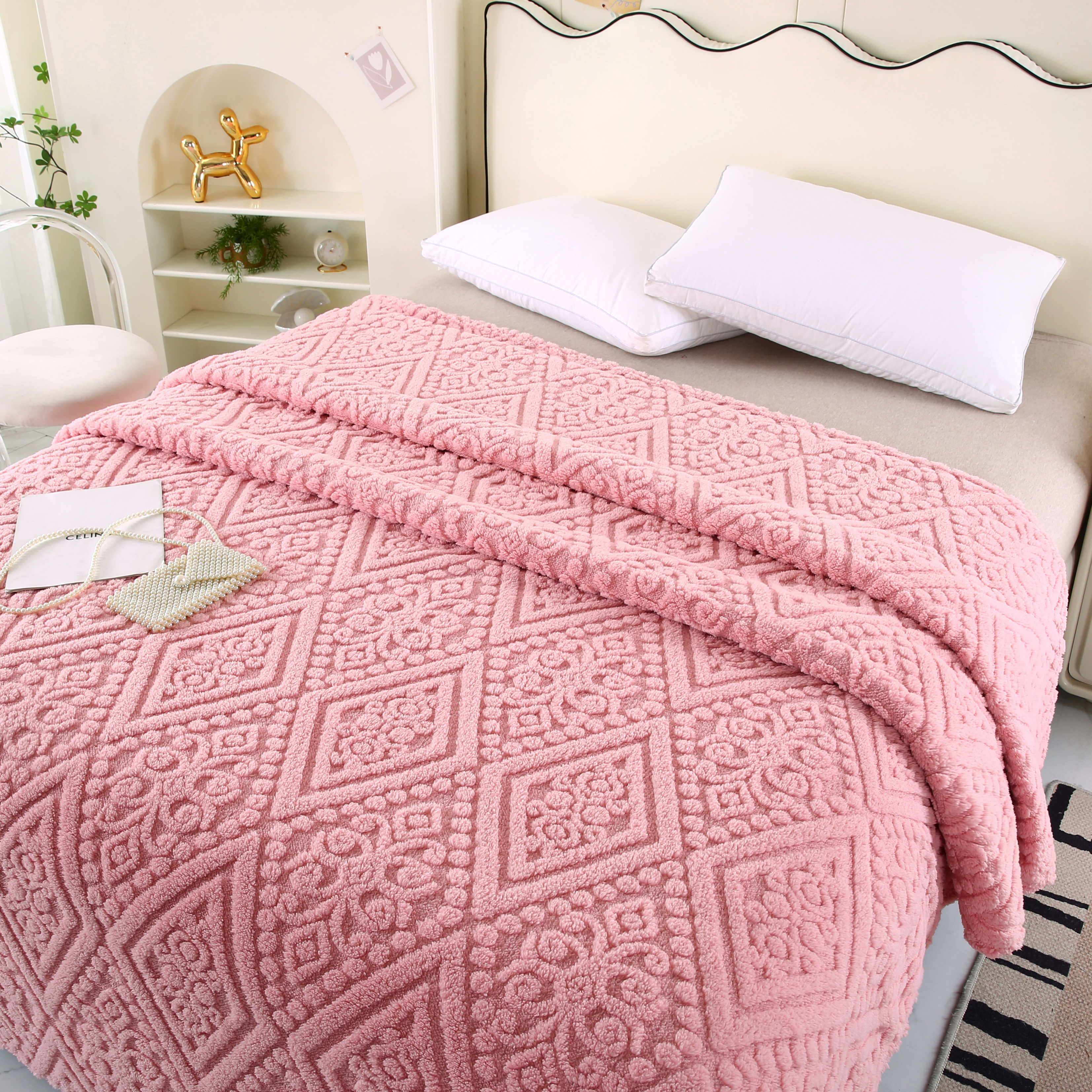 (总)巴木赫 2024新款提花朵朵绒双层羊羔绒毯,茶绿,粉色,咖啡,孔雀蓝,浅灰,浅驼