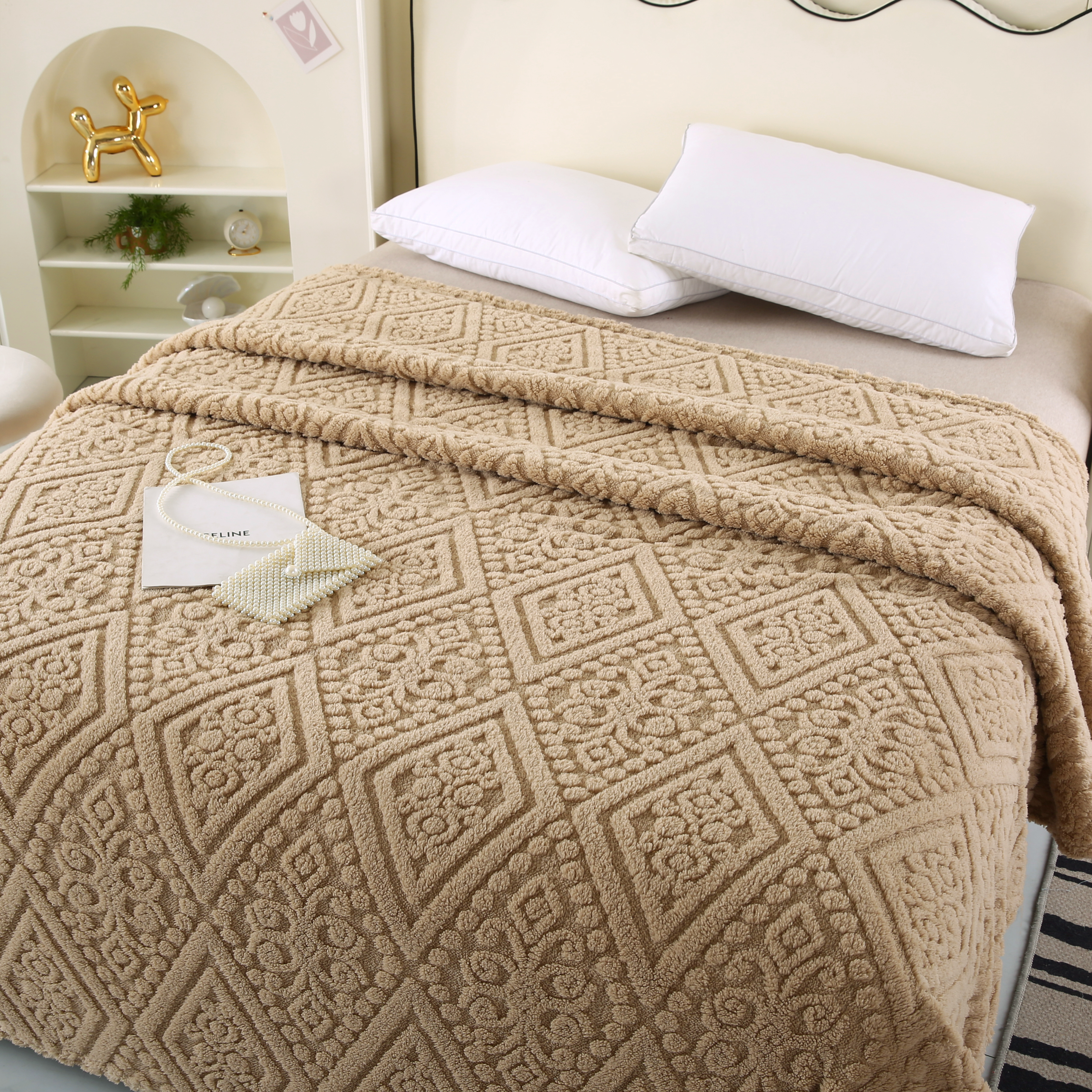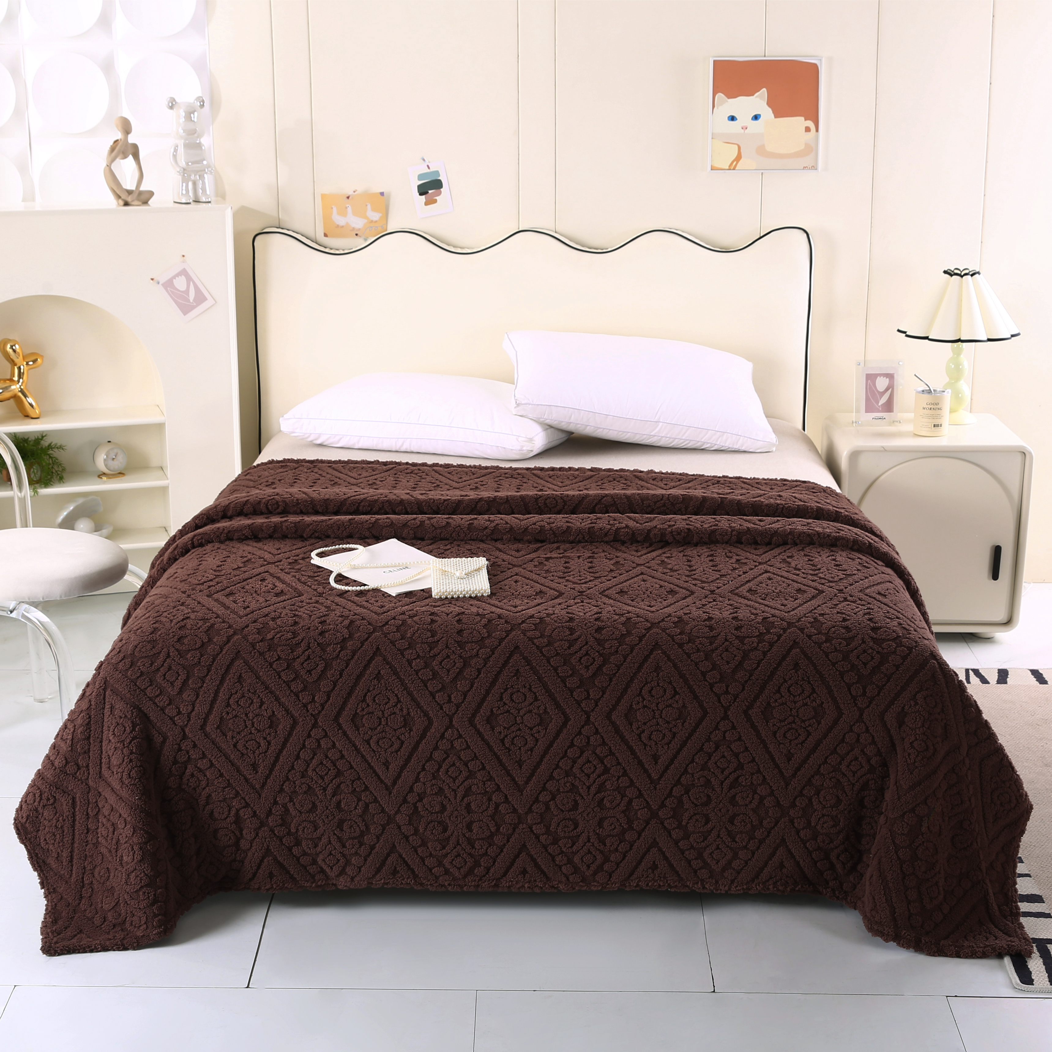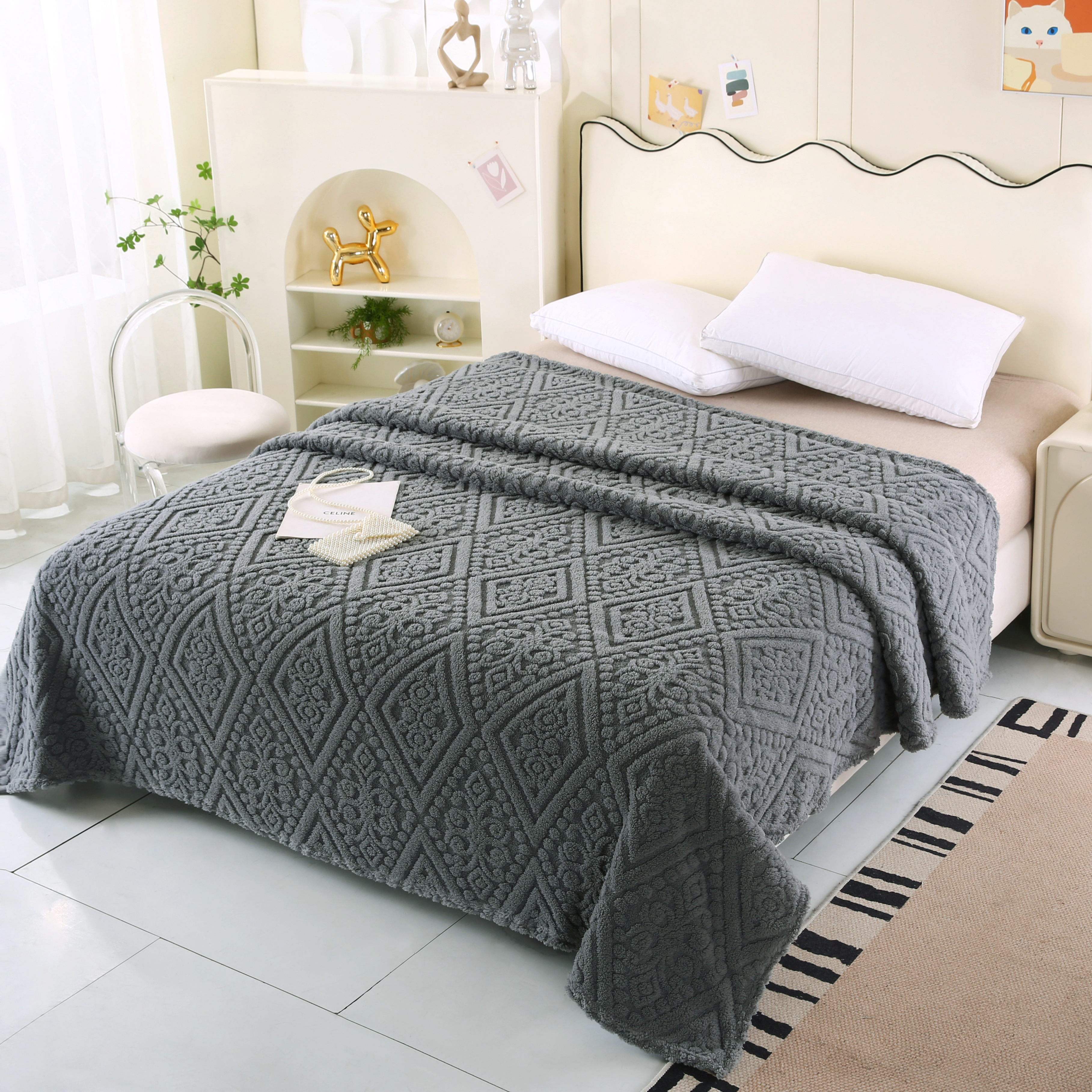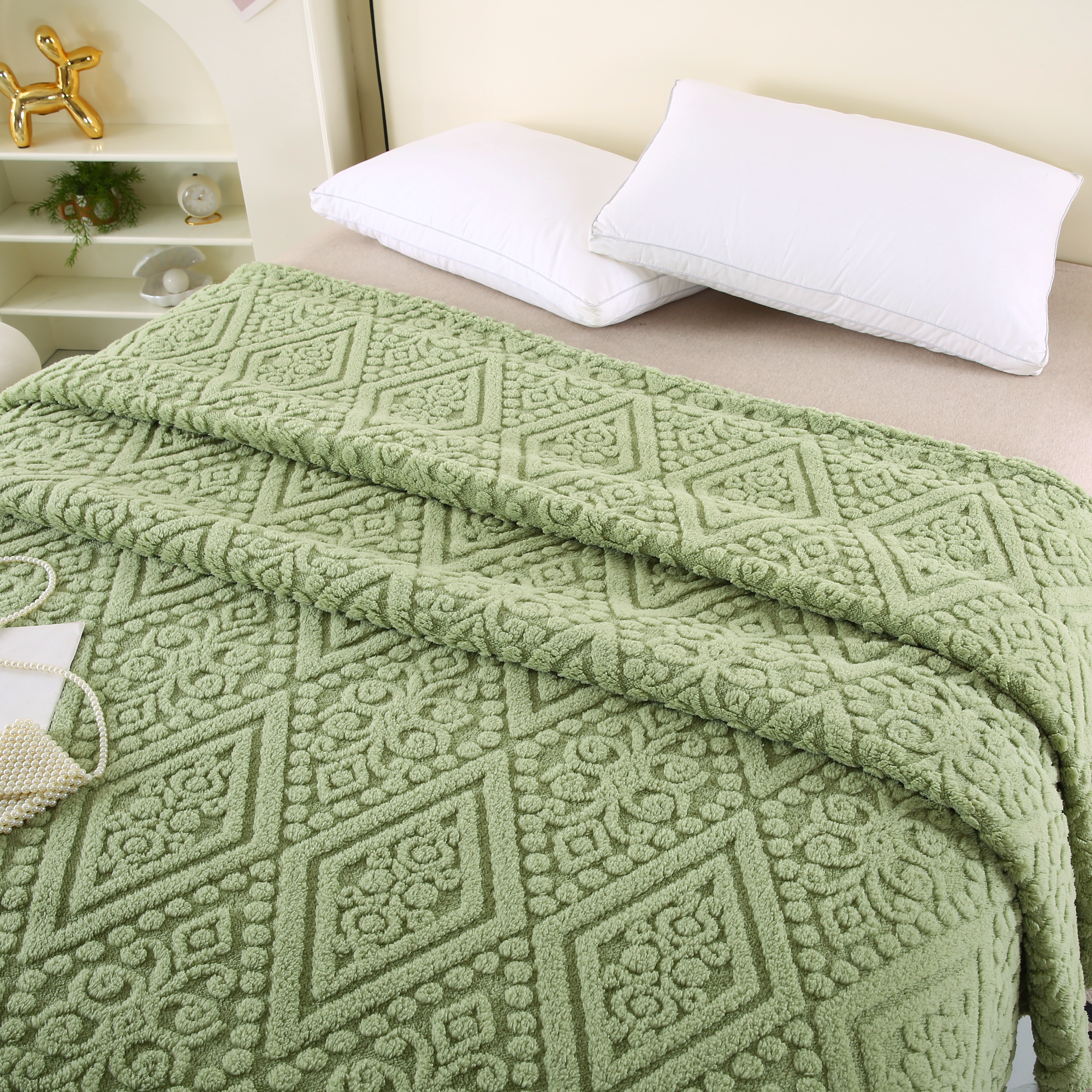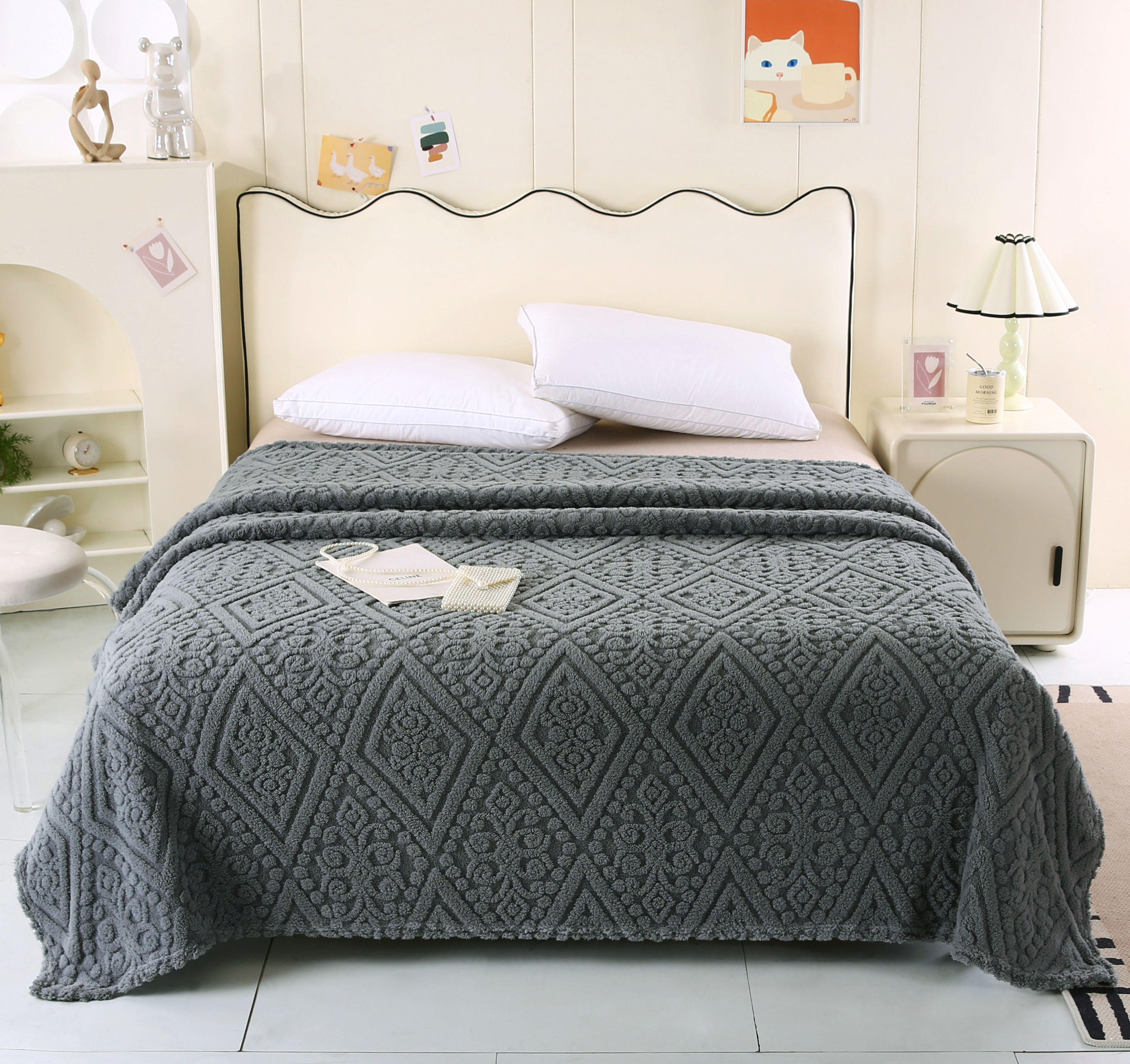 (总)巴木赫 2024新款提花朵朵绒双层羊羔绒毯,茶绿,粉色,咖啡,孔雀蓝,浅灰,浅驼