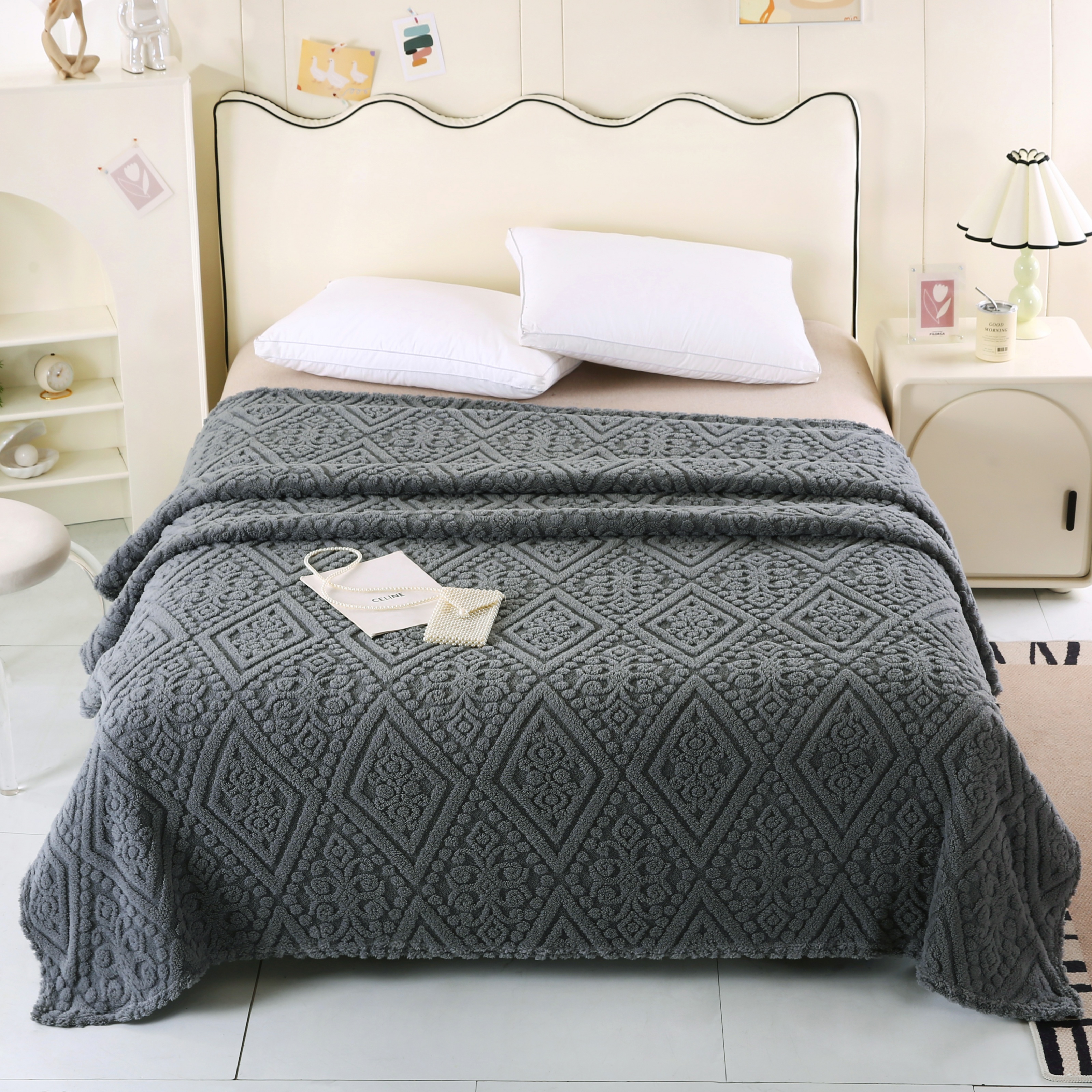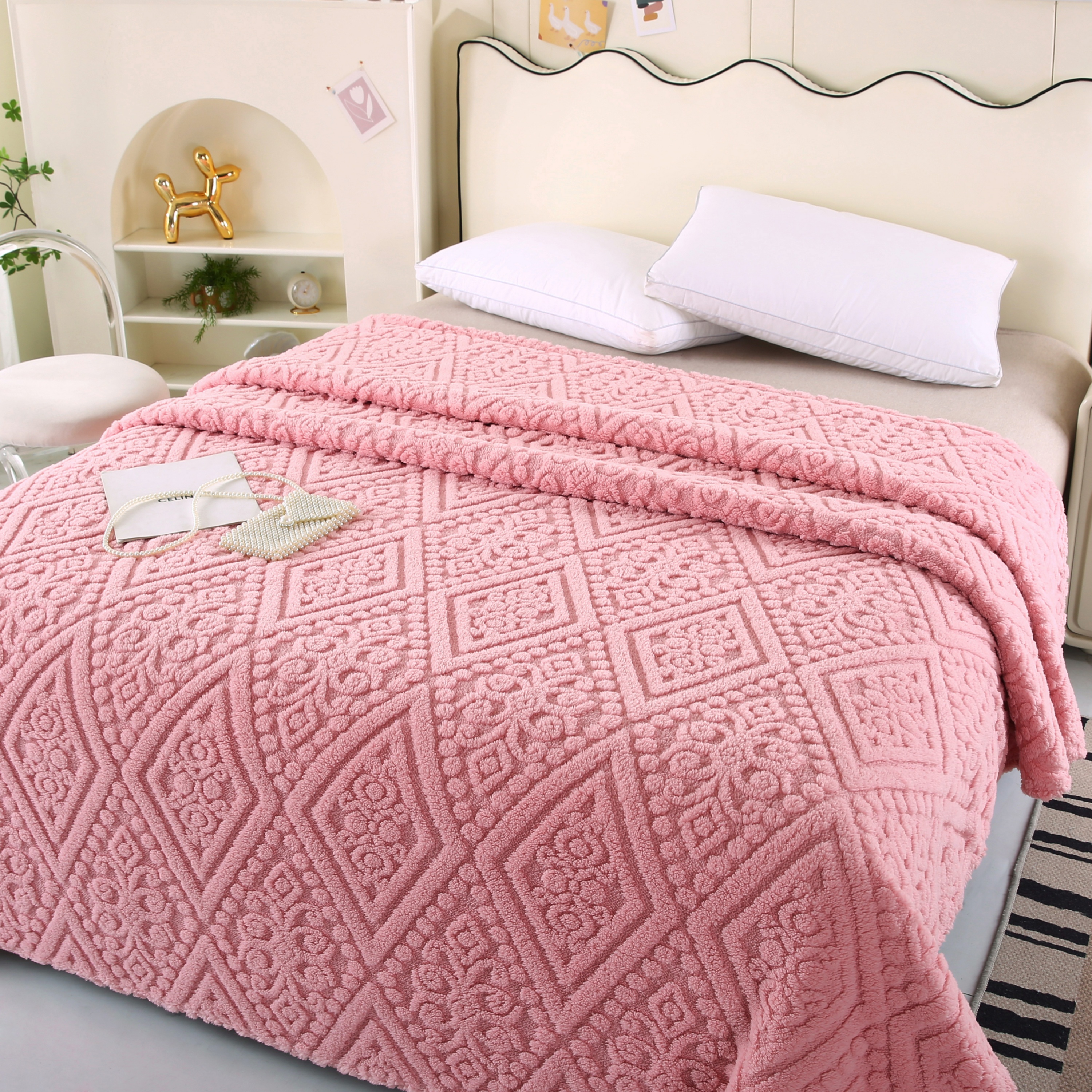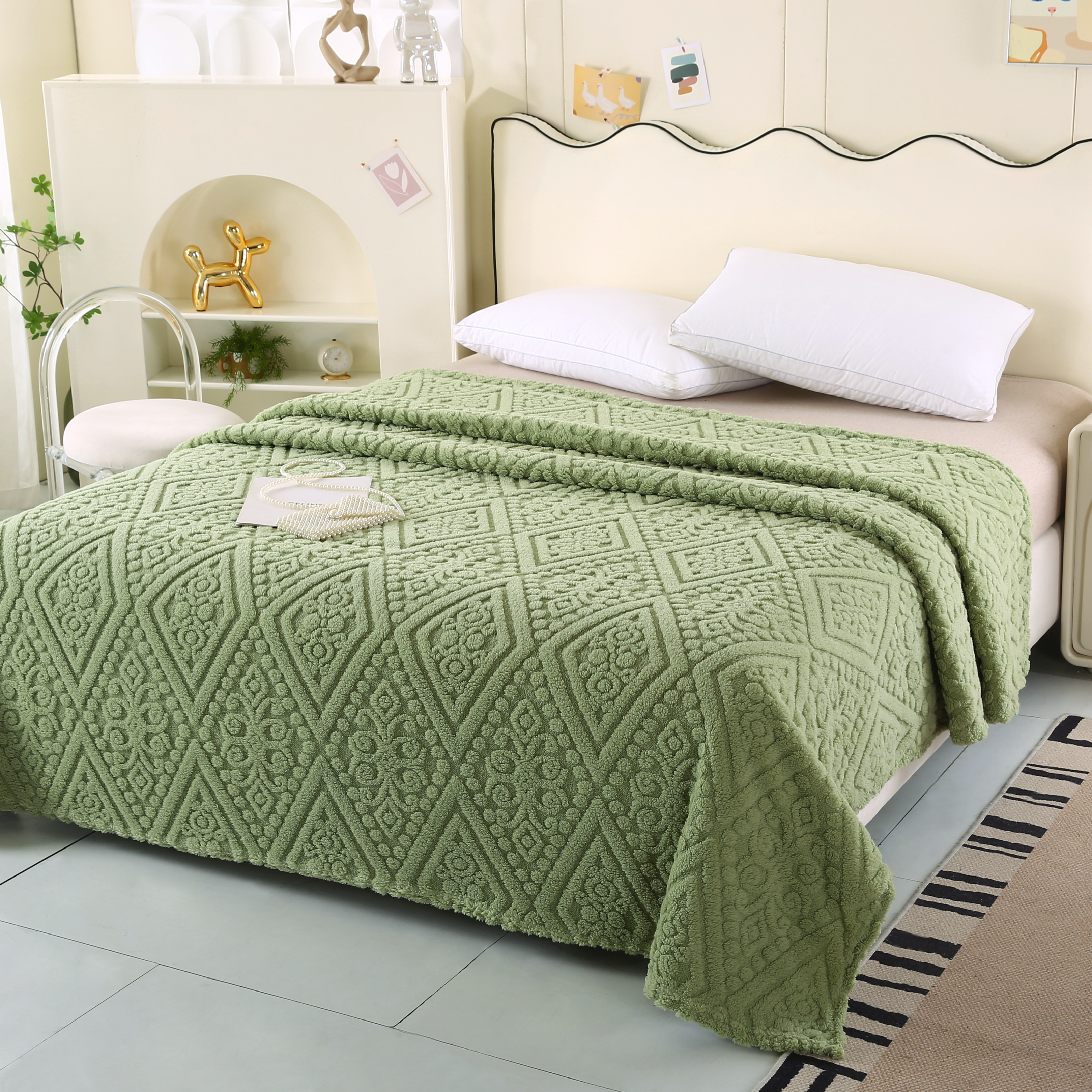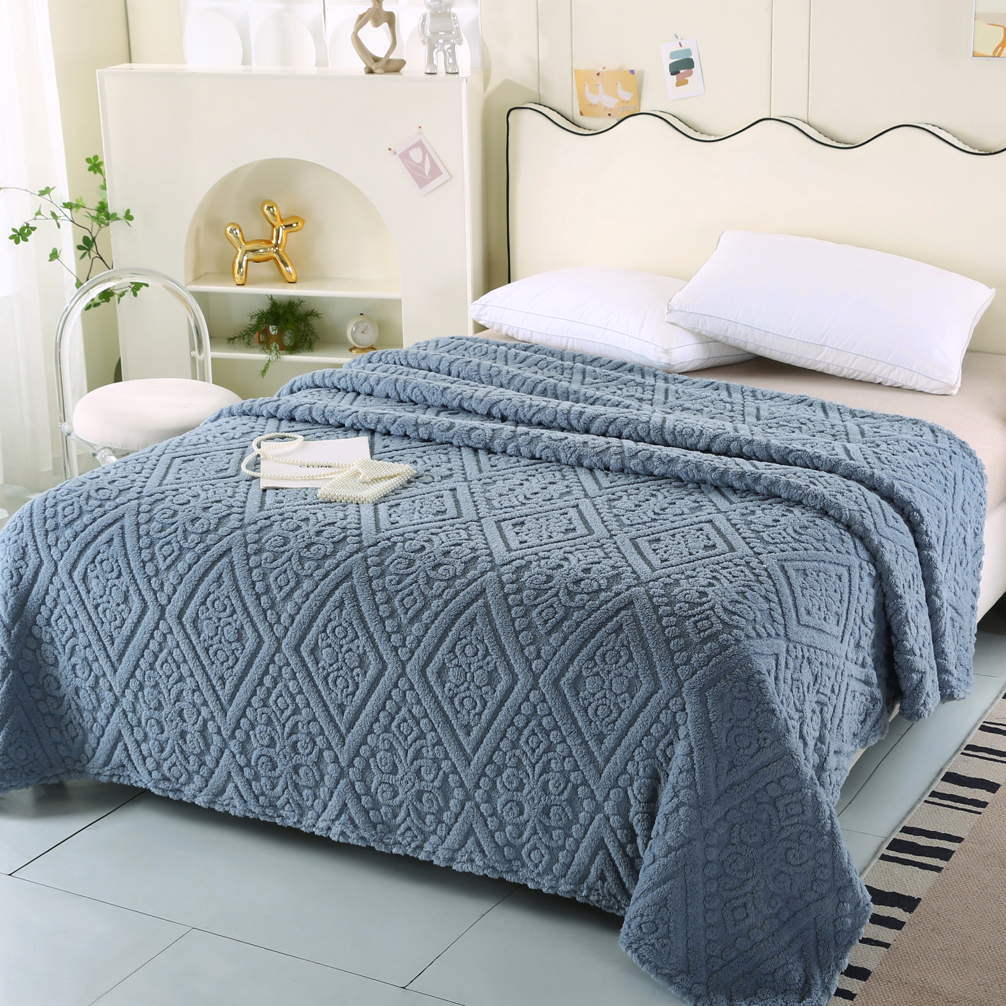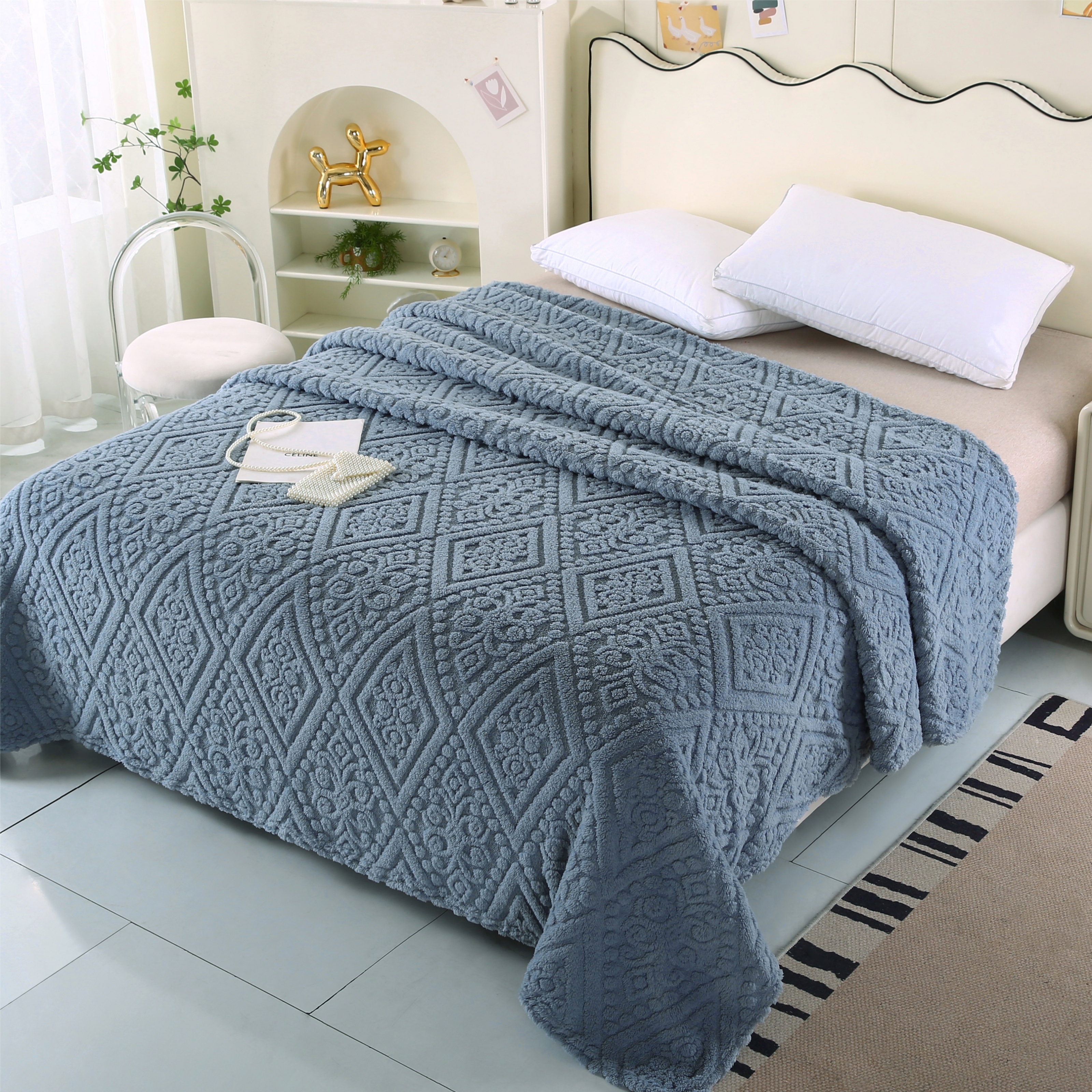 (总)巴木赫 2024新款提花朵朵绒双层羊羔绒毯,茶绿,粉色,咖啡,孔雀蓝,浅灰,浅驼