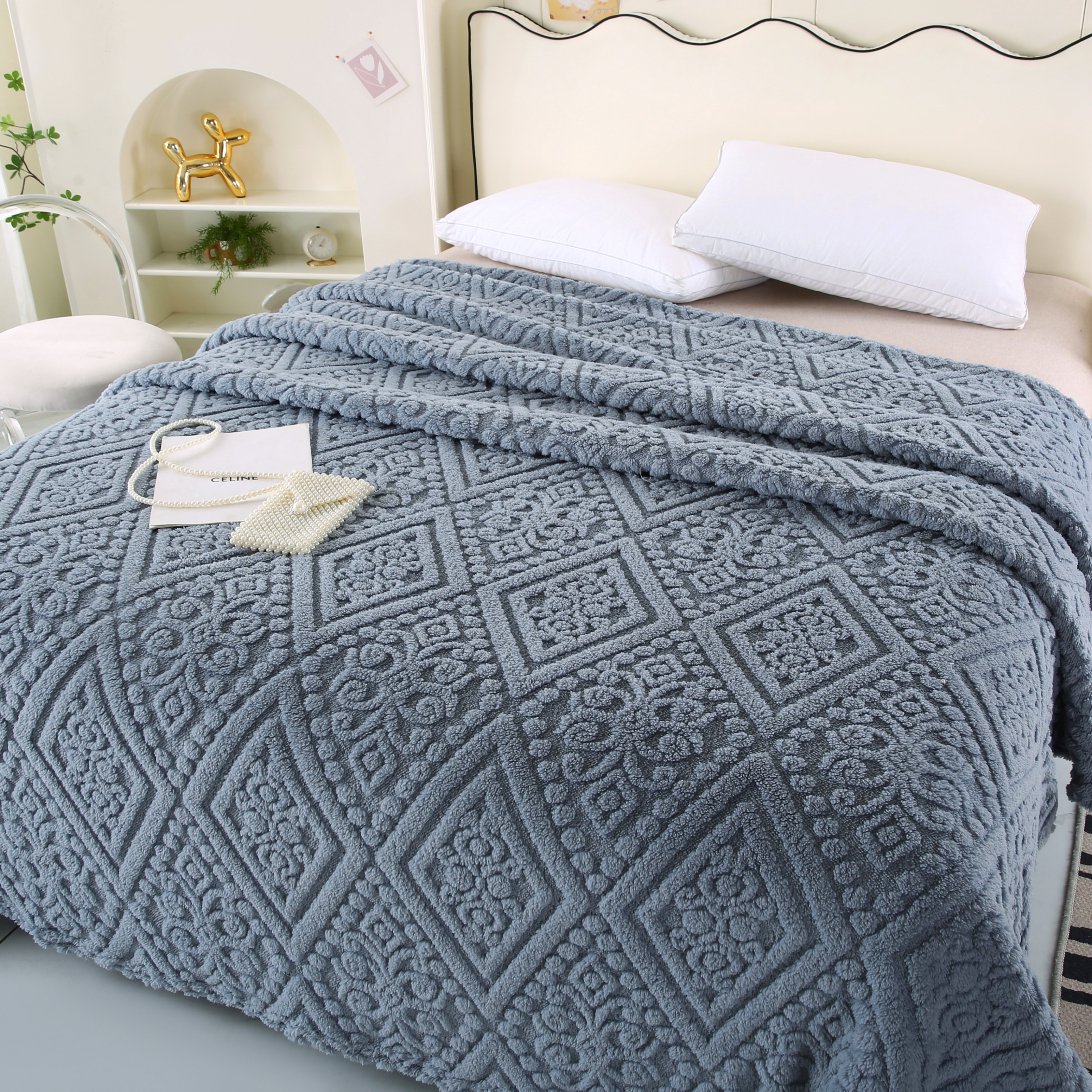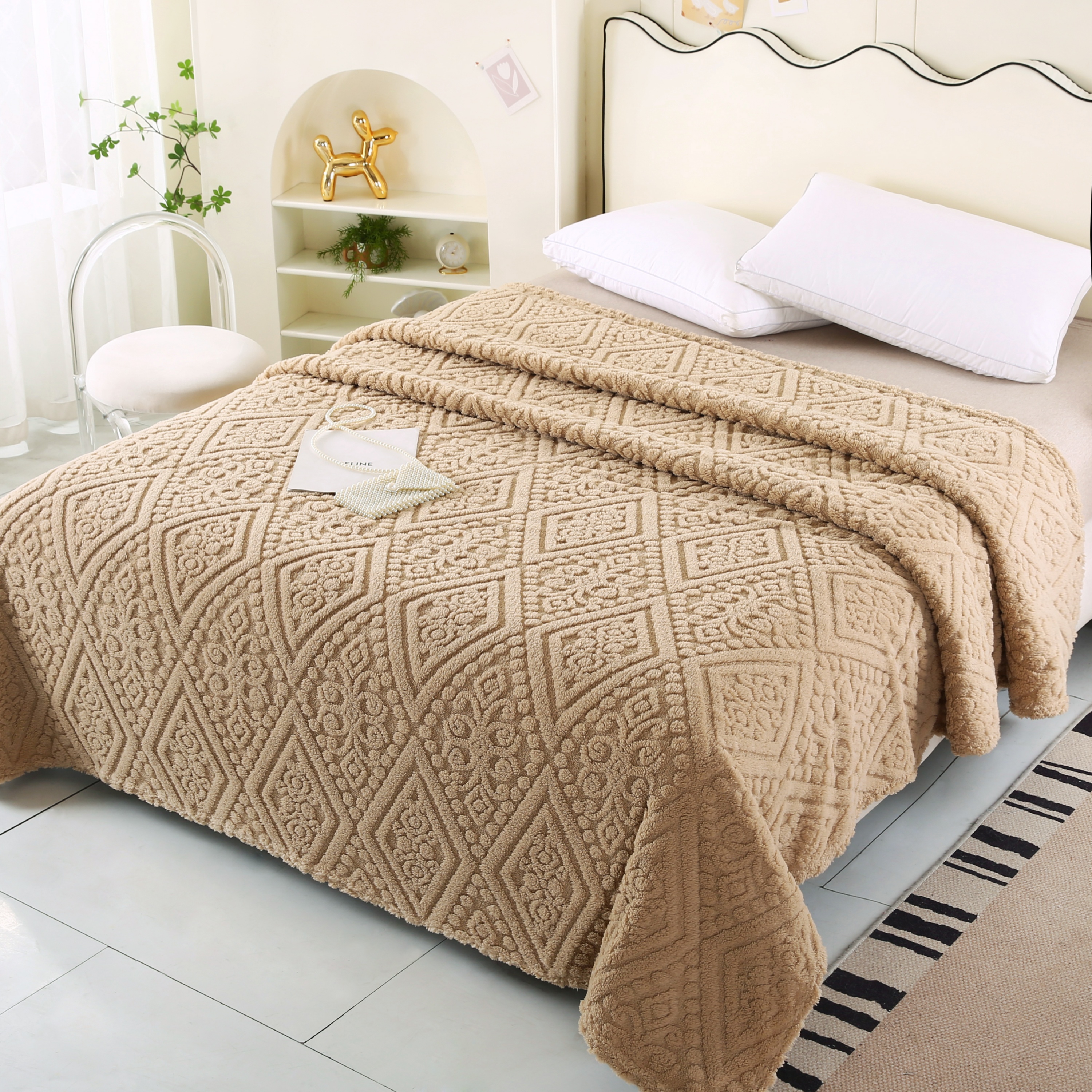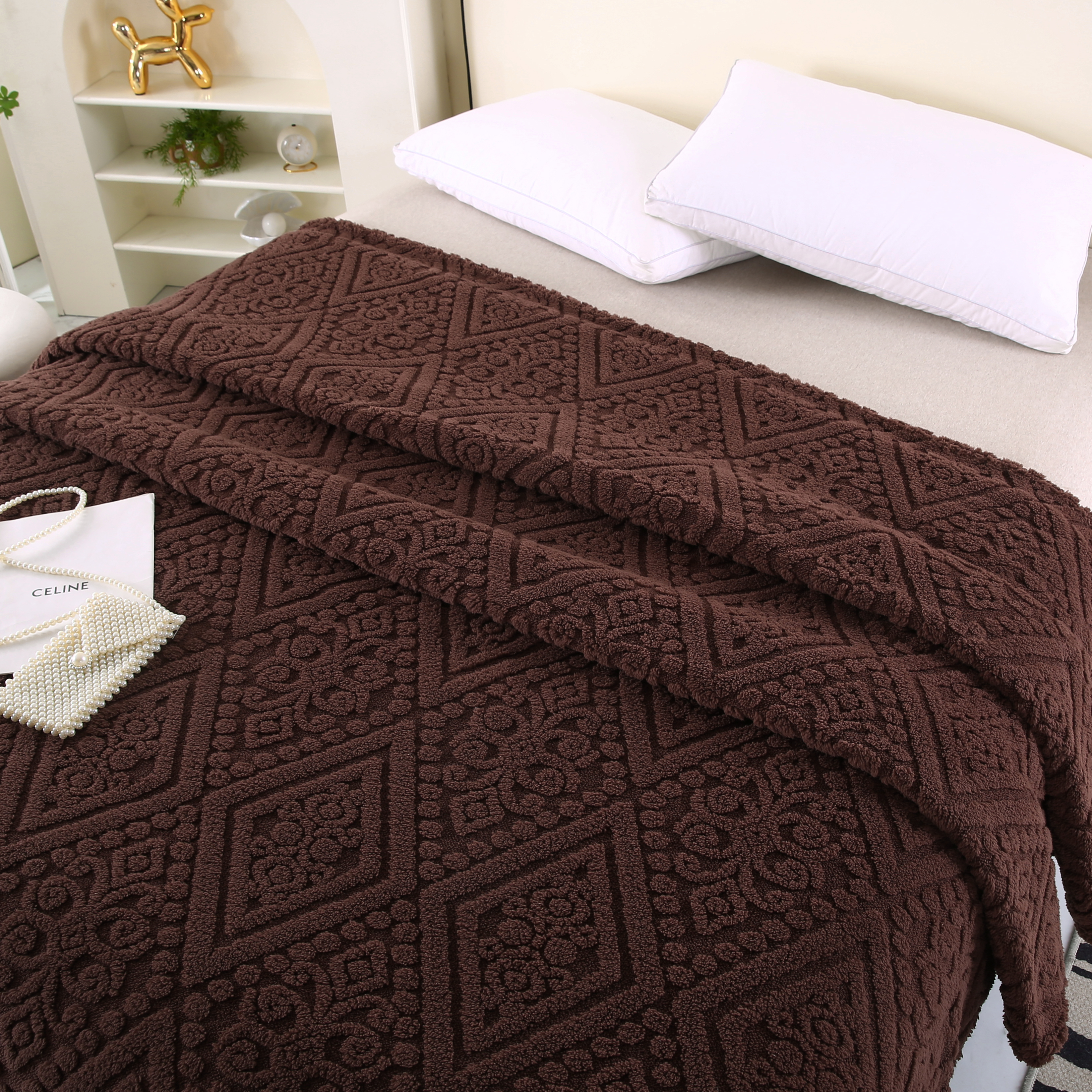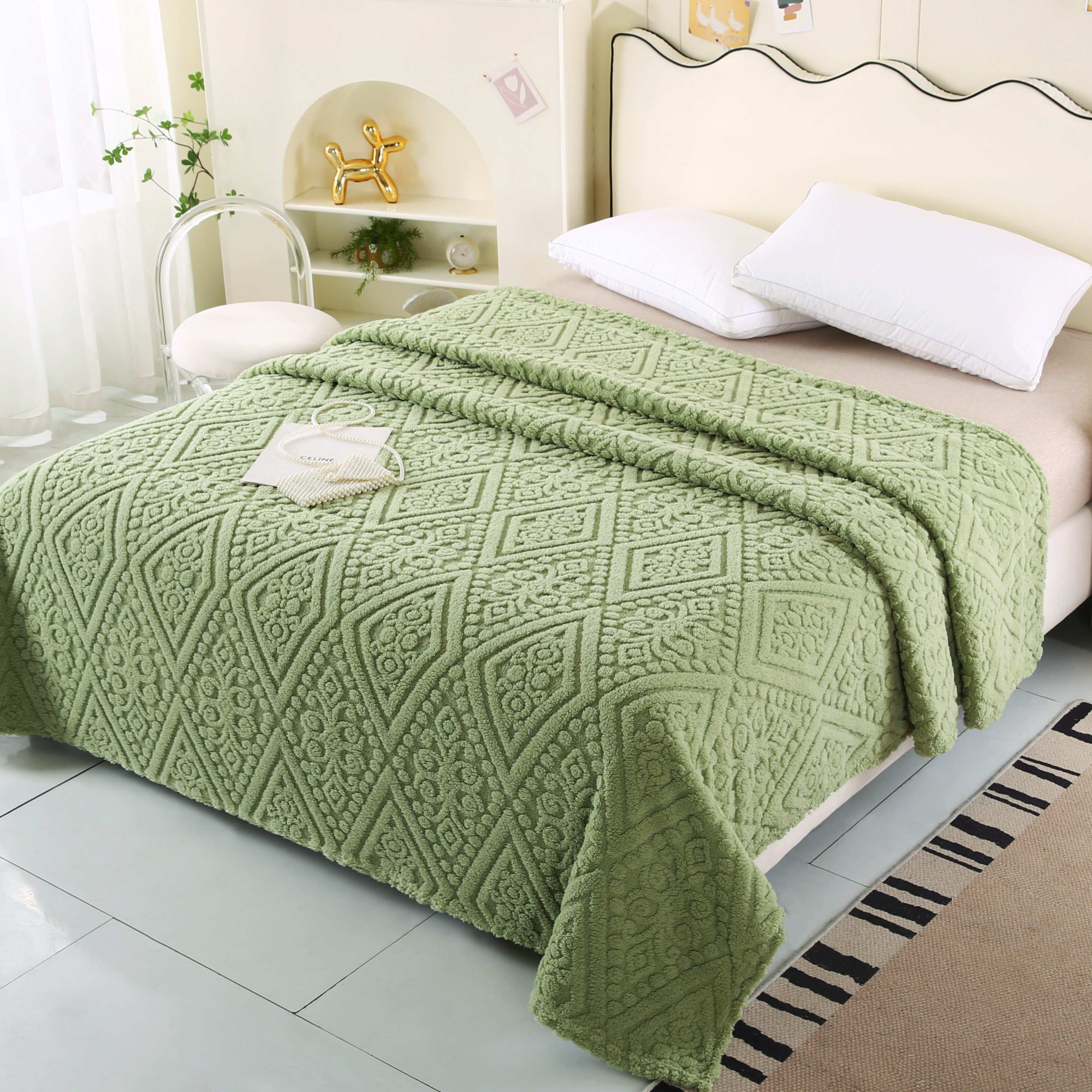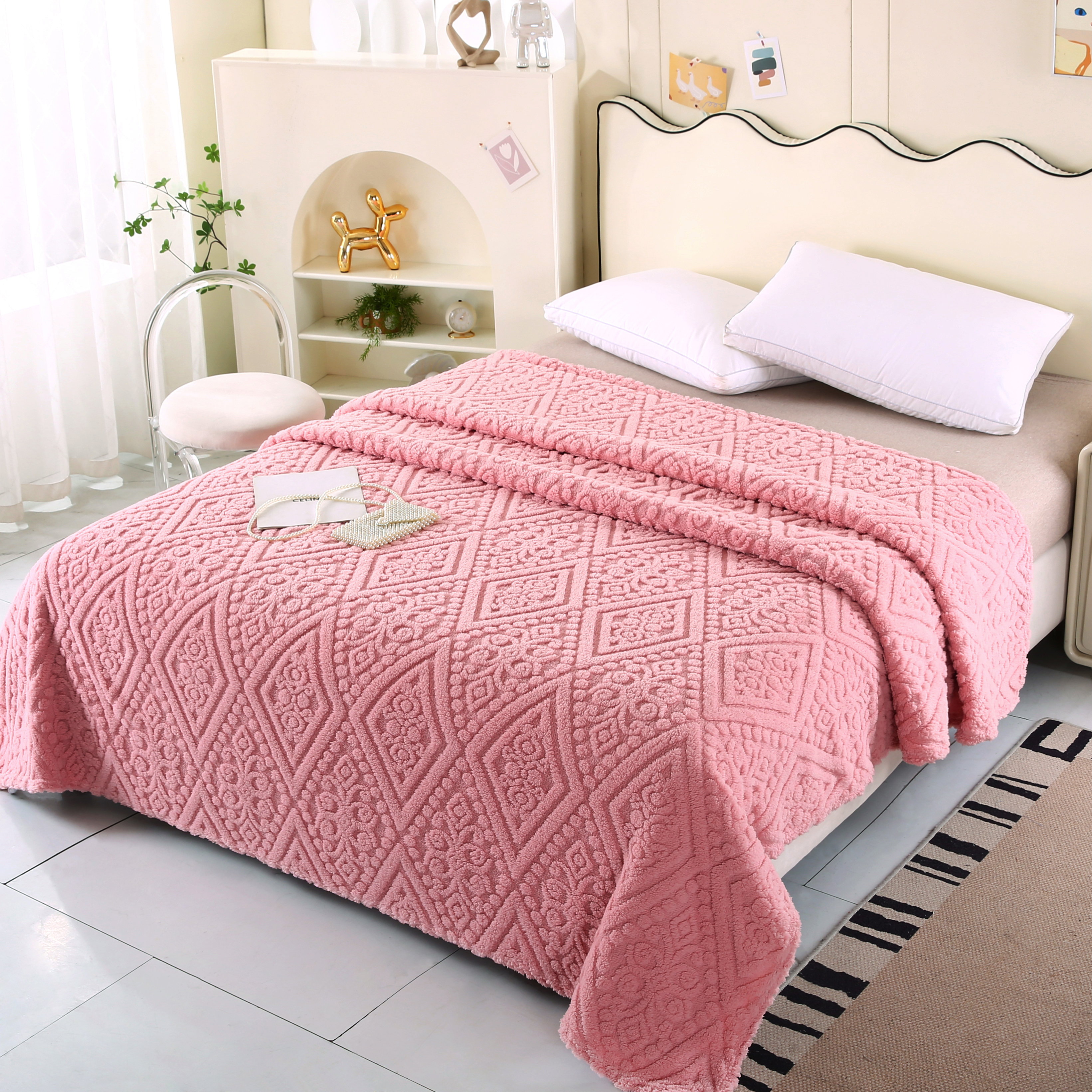 (总)巴木赫 2024新款提花朵朵绒双层羊羔绒毯,茶绿,粉色,咖啡,孔雀蓝,浅灰,浅驼