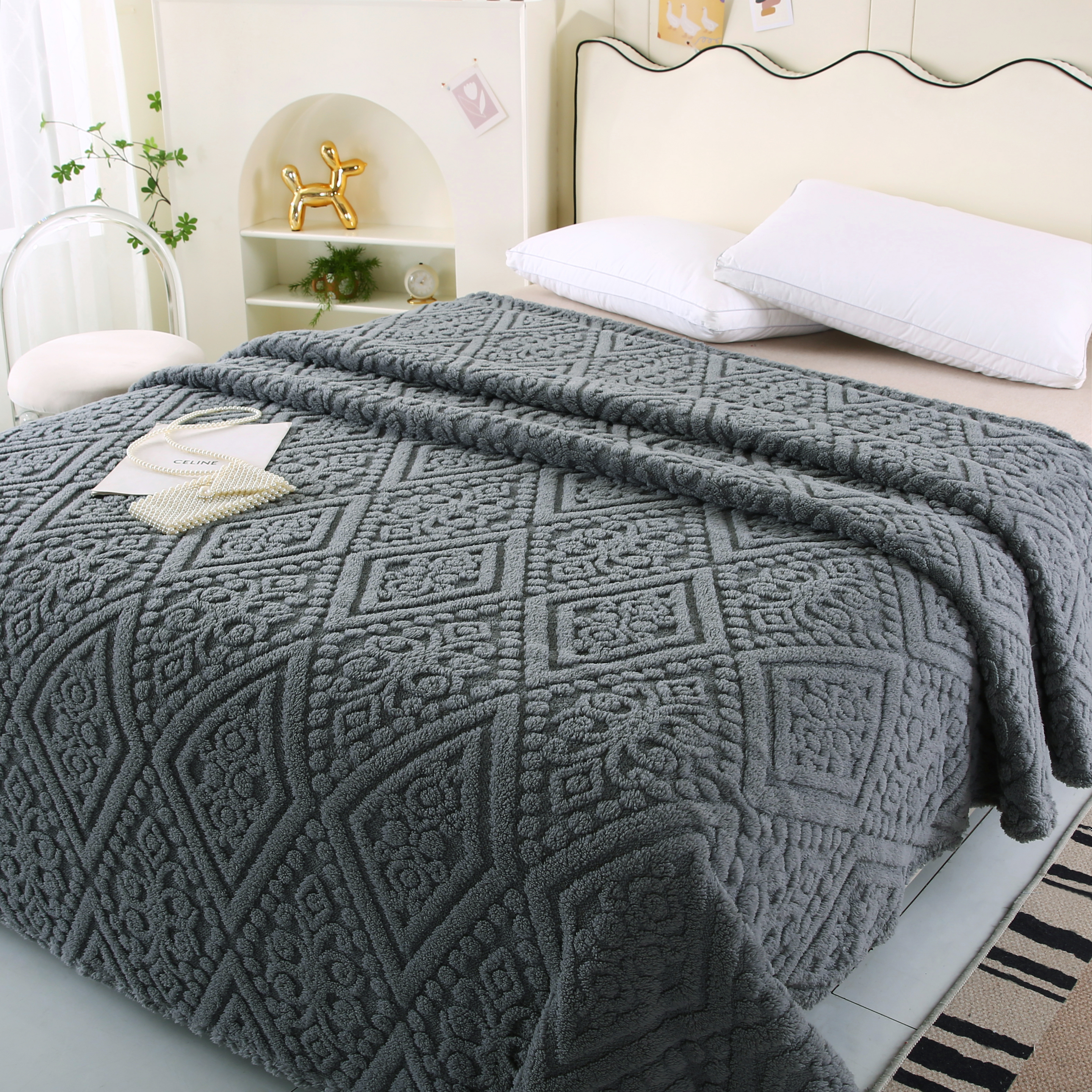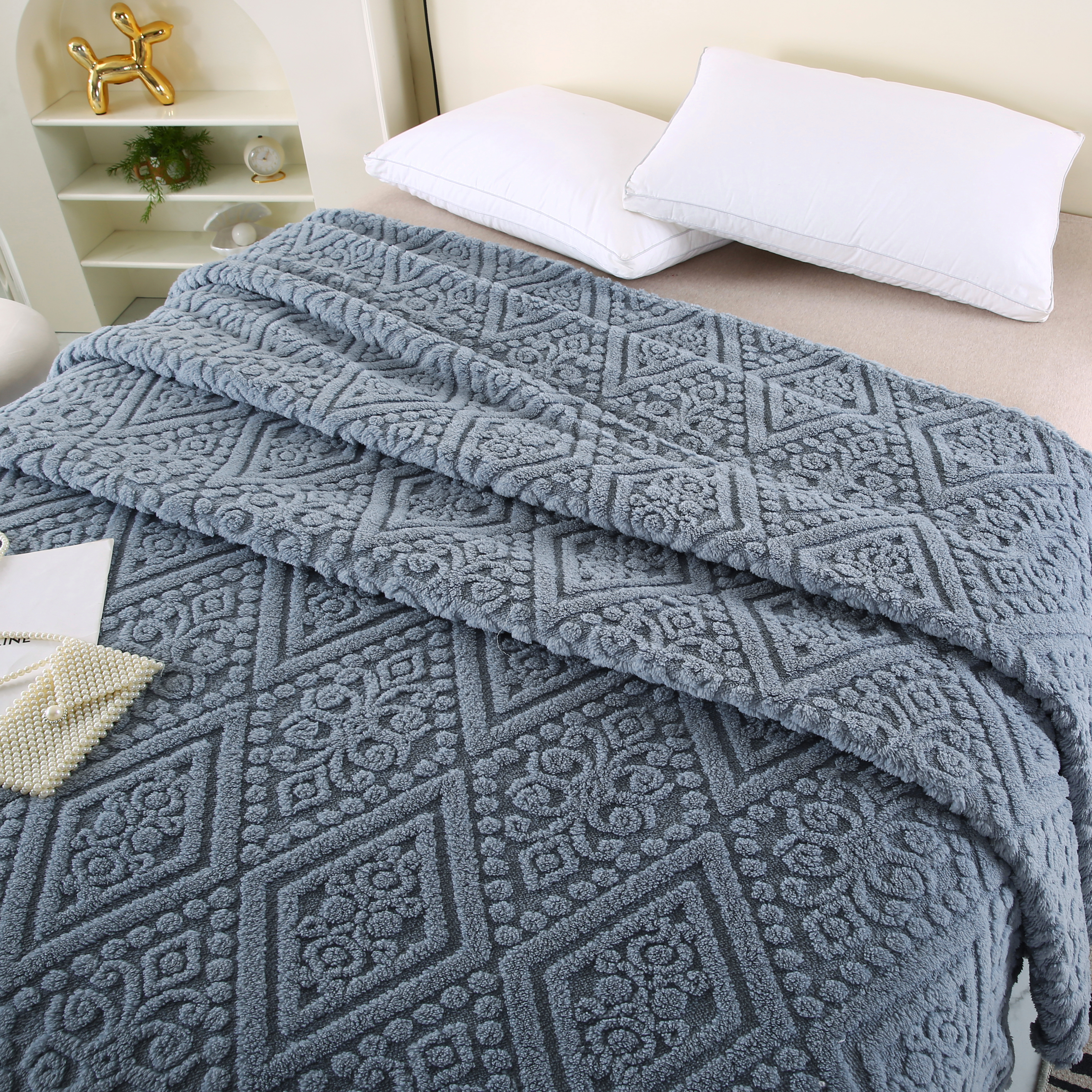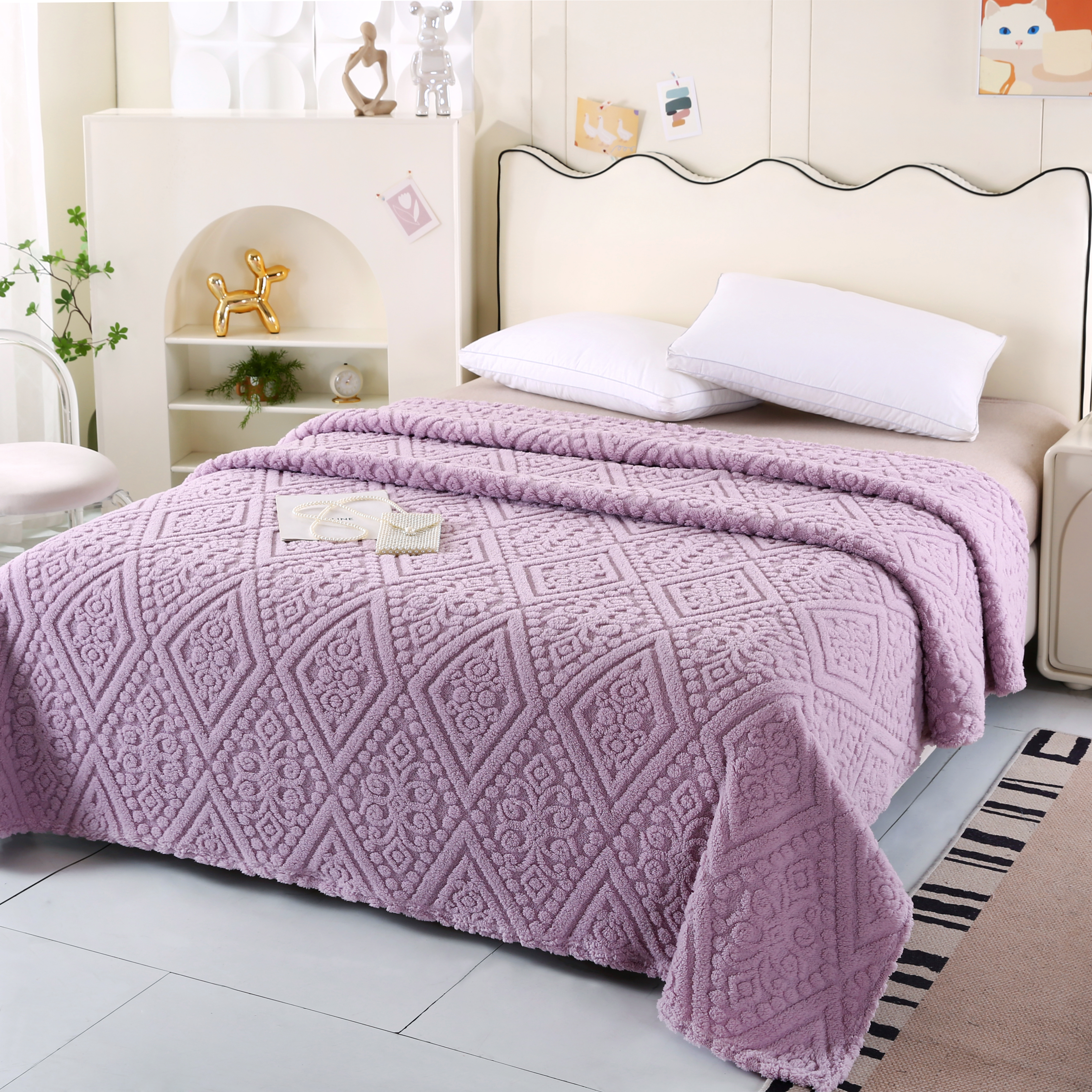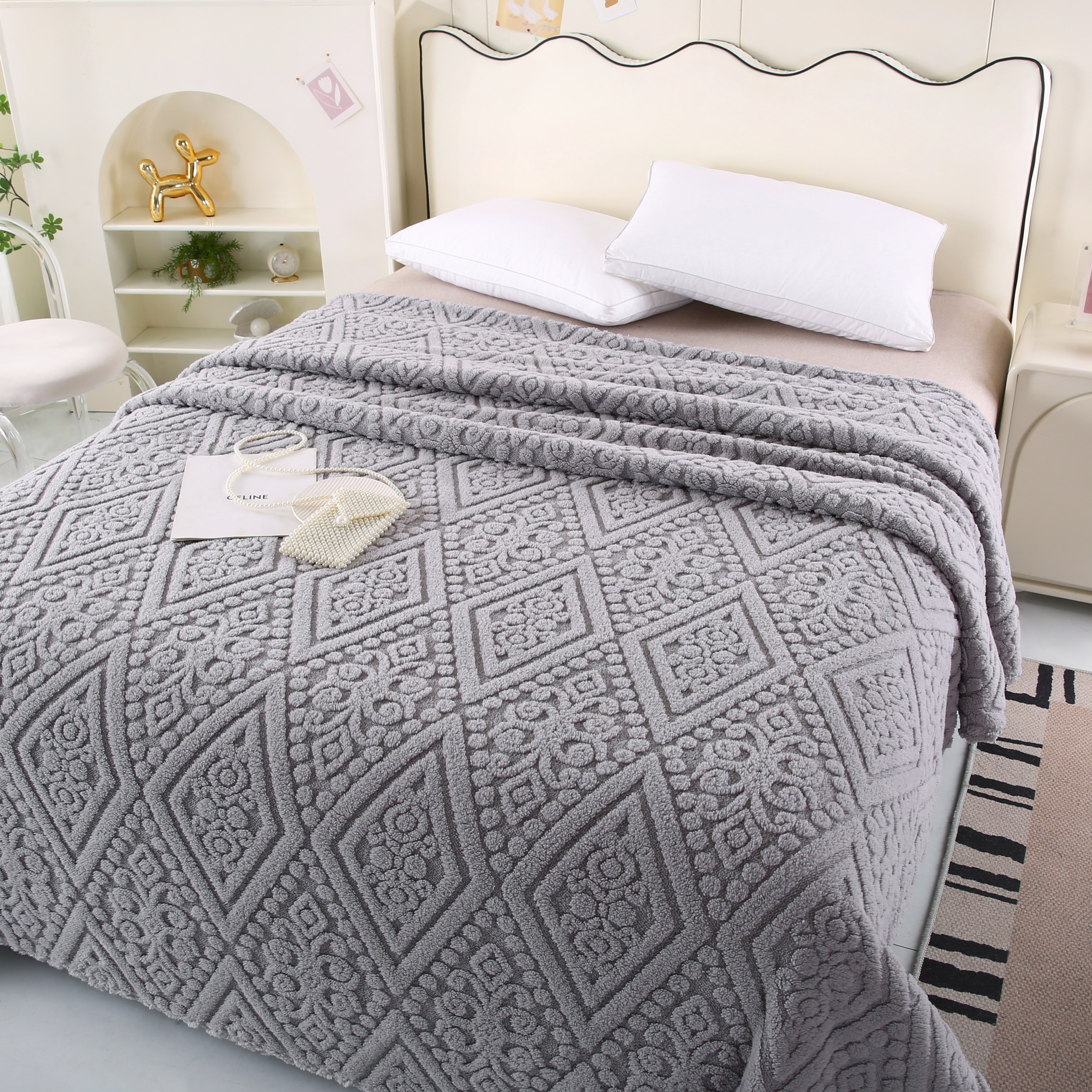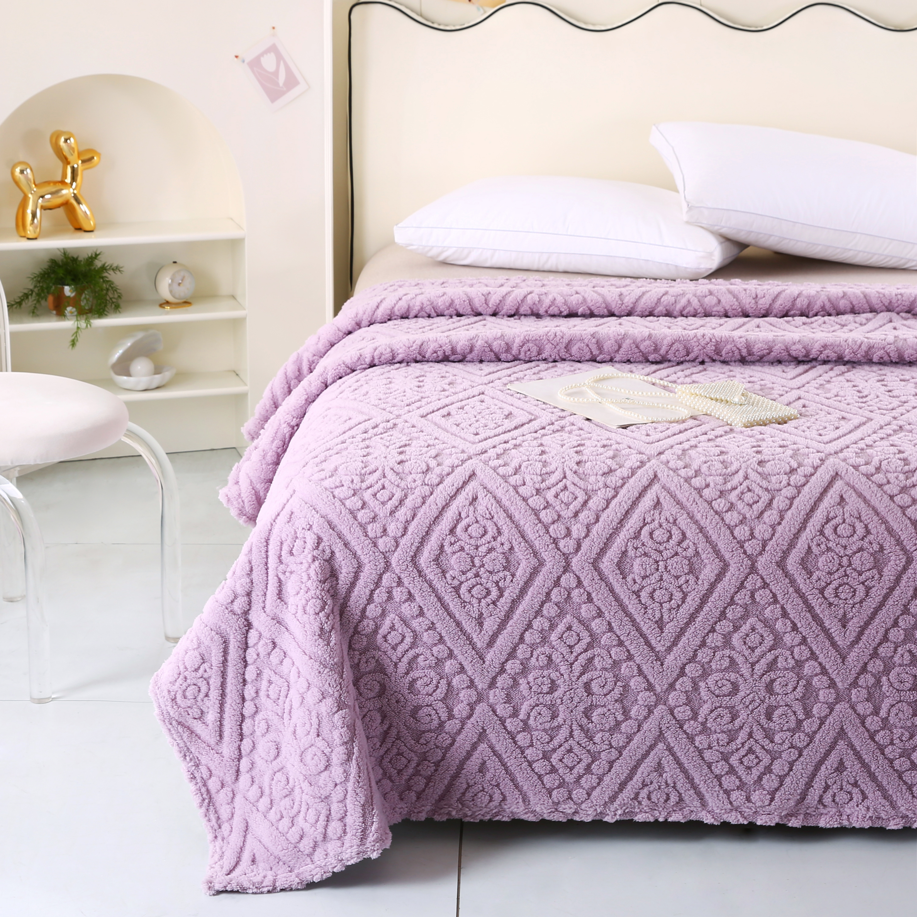 (总)巴木赫 2024新款提花朵朵绒双层羊羔绒毯,茶绿,粉色,咖啡,孔雀蓝,浅灰,浅驼