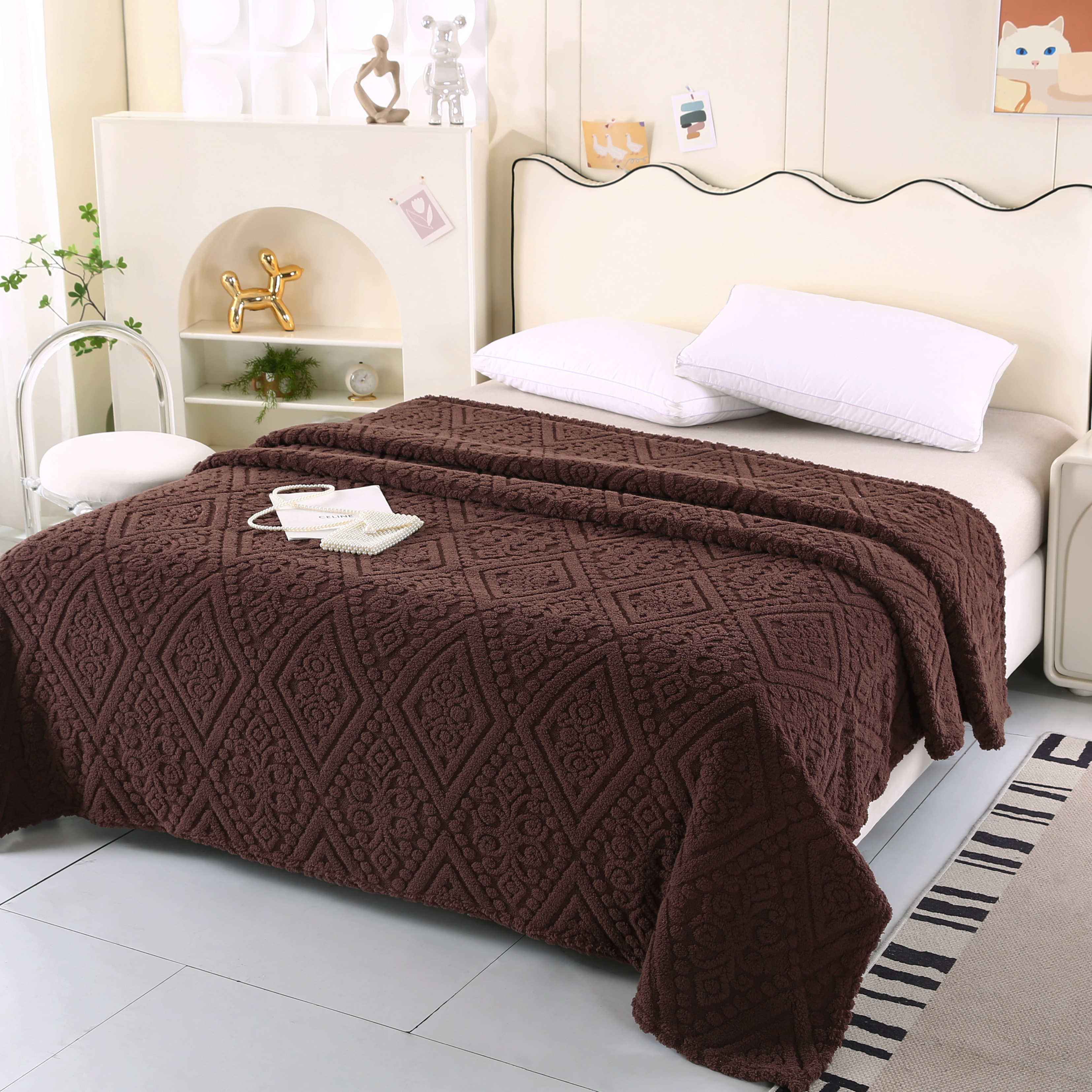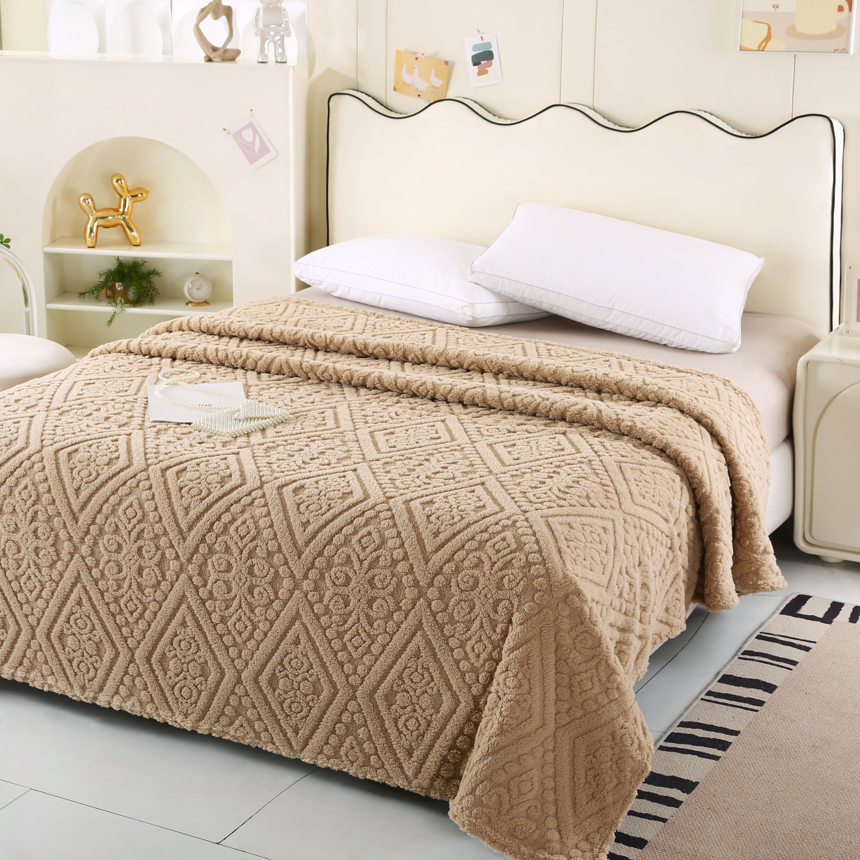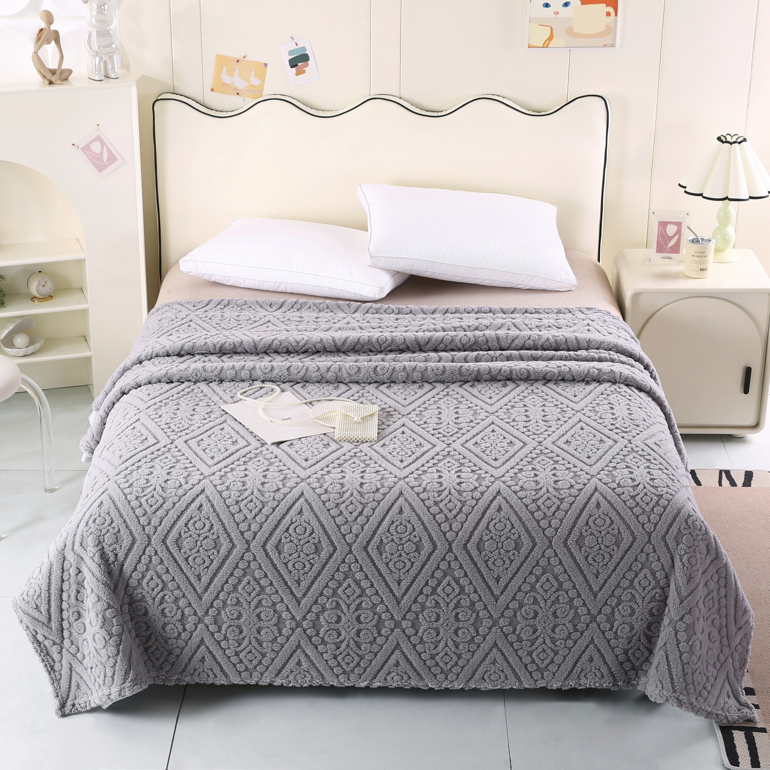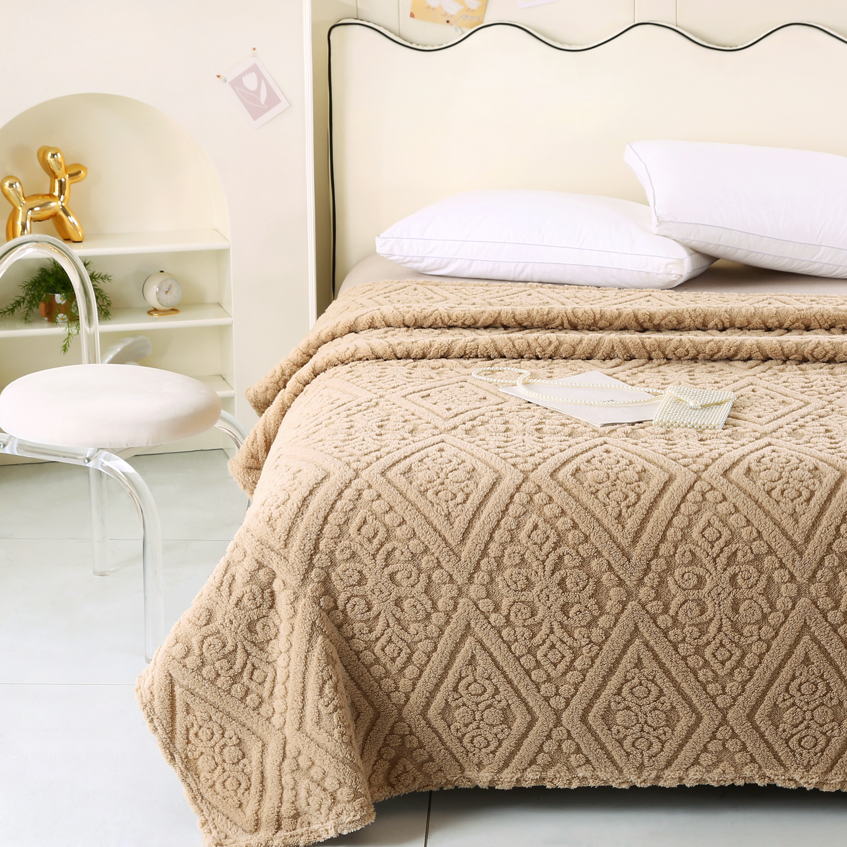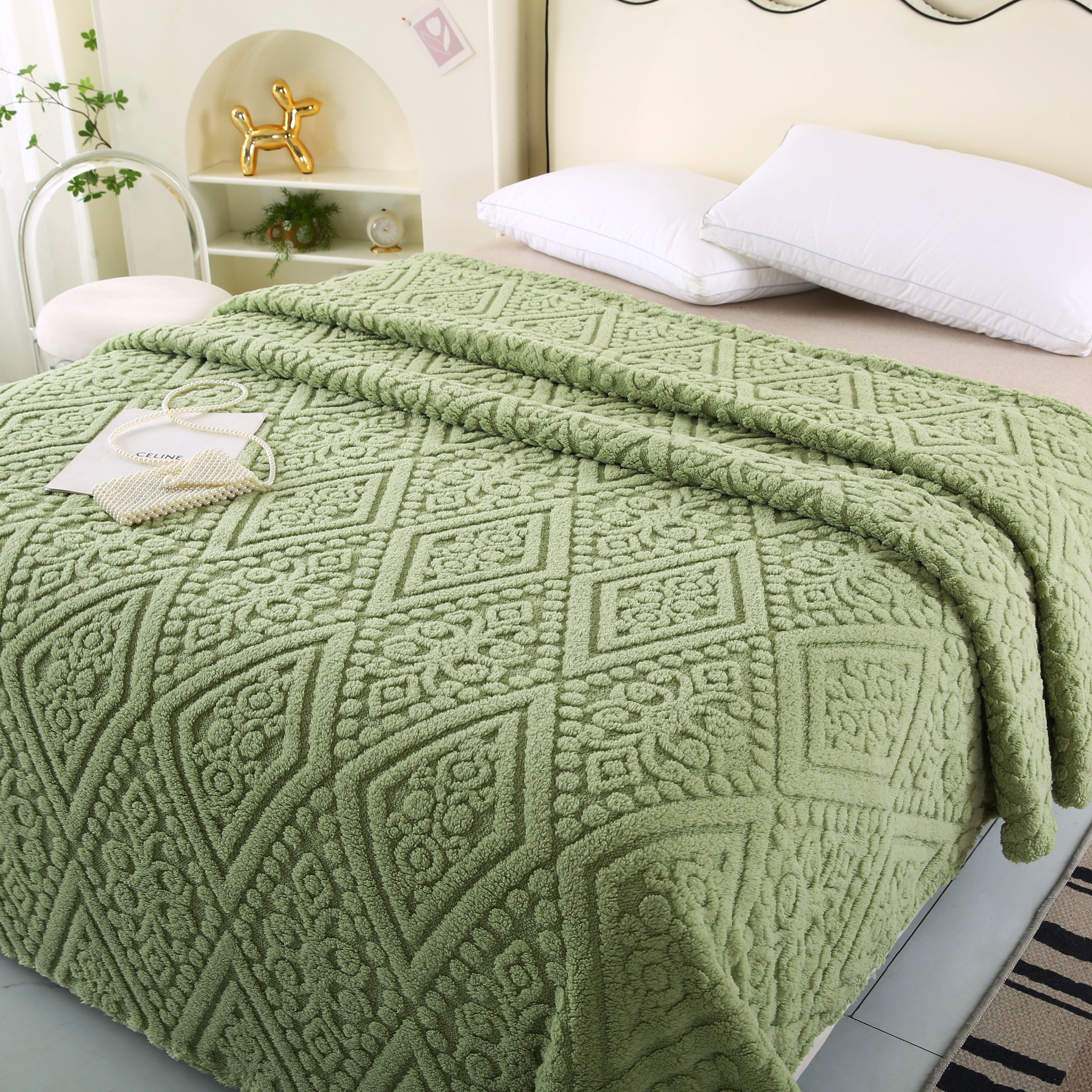 (总)巴木赫 2024新款提花朵朵绒双层羊羔绒毯,茶绿,粉色,咖啡,孔雀蓝,浅灰,浅驼