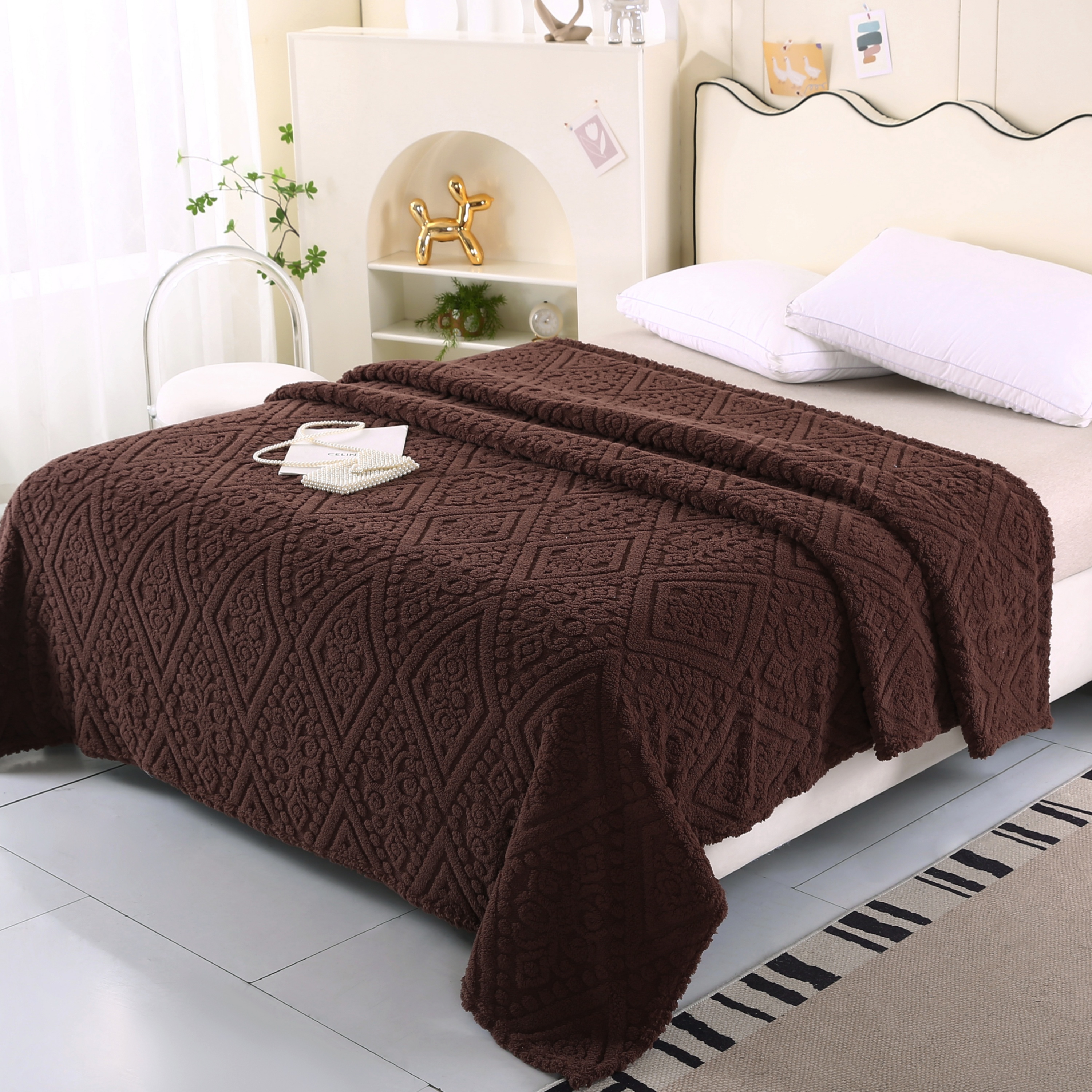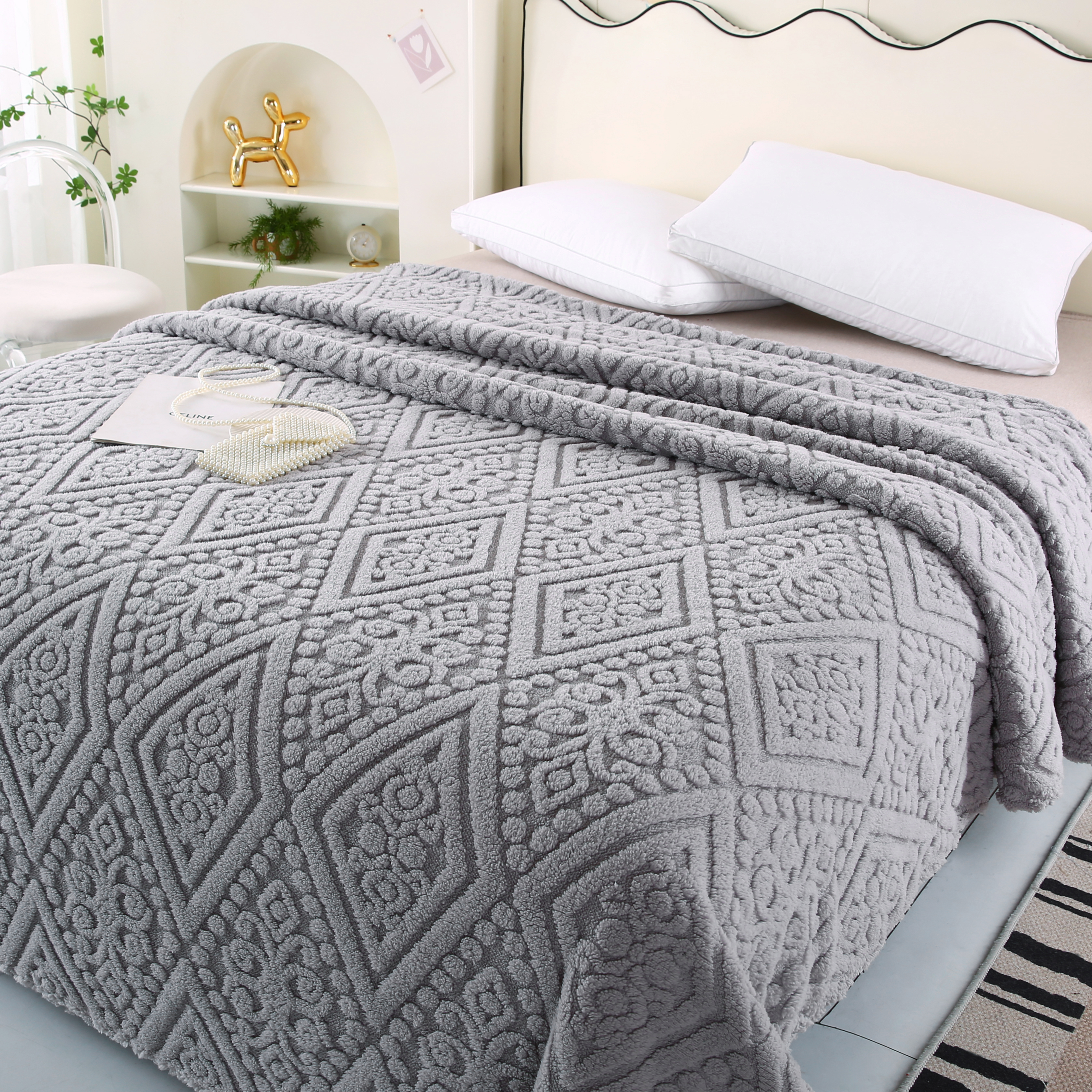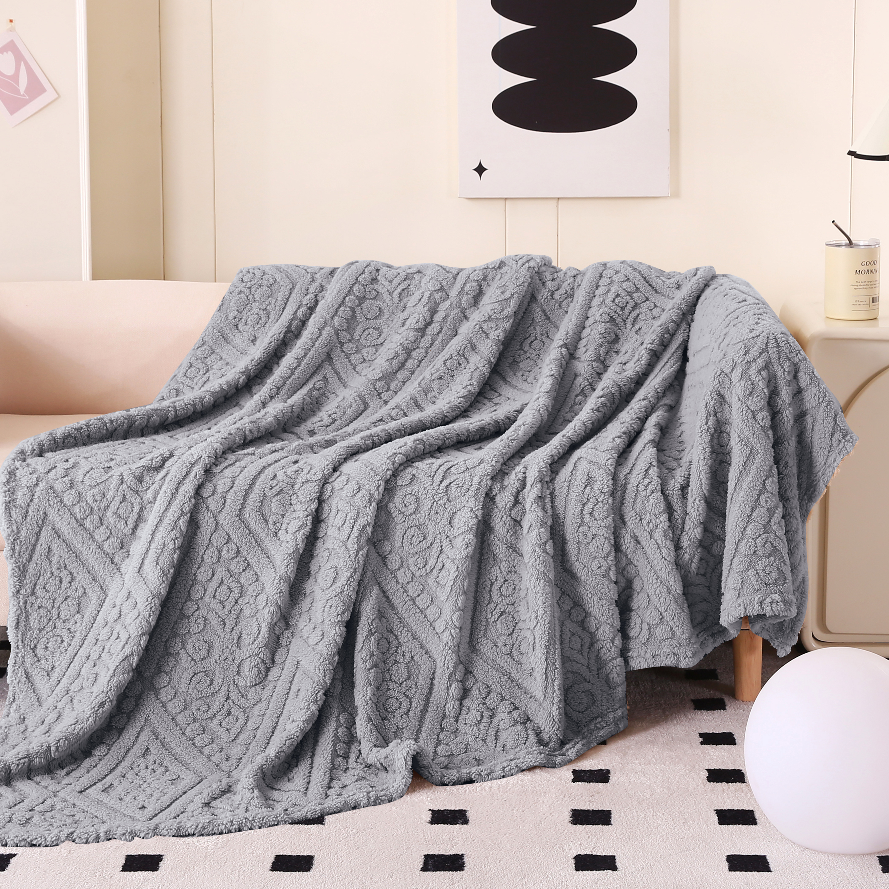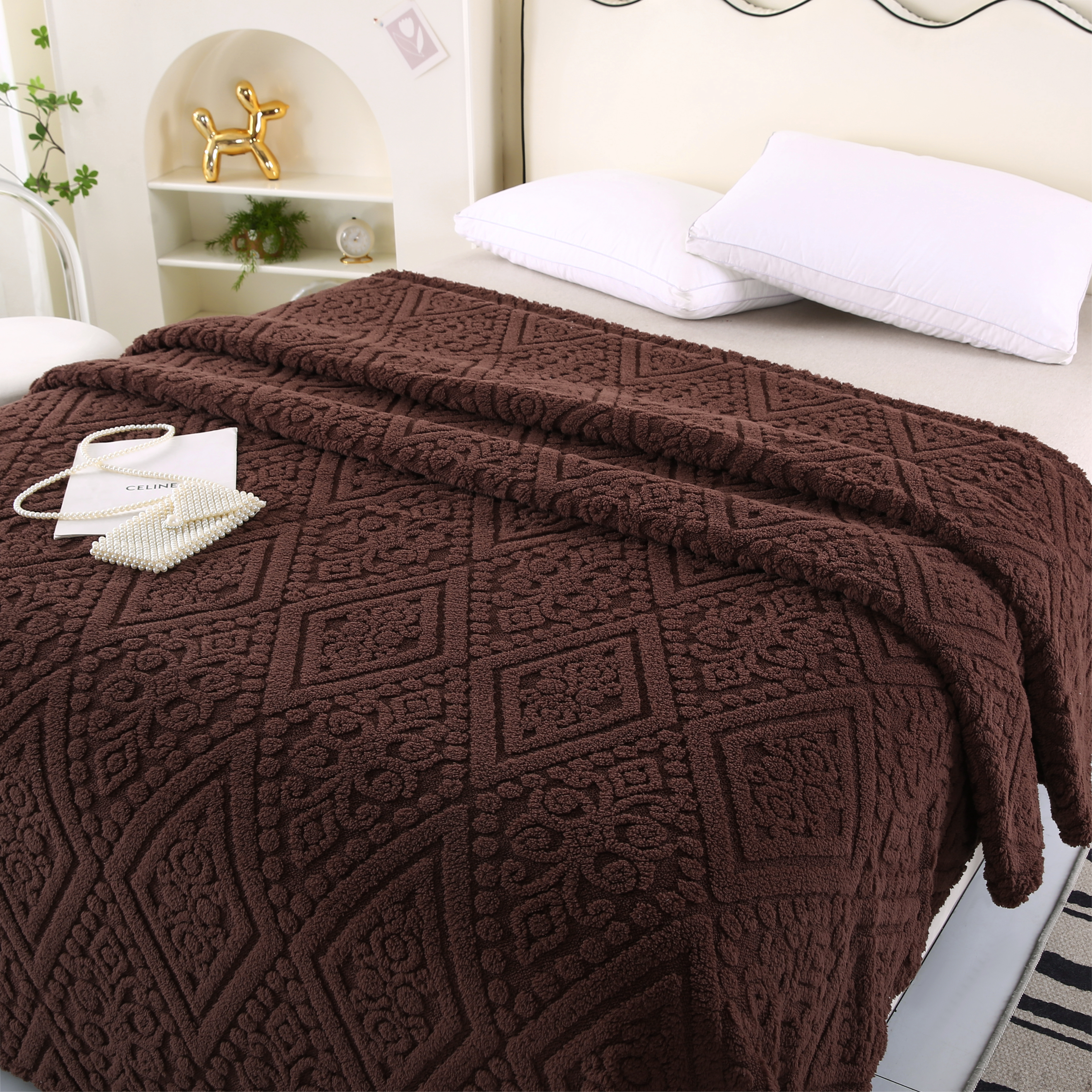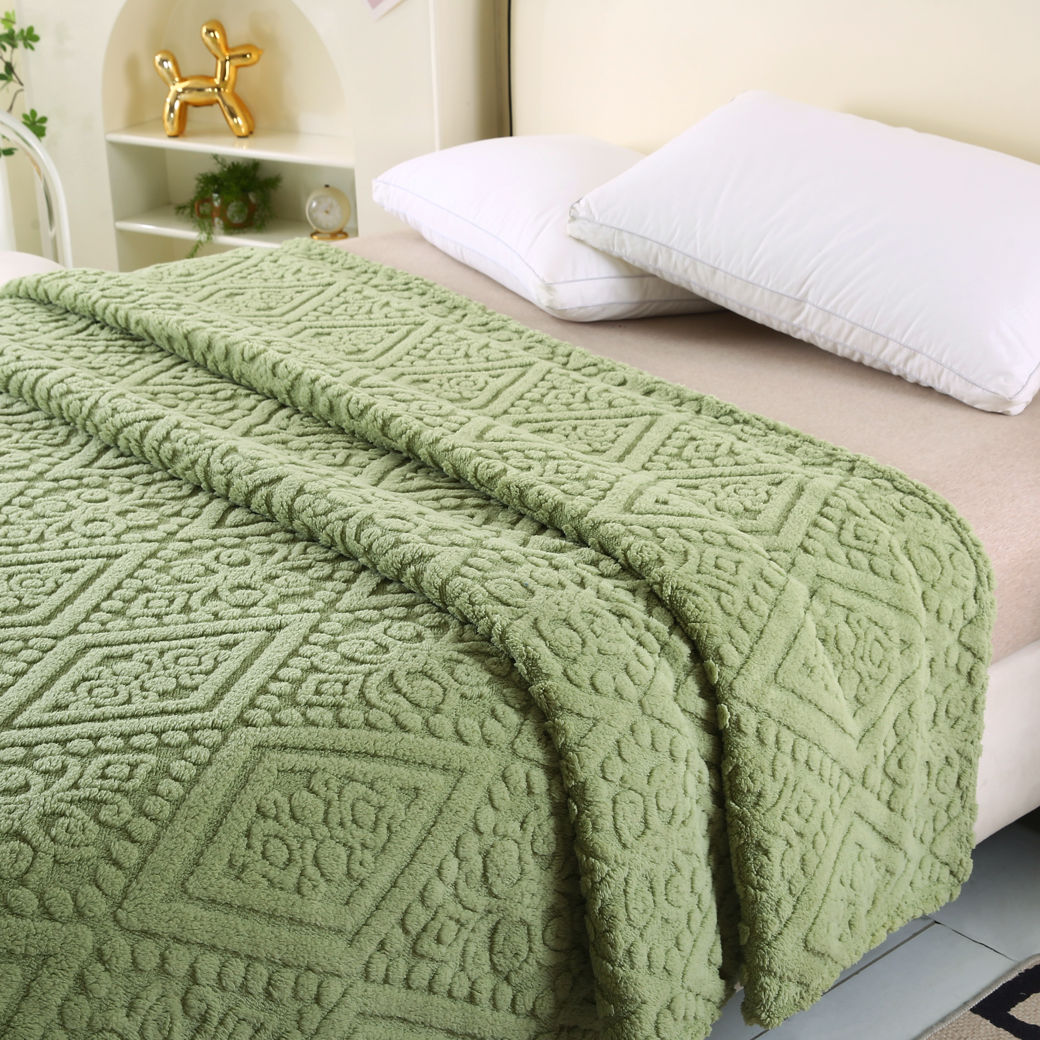 (总)巴木赫 2024新款提花朵朵绒双层羊羔绒毯,茶绿,粉色,咖啡,孔雀蓝,浅灰,浅驼