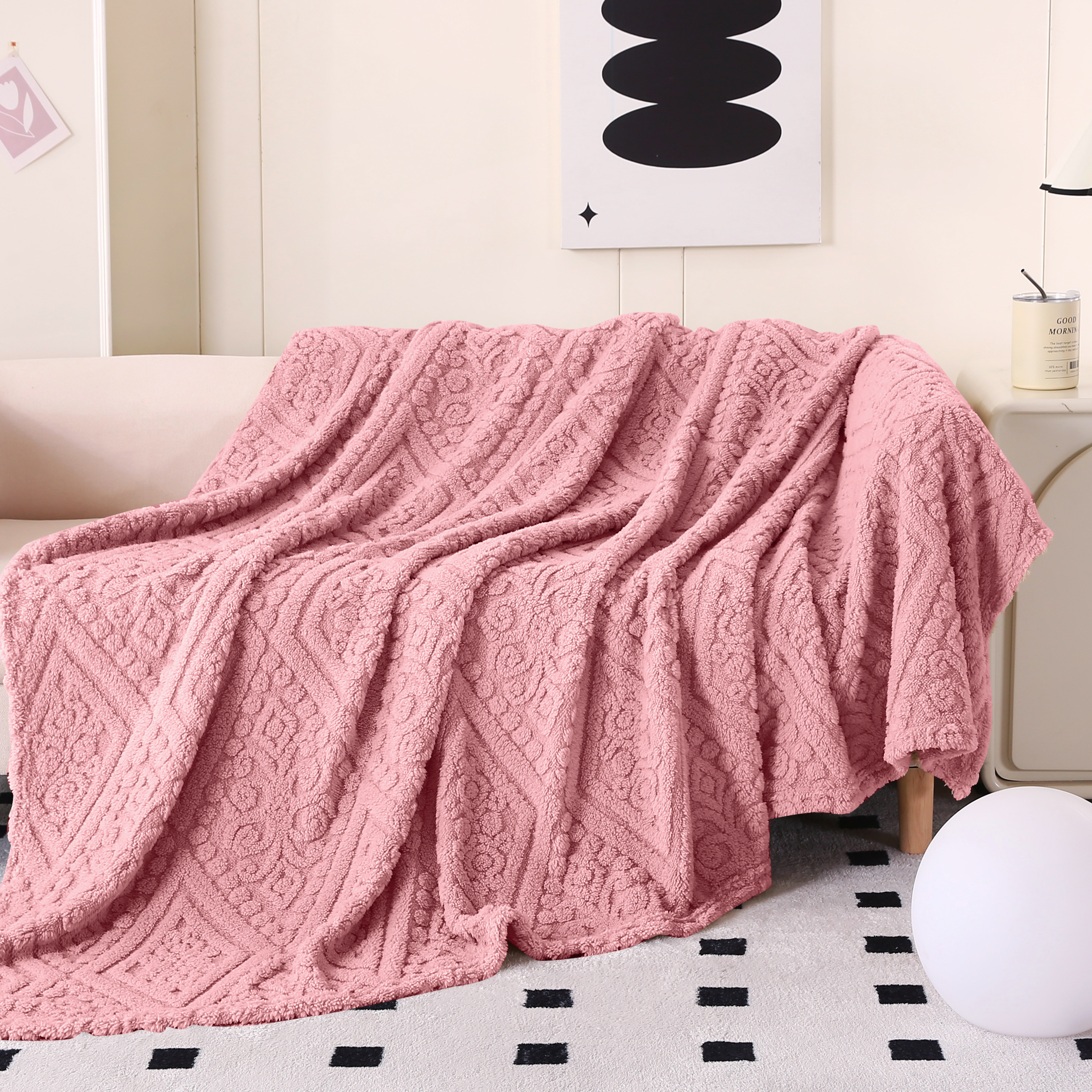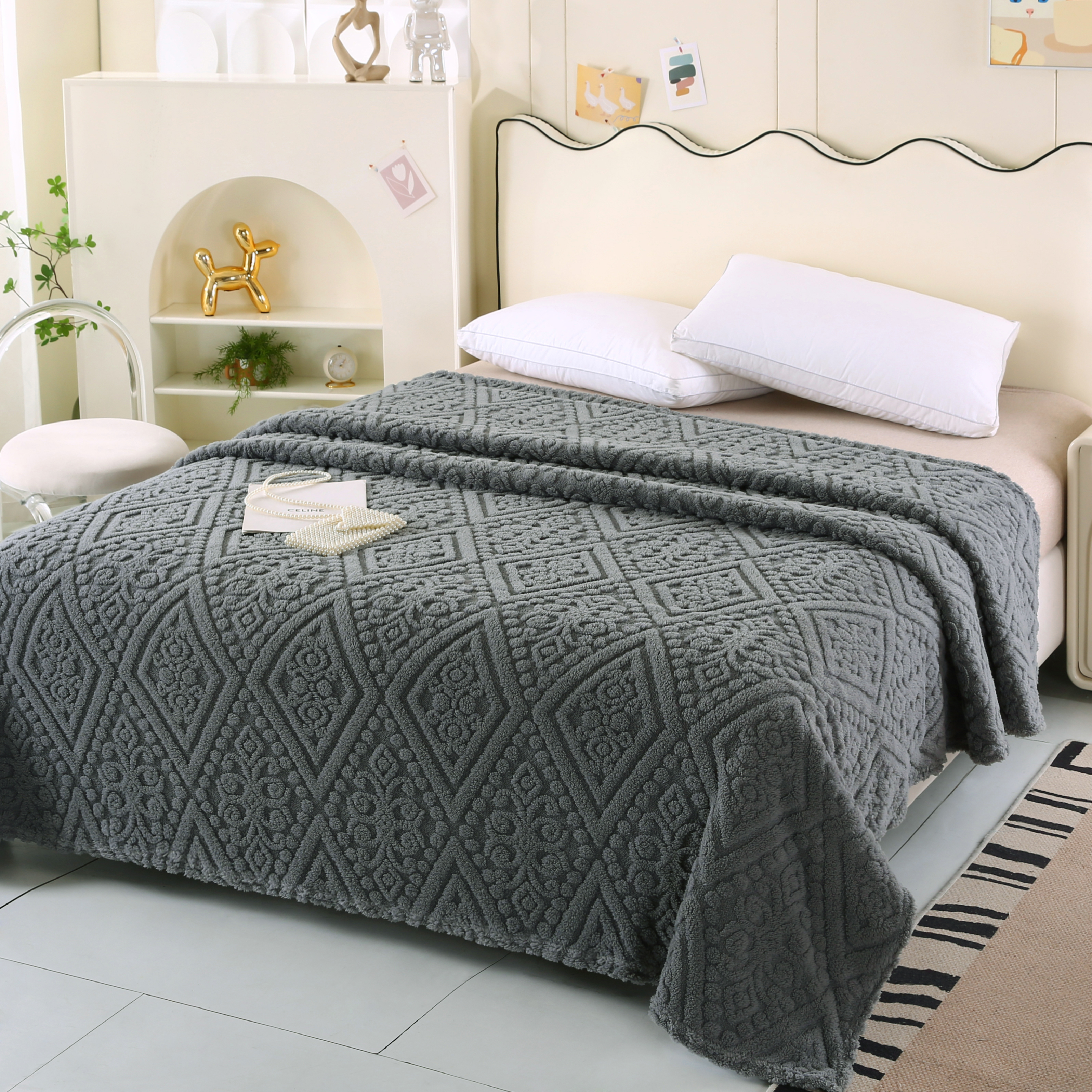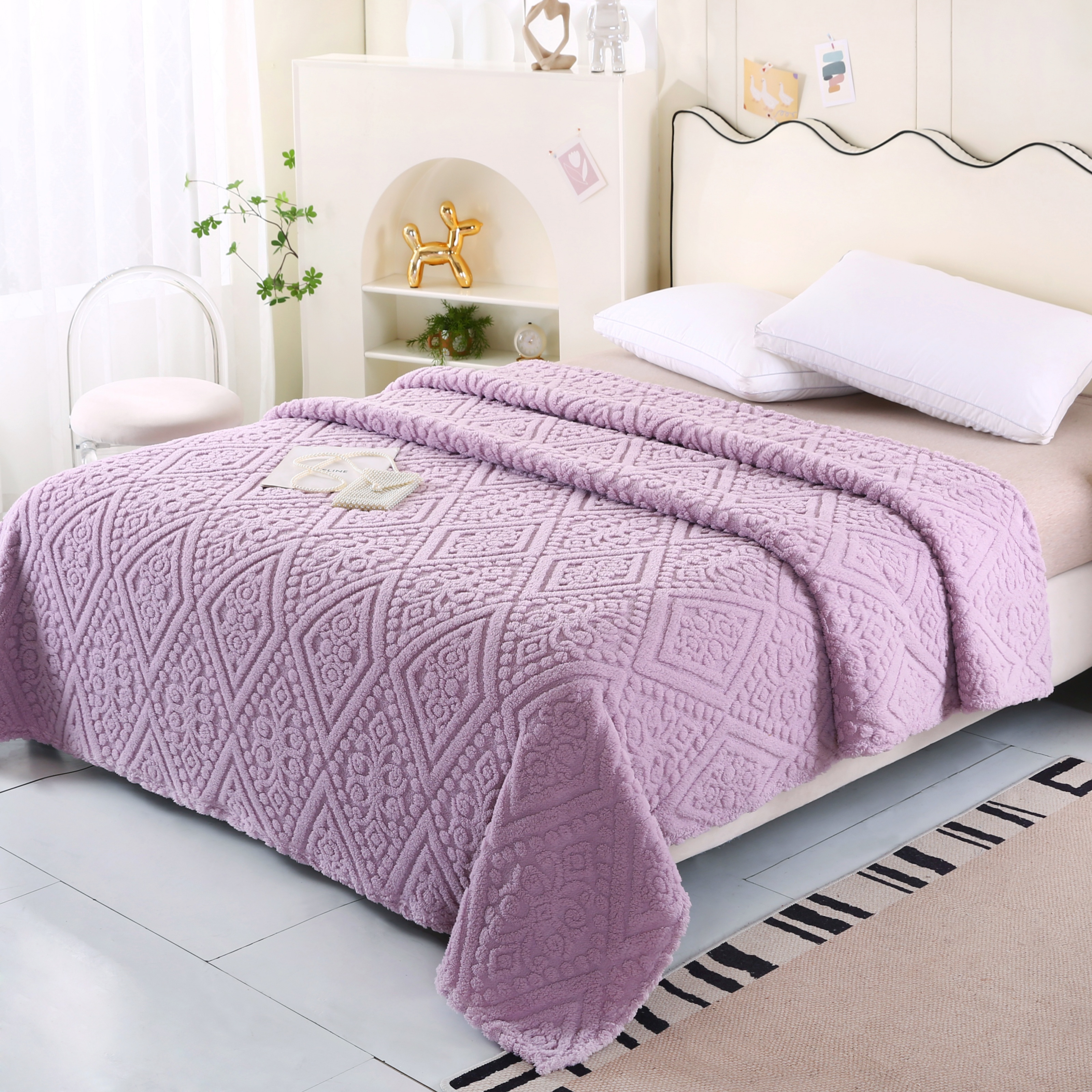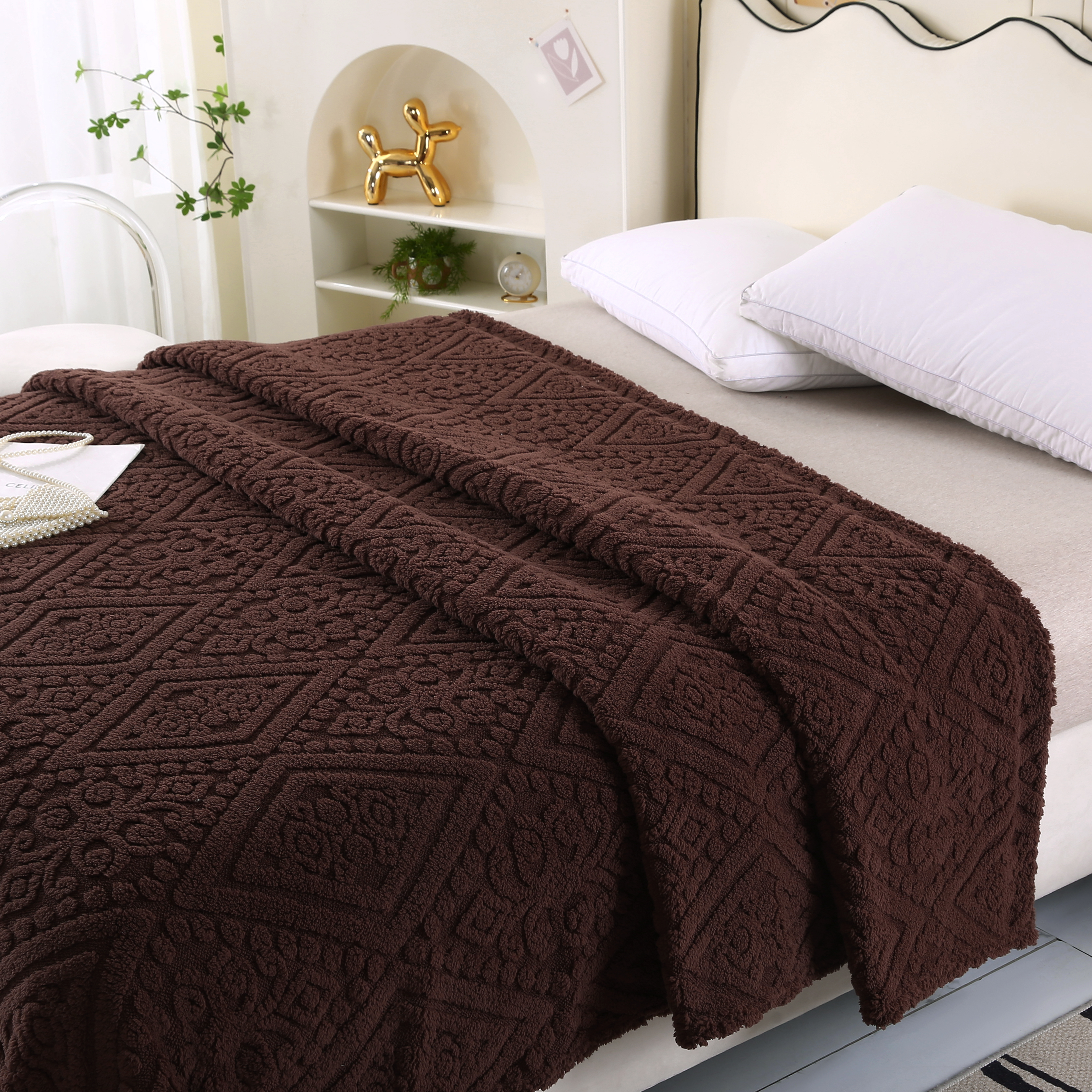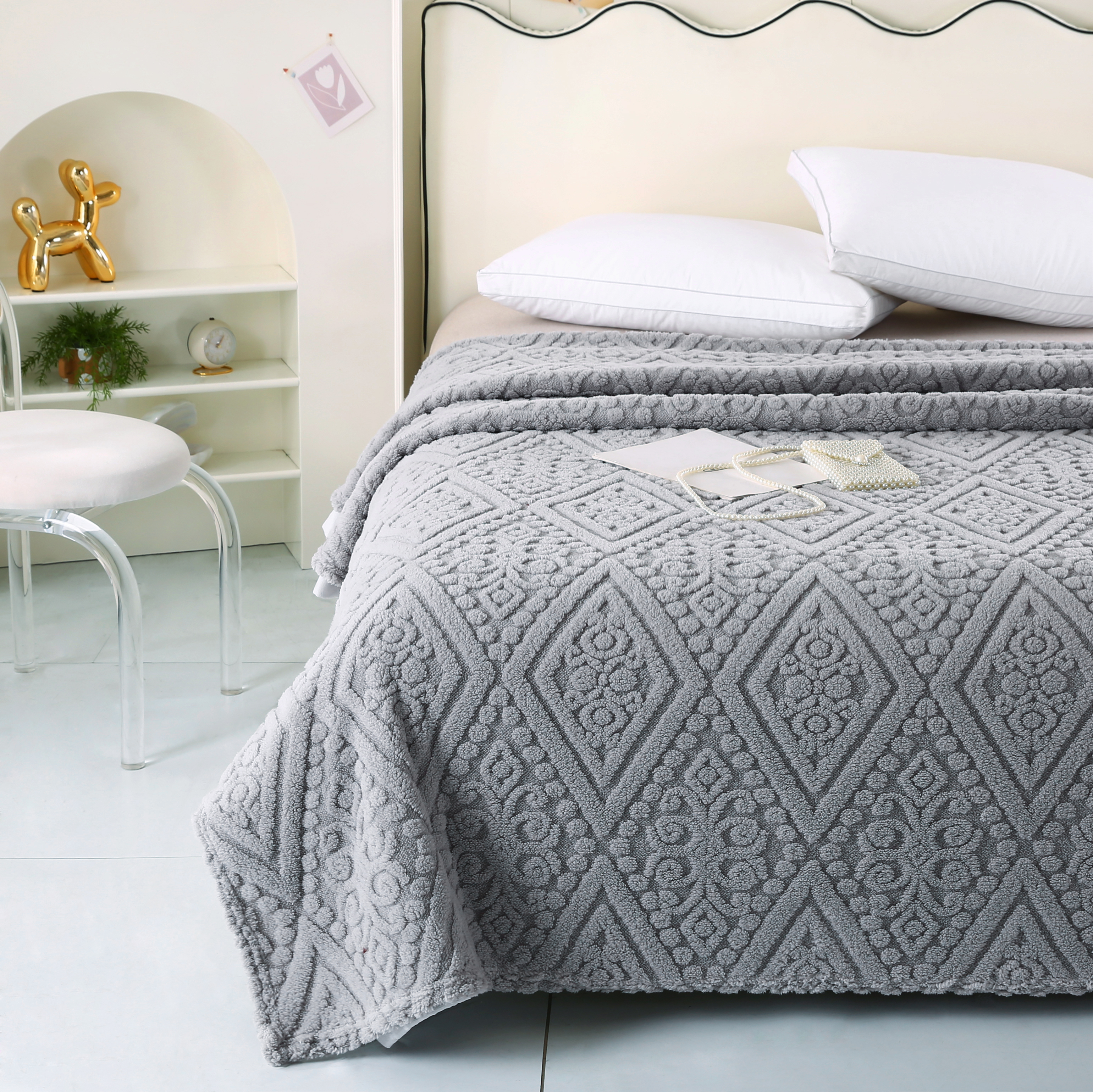 (总)巴木赫 2024新款提花朵朵绒双层羊羔绒毯,茶绿,粉色,咖啡,孔雀蓝,浅灰,浅驼