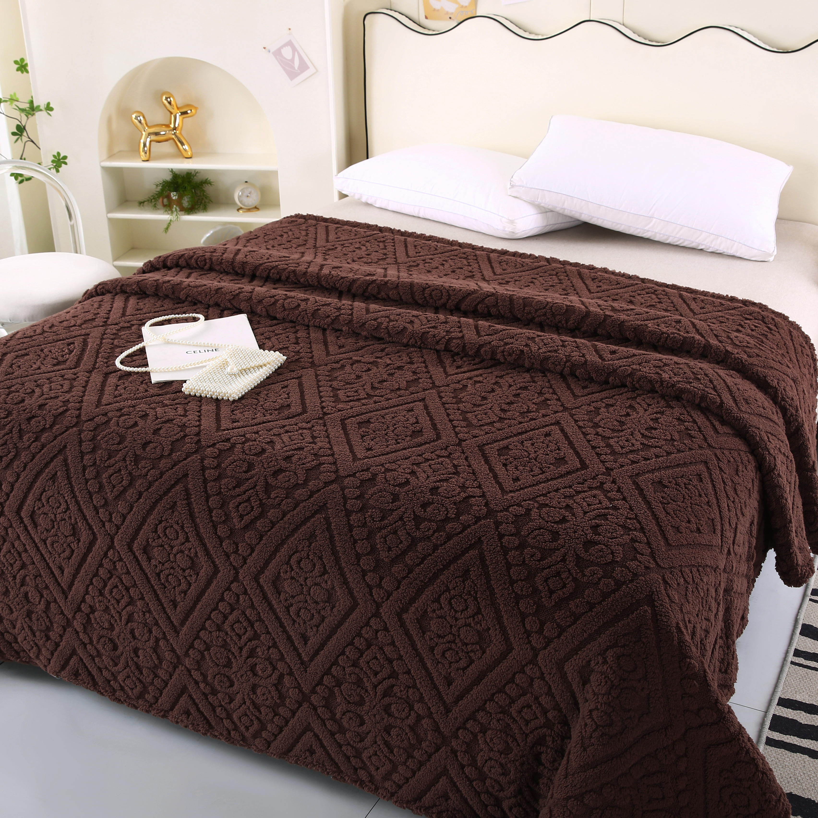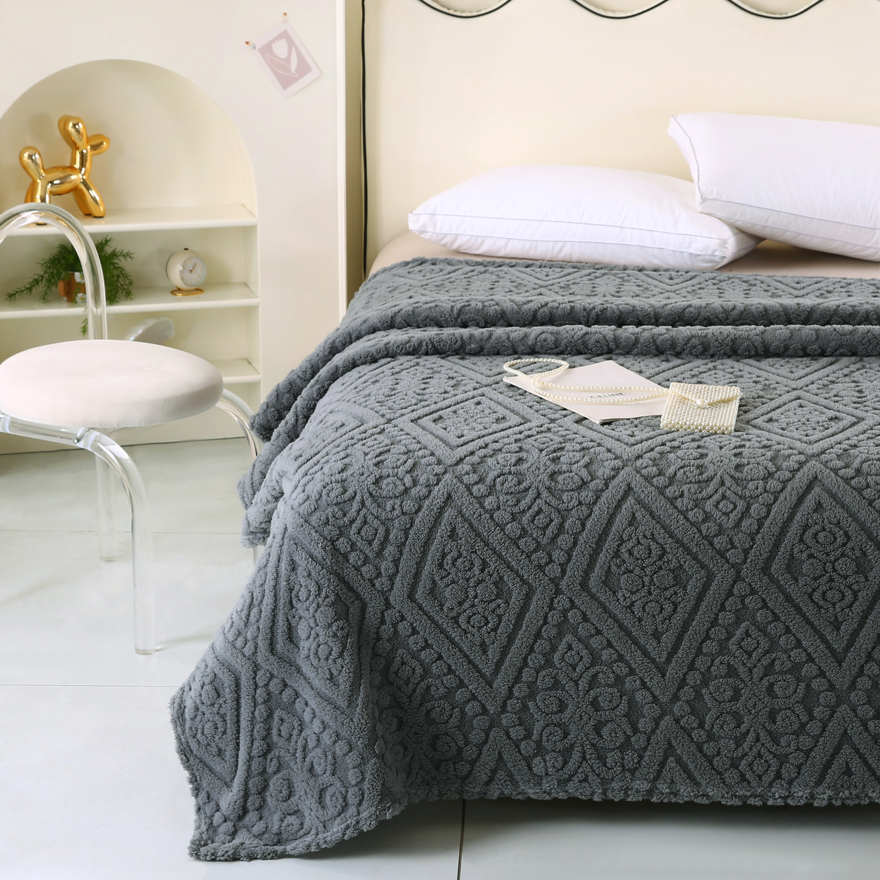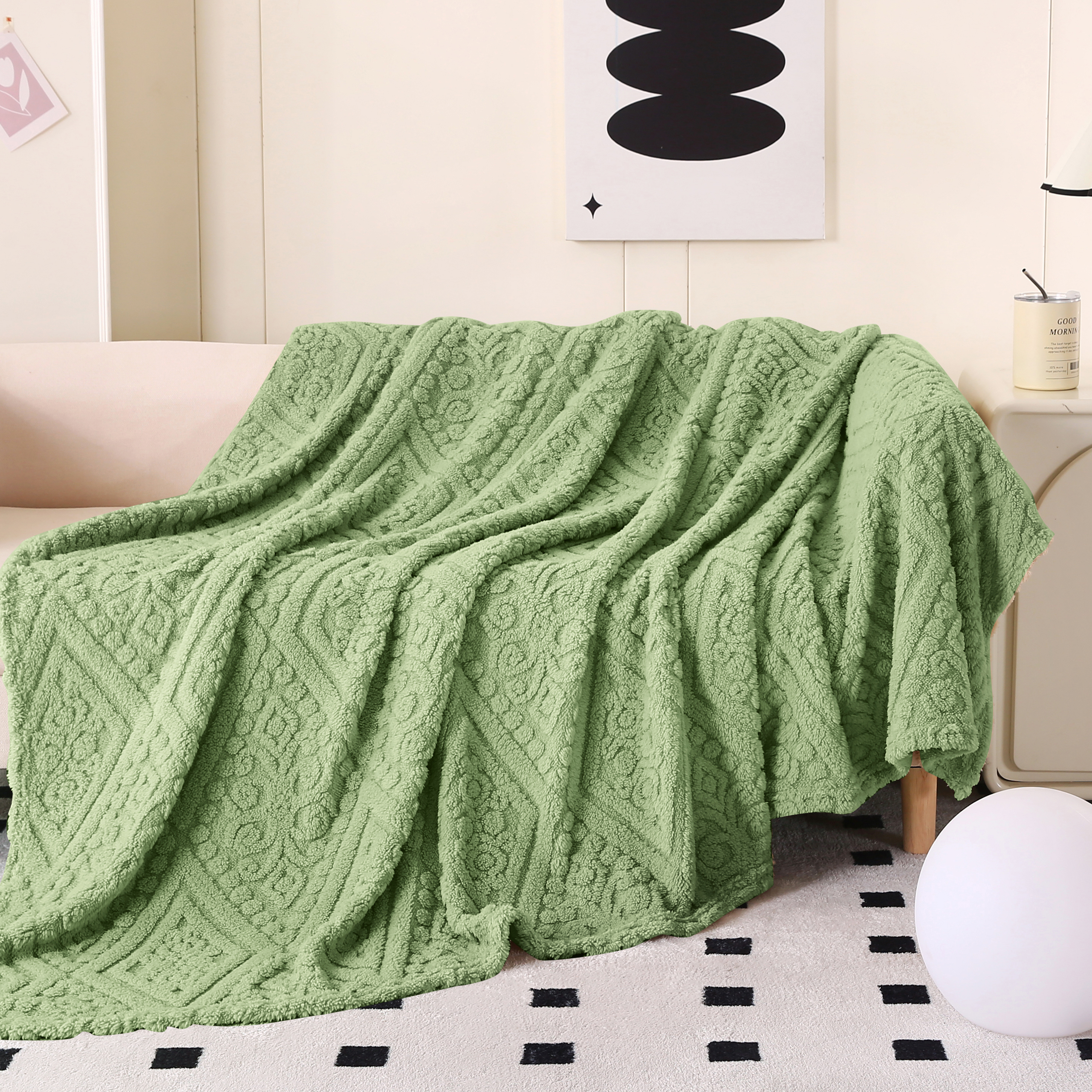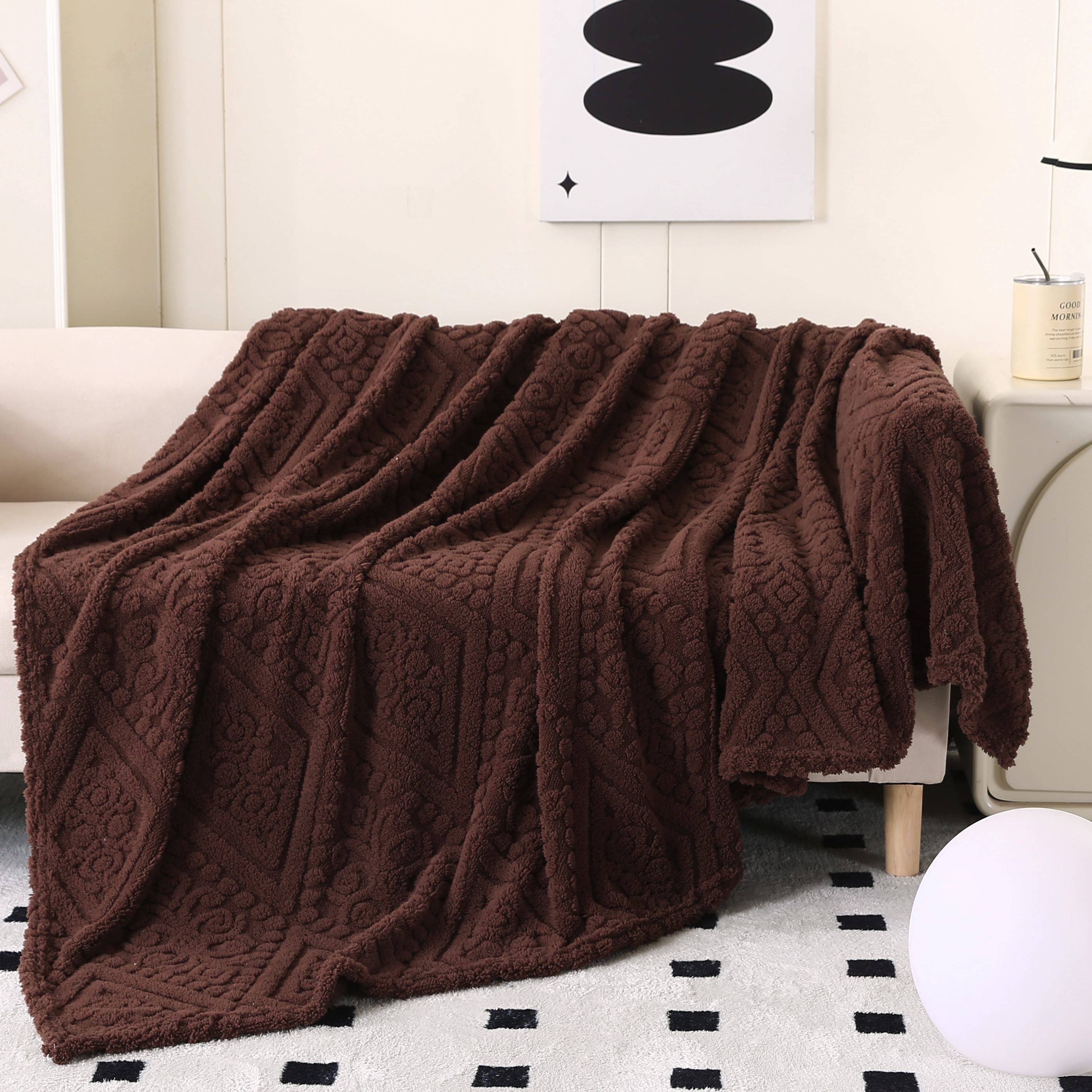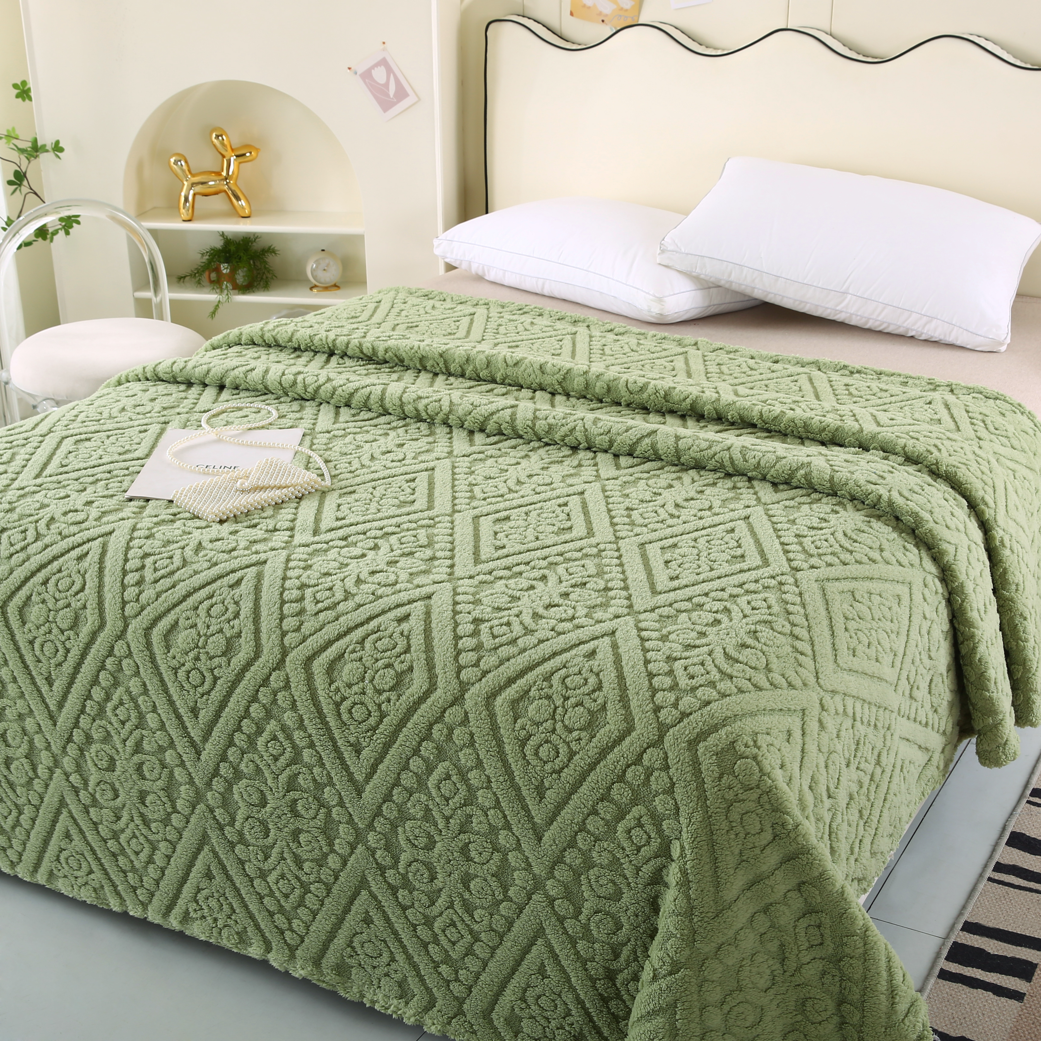 (总)巴木赫 2024新款提花朵朵绒双层羊羔绒毯,茶绿,粉色,咖啡,孔雀蓝,浅灰,浅驼