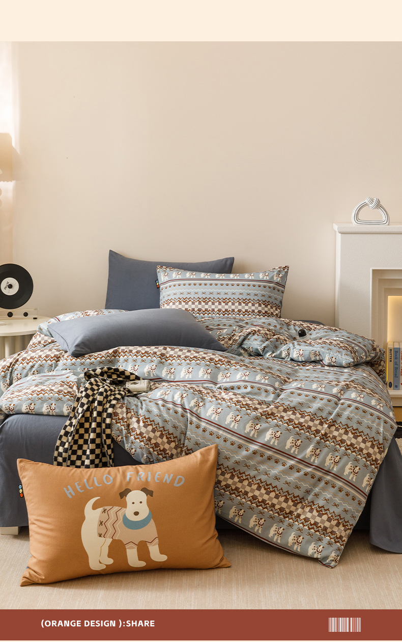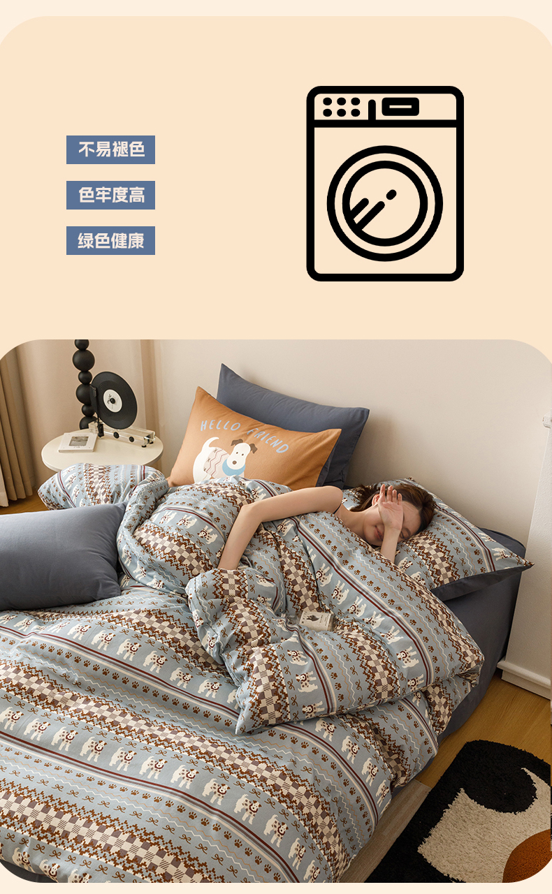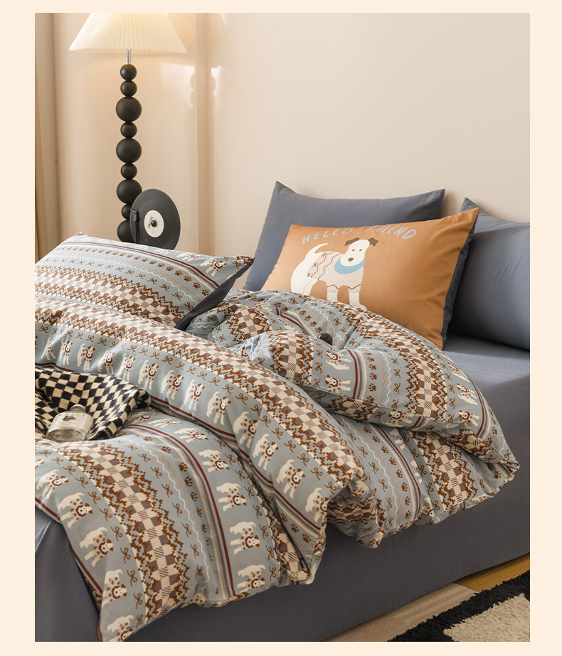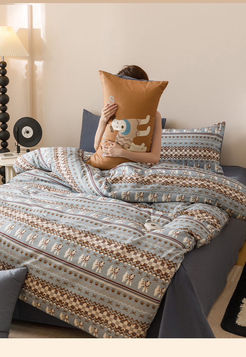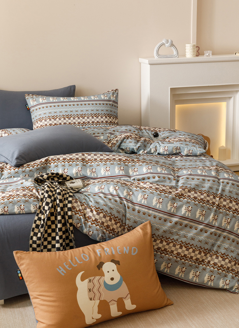 当前位置: 91家纺网 > 商品网购 > 床品套件 > 四件套 > 磨毛活性四件套 > RYB红黄兰 2025新款费尔岛系全棉纯棉加厚磨毛数码印花四件套 费尔岛小犬蓝