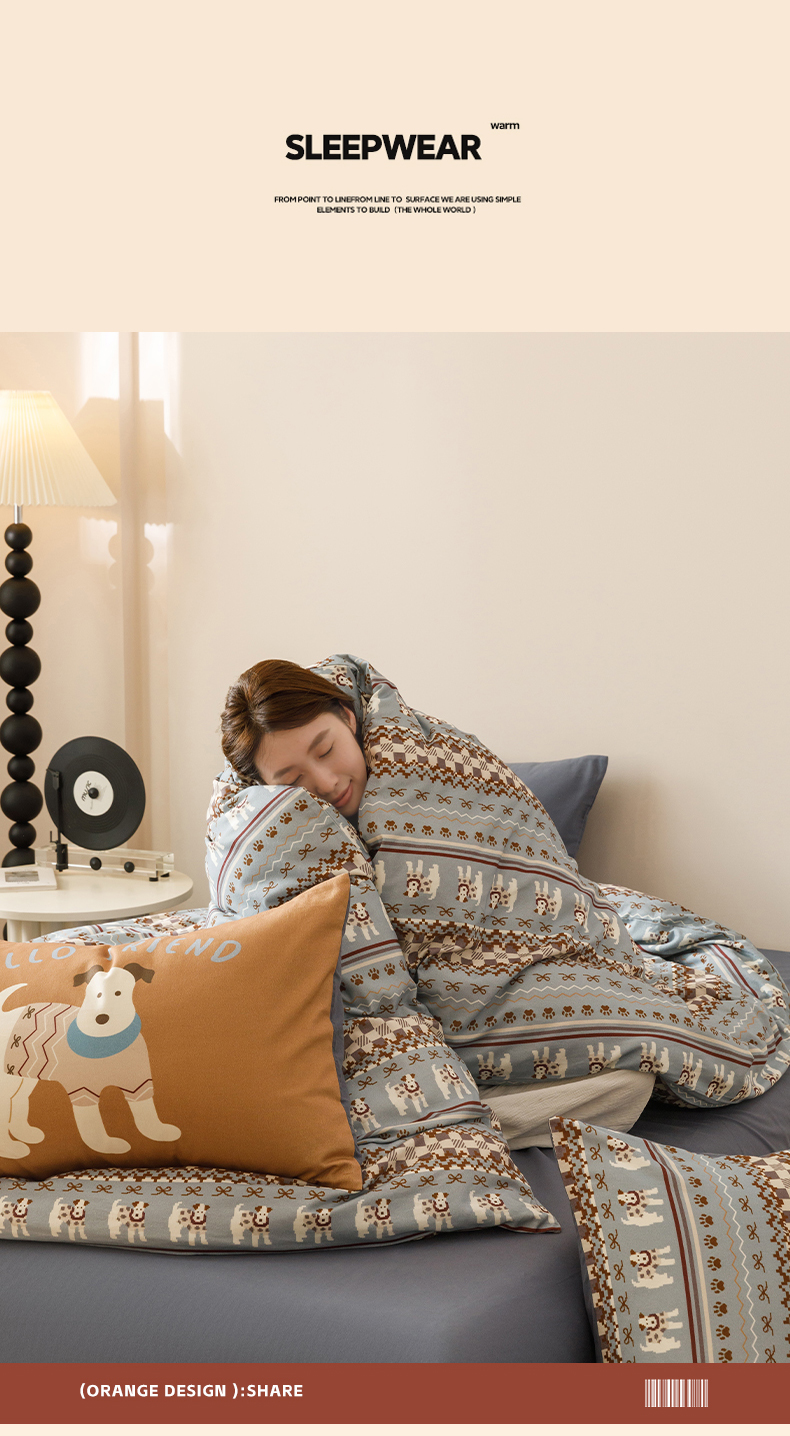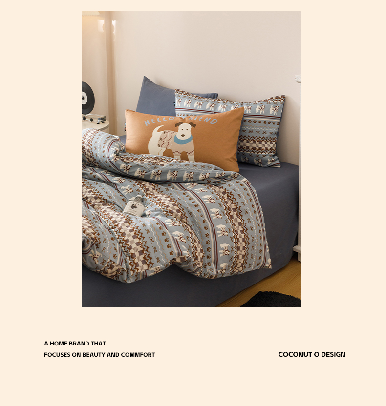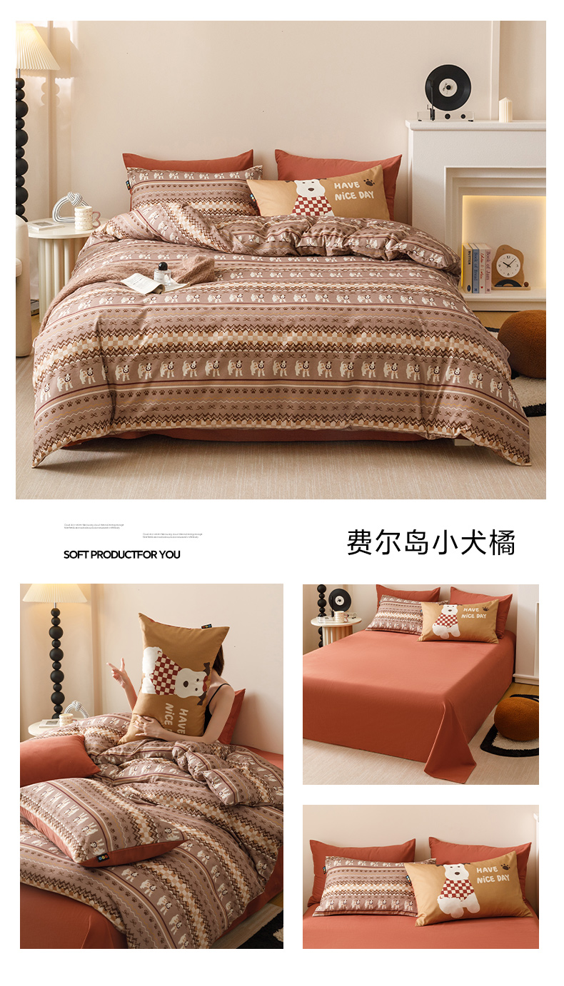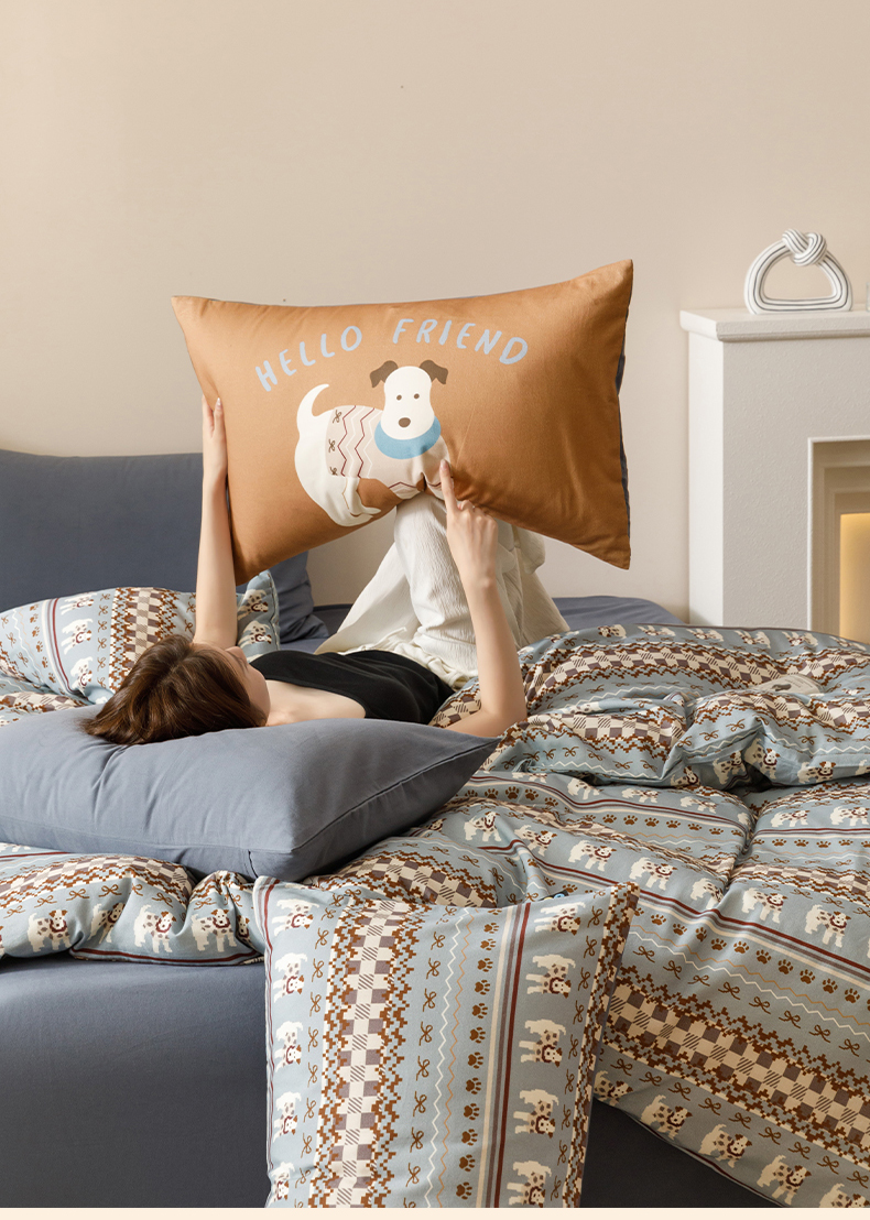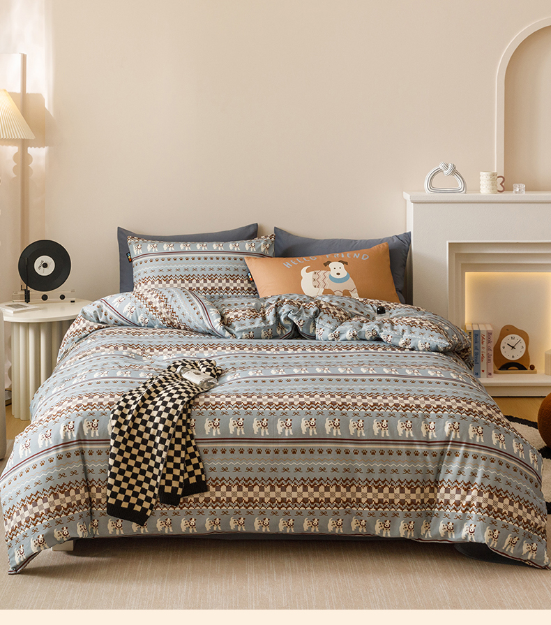 当前位置: 91家纺网 > 商品网购 > 床品套件 > 四件套 > 磨毛活性四件套 > RYB红黄兰 2025新款费尔岛系全棉纯棉加厚磨毛数码印花四件套 费尔岛小犬蓝