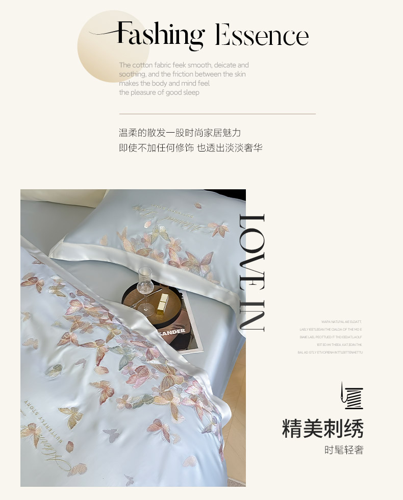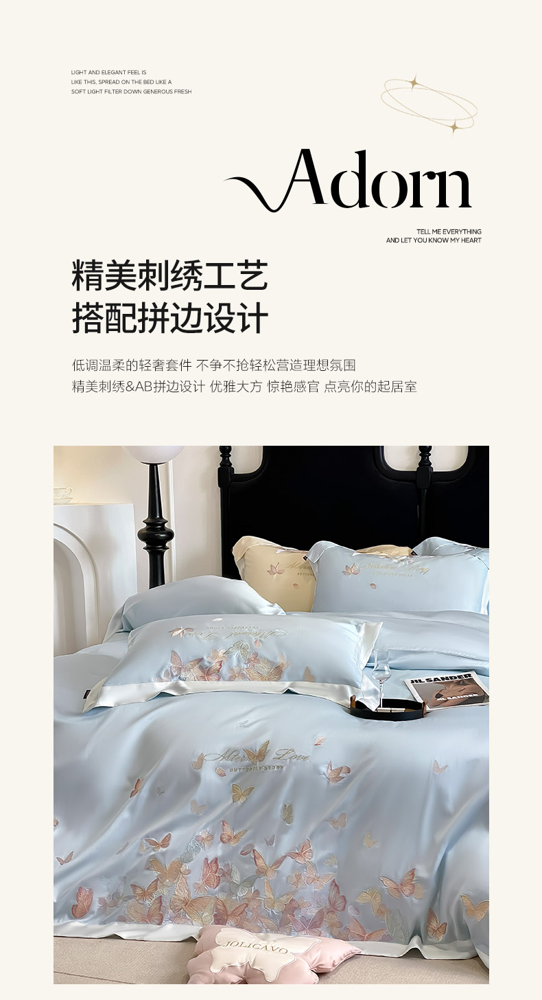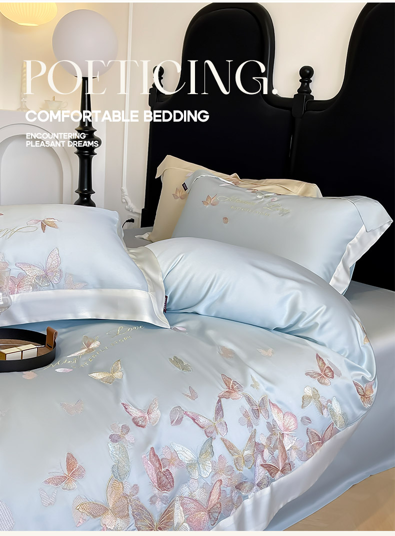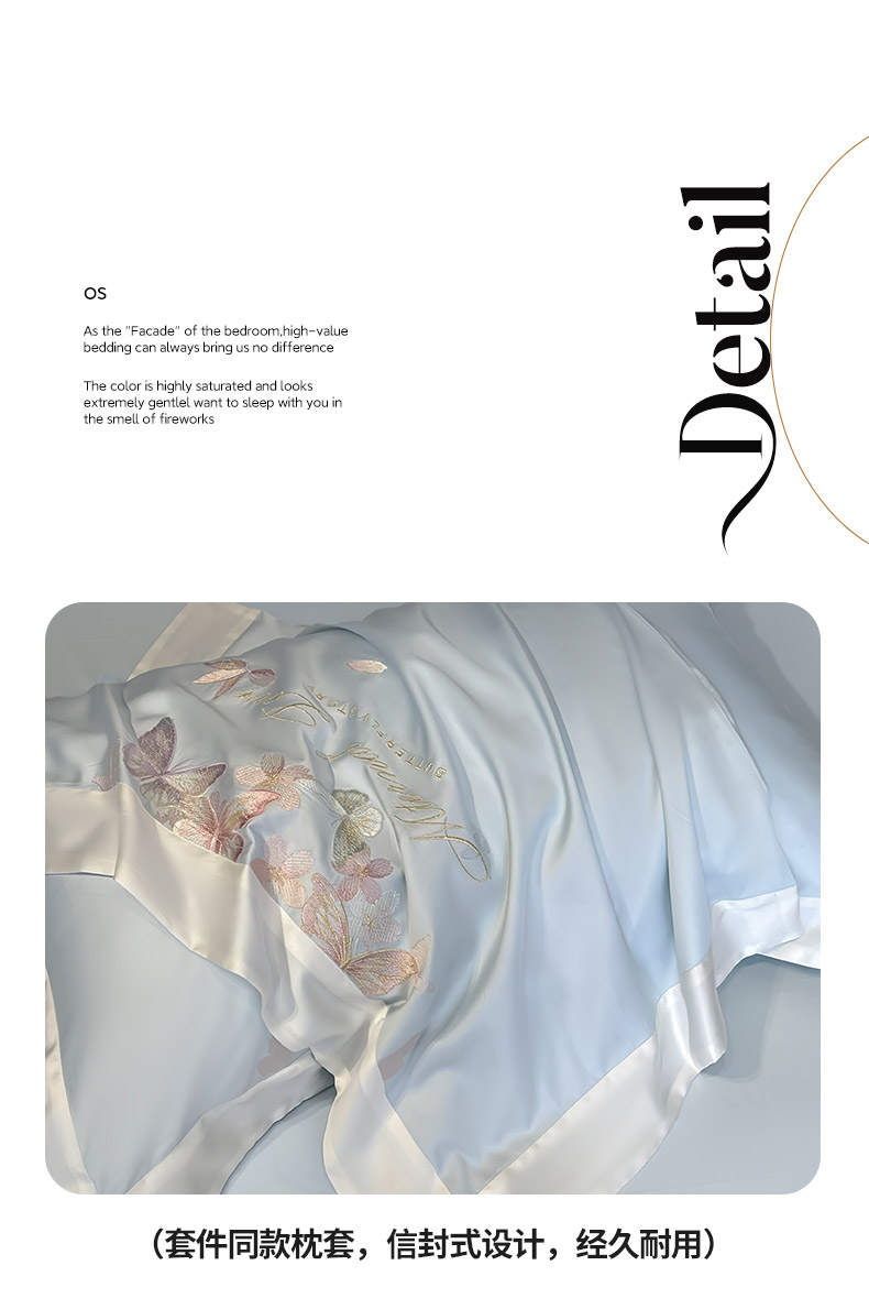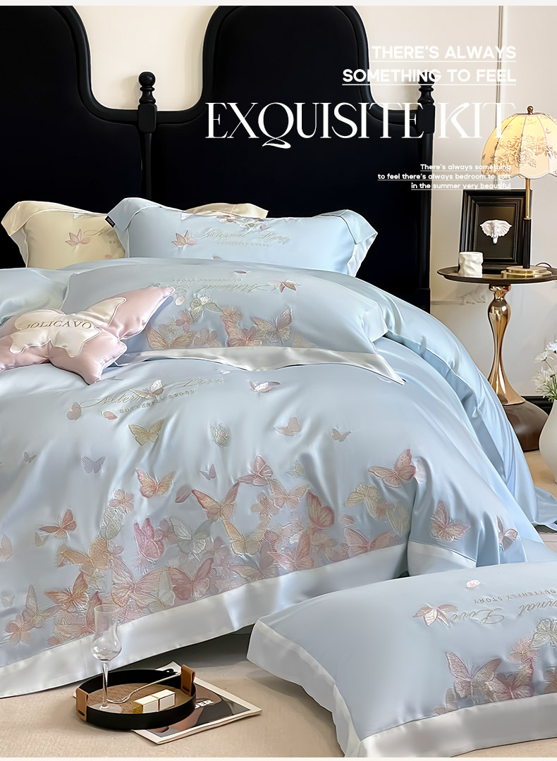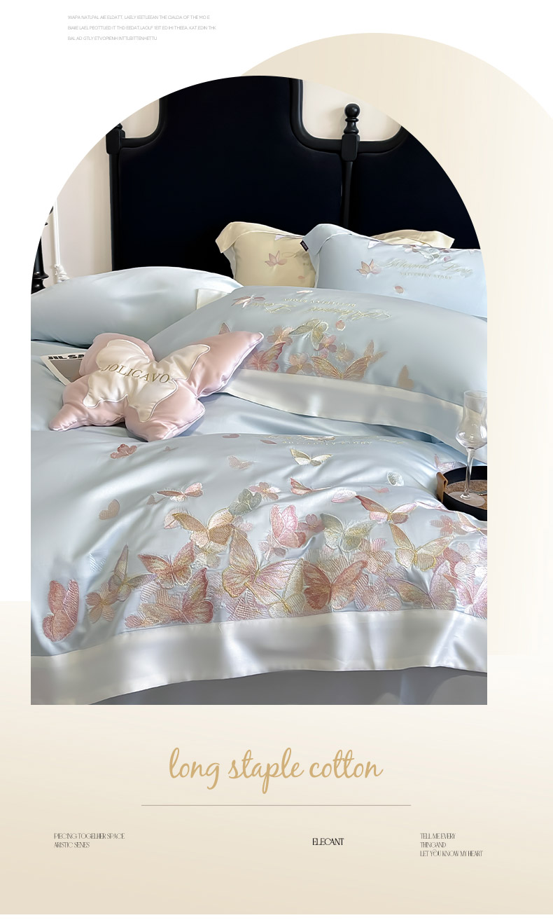 2025直播爆款A类贡缎长绒棉四件套纯棉全棉重工刺绣被套床单高端拼接床上用品 七彩蝶梦-布鲁蓝