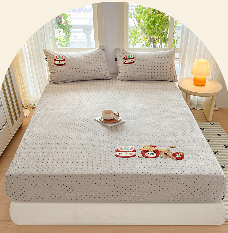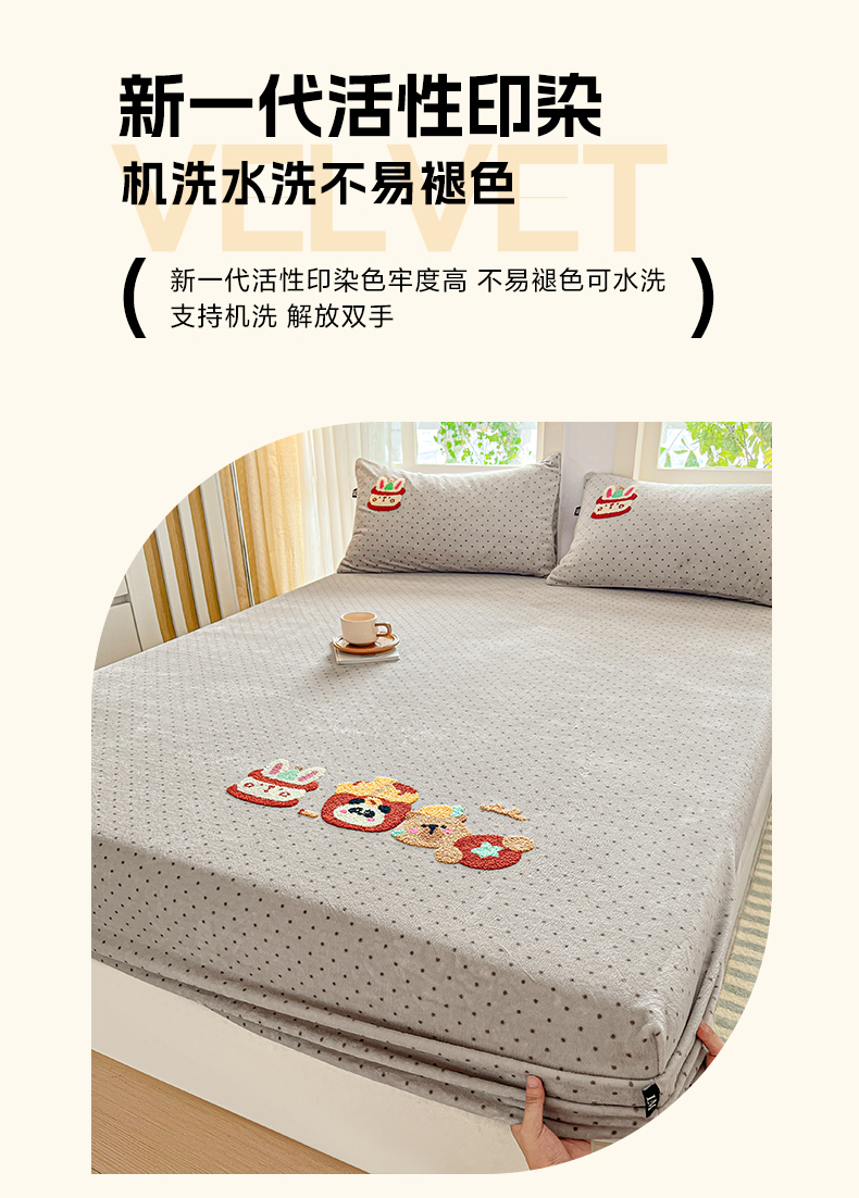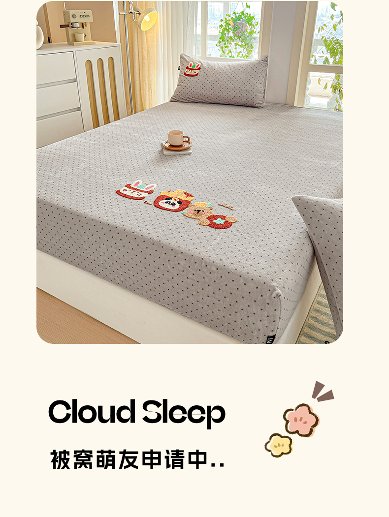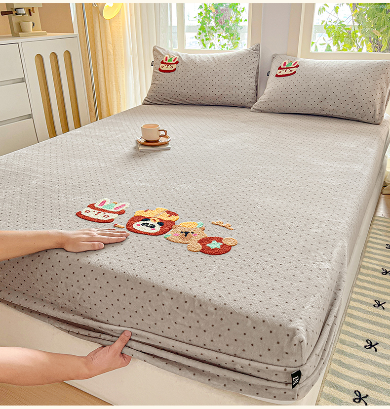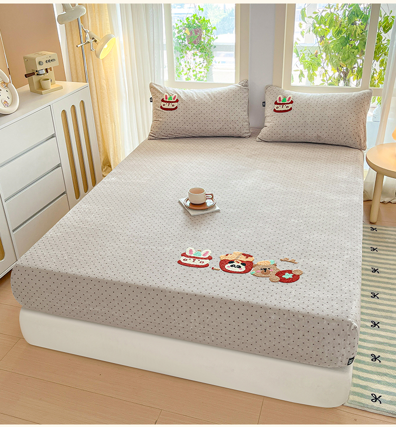 当前位置: 91家纺网 > 商品网购 > 床品套件 > 四件套 > 牛奶绒四件套 > 乐美家纺 2025新款A类高克重牛奶绒毛巾绣床笠三件套 贪吃熊