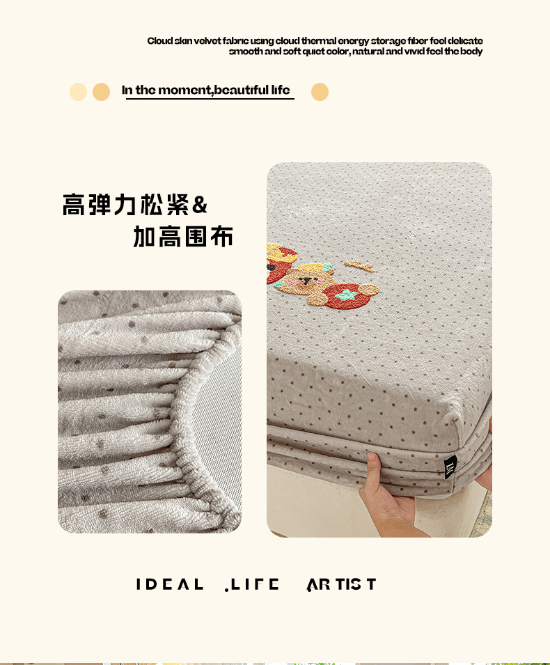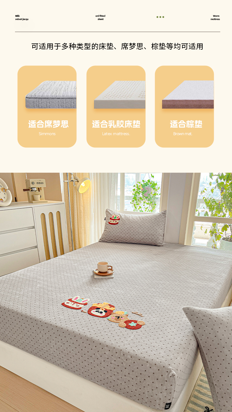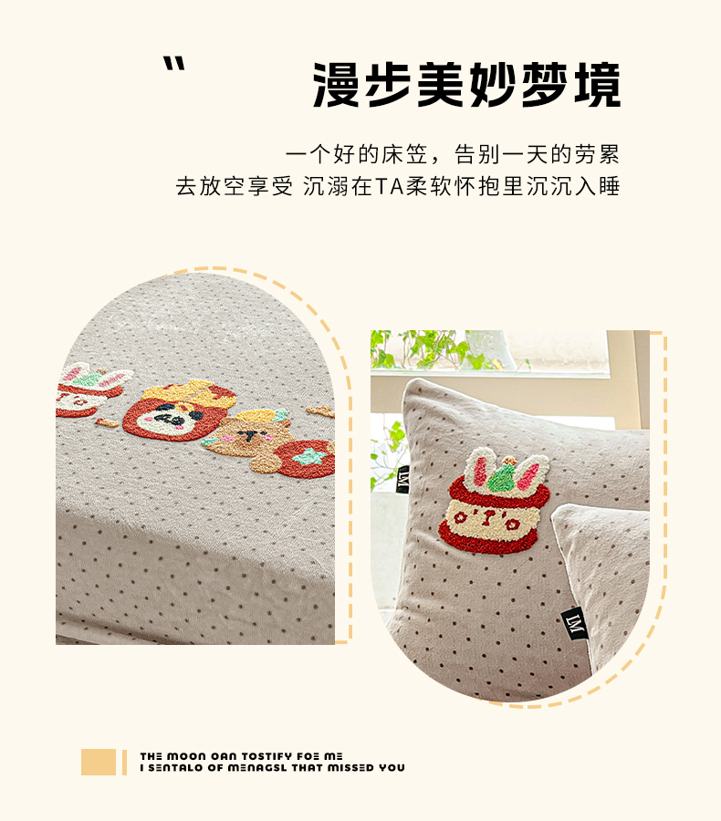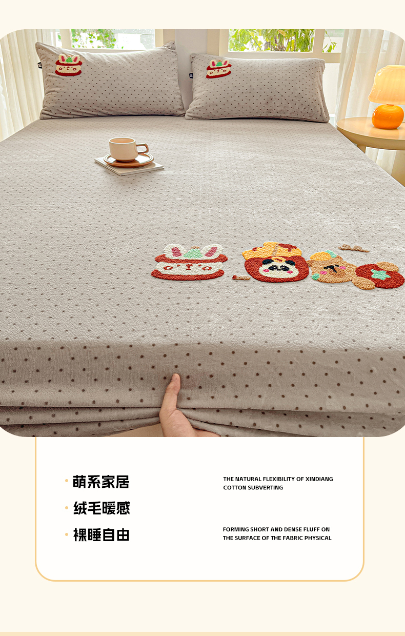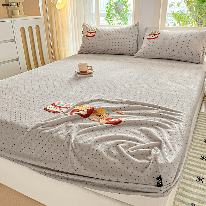 当前位置: 91家纺网 > 商品网购 > 床品套件 > 四件套 > 牛奶绒四件套 > 乐美家纺 2025新款A类高克重牛奶绒毛巾绣床笠三件套 贪吃熊