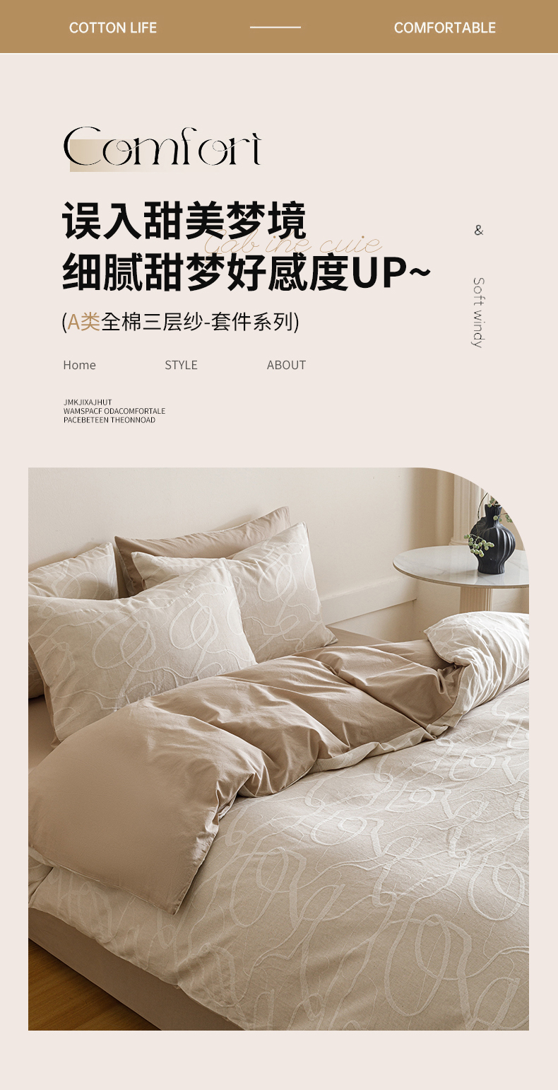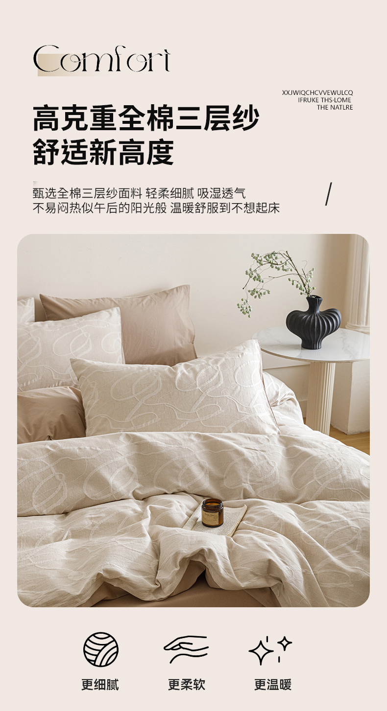 商品名称:春皖家纺 2026新款A类全棉双层纱AB版简约四件套 云栀