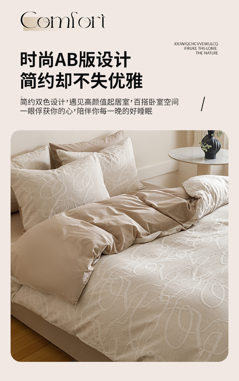 春皖家纺 2026新款A类全棉双层纱AB版简约四件套 云栀