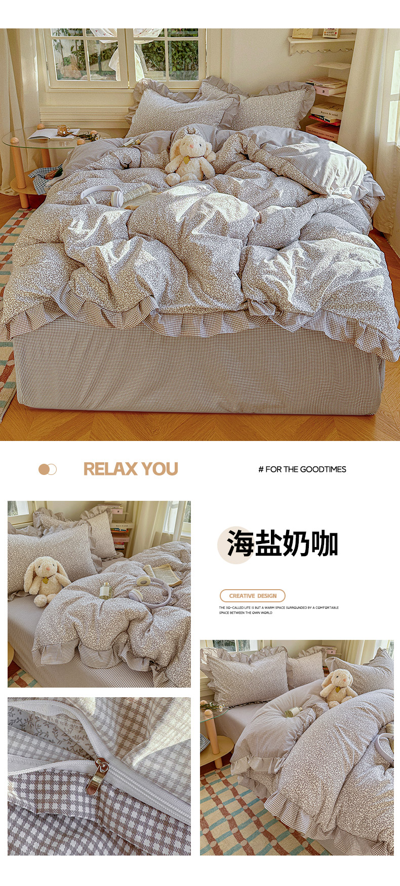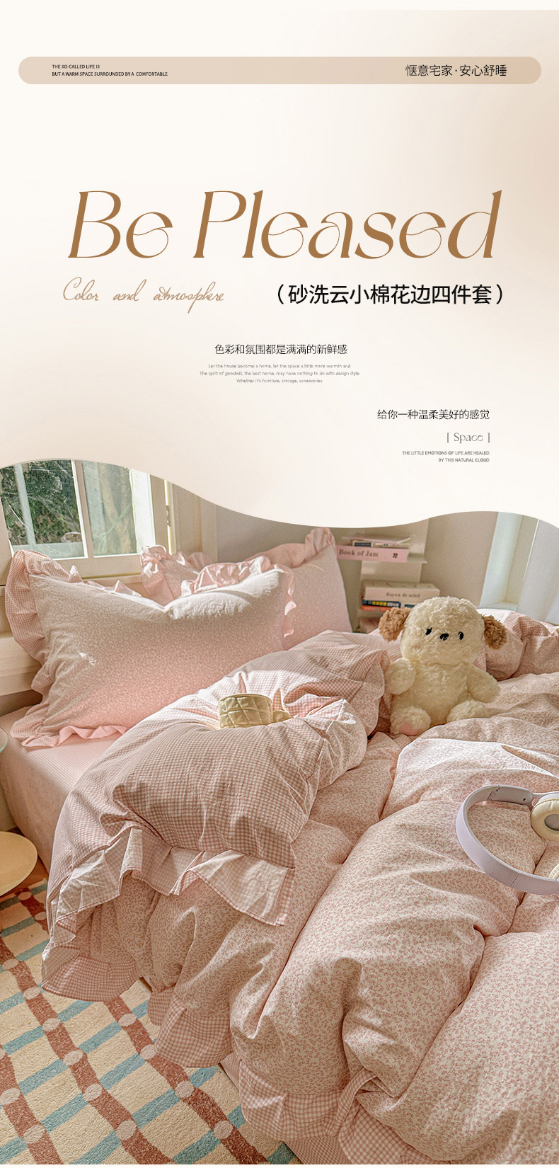 当前位置: 91家纺网 > 商品网购 > 床品套件 > 四件套 > 水洗棉四件套 > 金梦拉家纺 2026春夏韩版花边款小碎花古法水洗仿棉A类砂洗云小棉四件套 薄荷奶绿