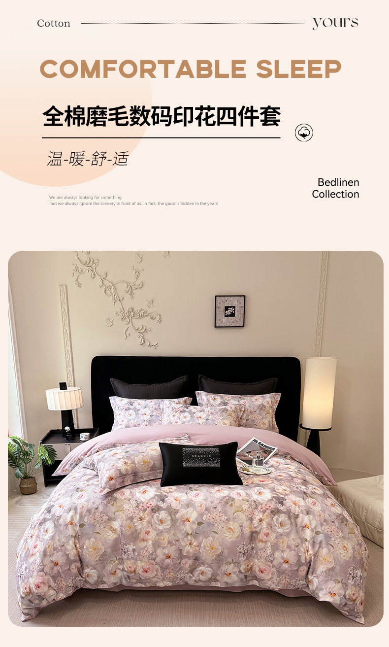 当前位置: 91家纺网 > 商品网购 > 床品套件 > 四件套 > 全棉普通四件套 > 优迈 2026新款全棉纯棉磨毛数码印花四件套 炫彩花园