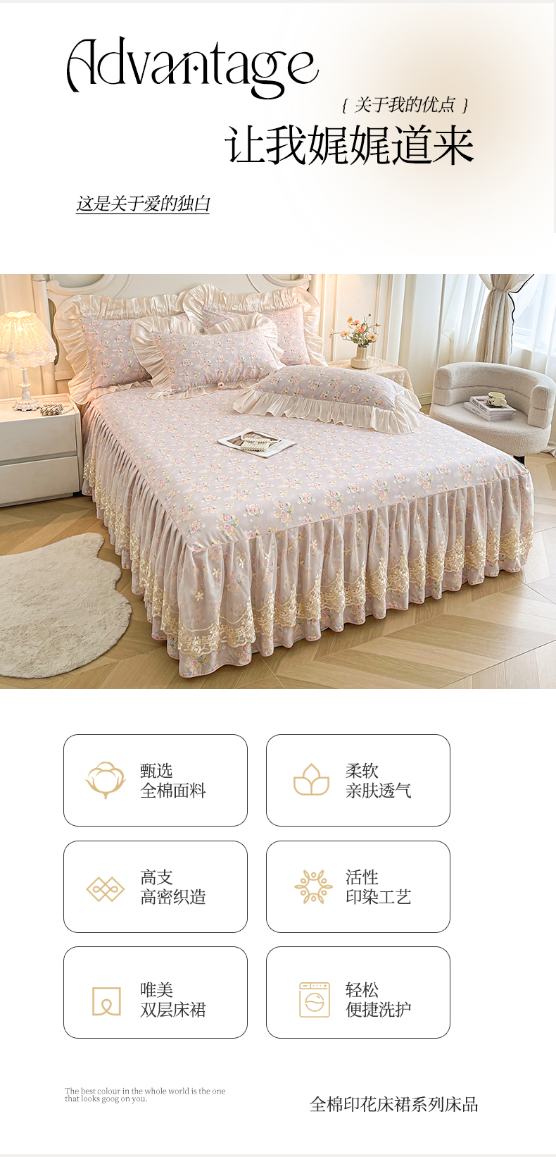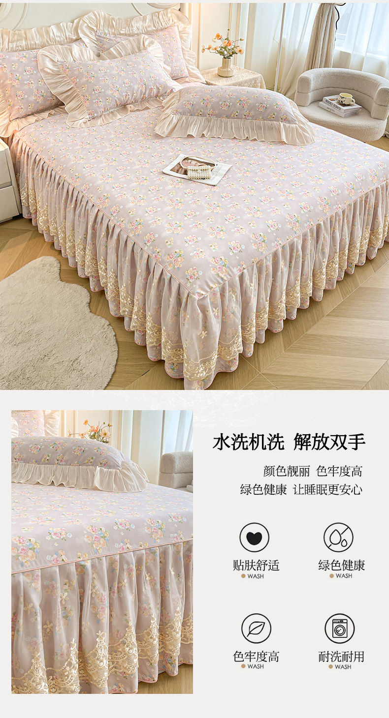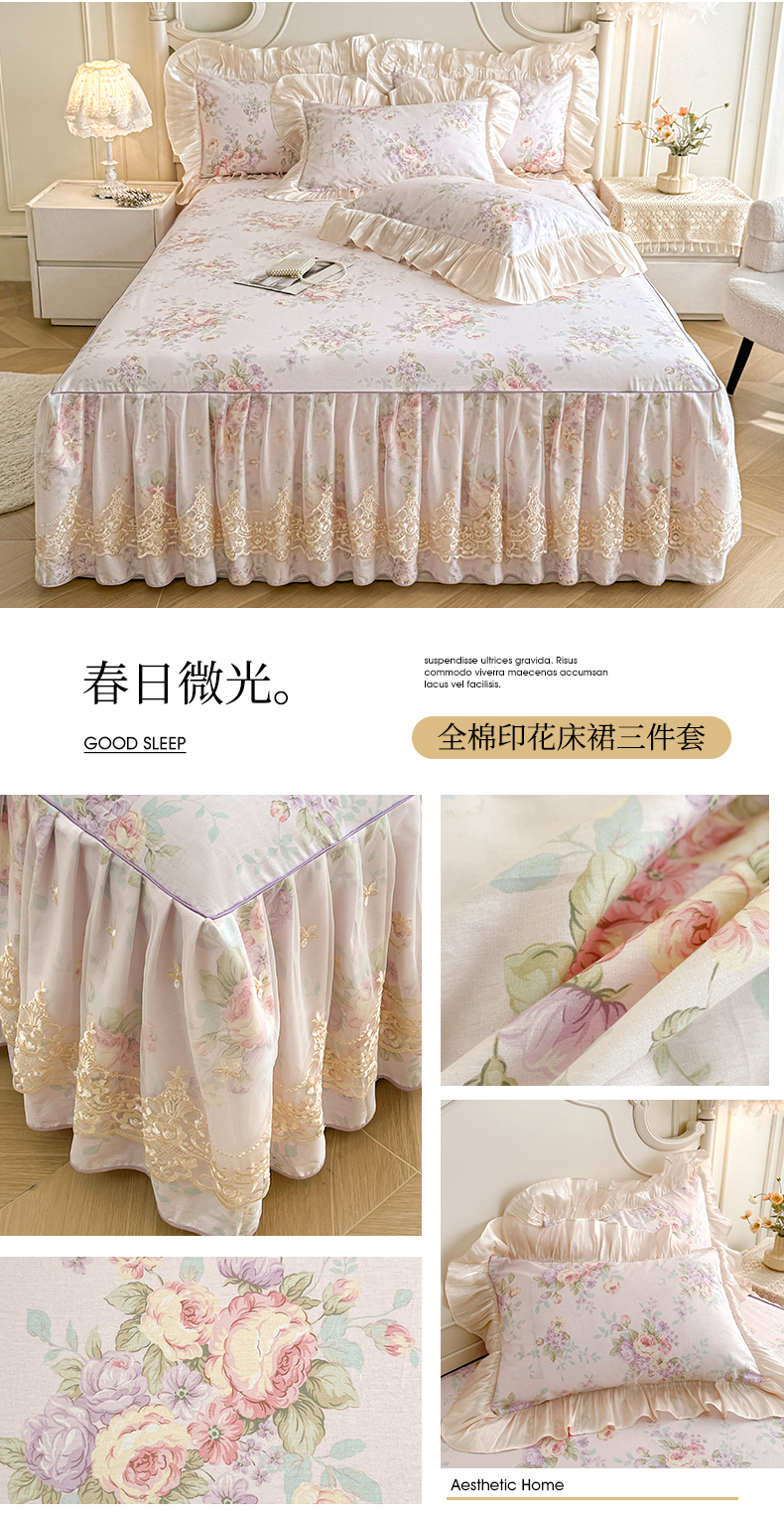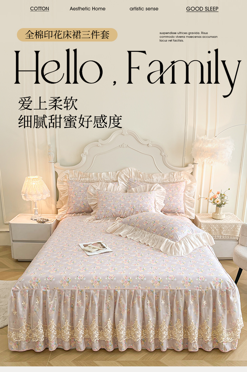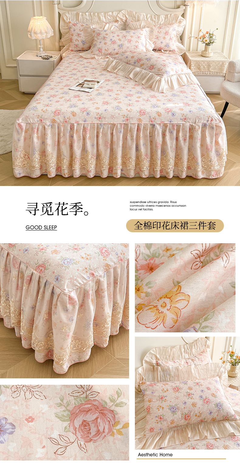 当前位置: 91家纺网 > 商品网购 > 床品套件 > 三件套 > 宜凡家纺 2026新款全棉印花床裙款三件套 晴空