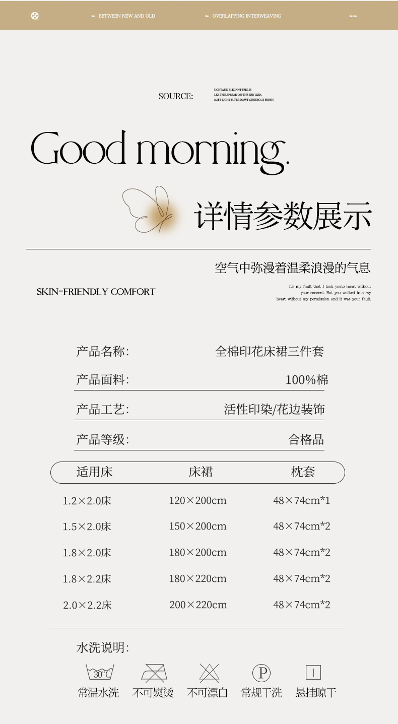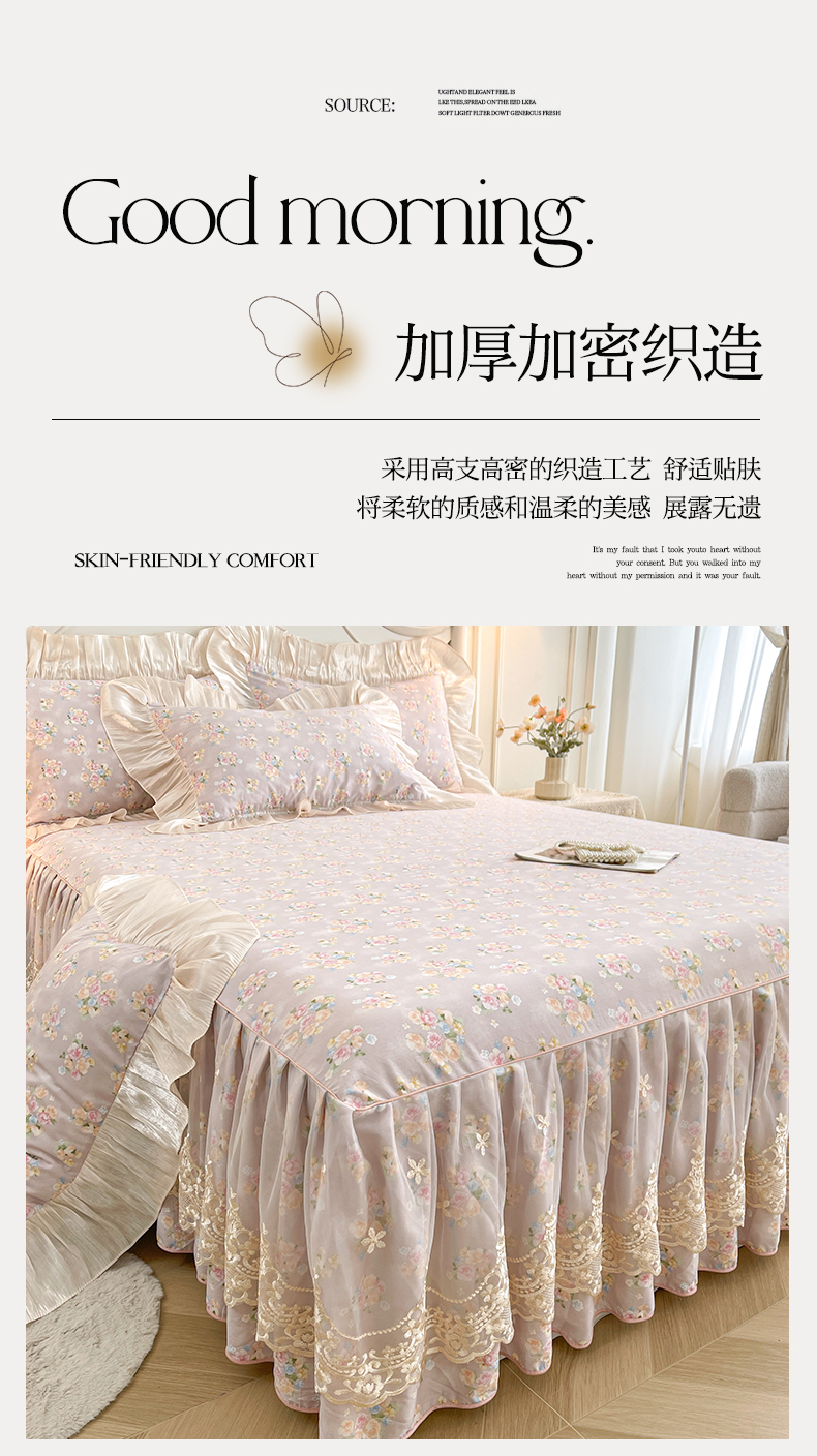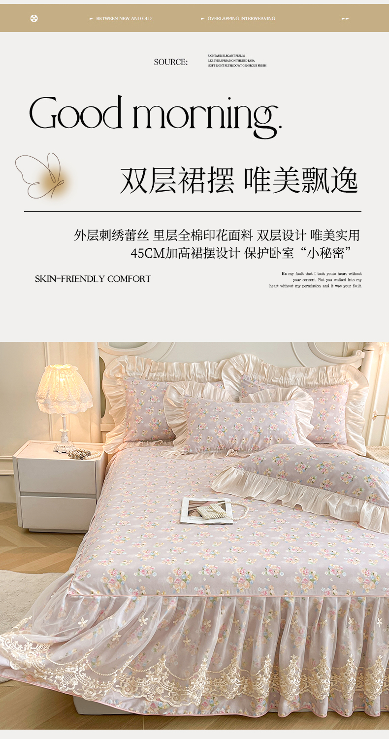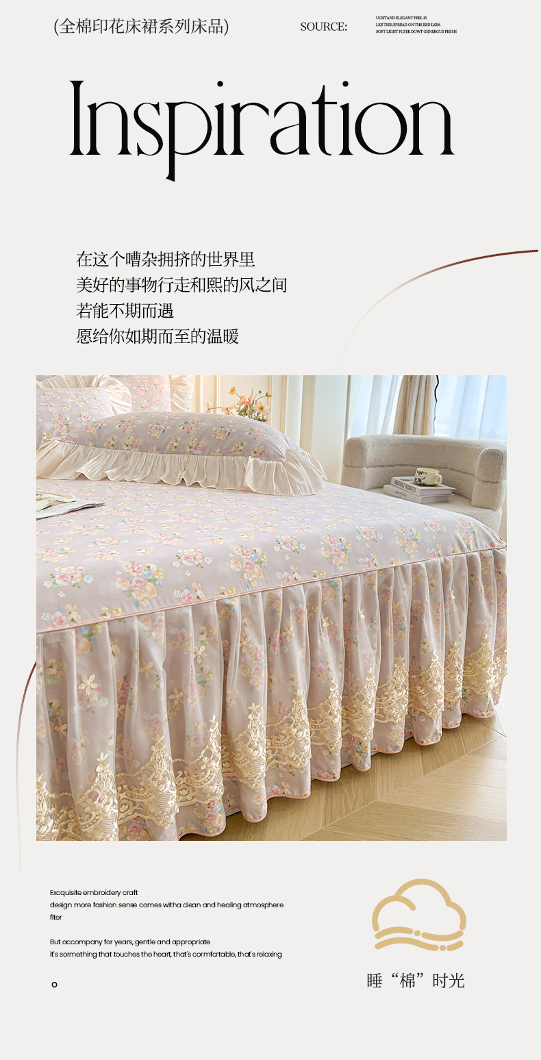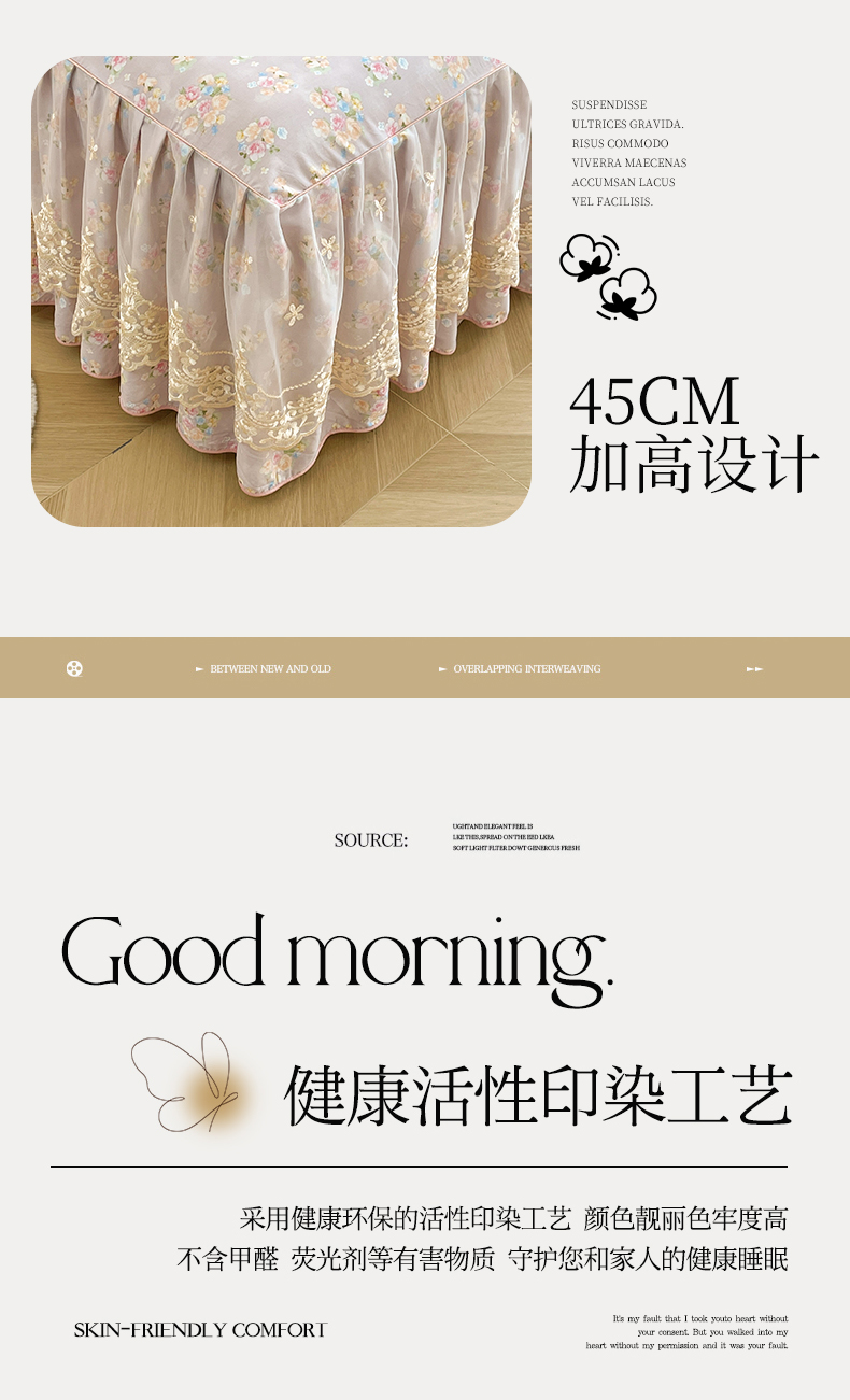 当前位置: 91家纺网 > 商品网购 > 床品套件 > 三件套 > 宜凡家纺 2026新款全棉印花床裙款三件套 晴空