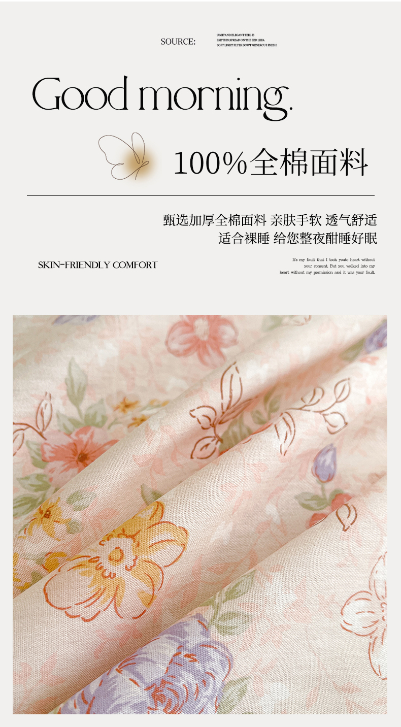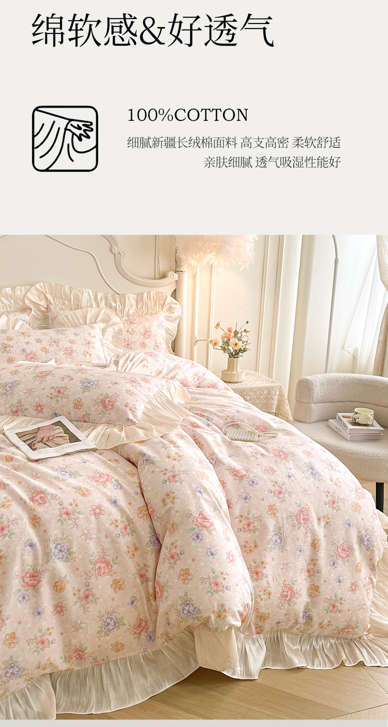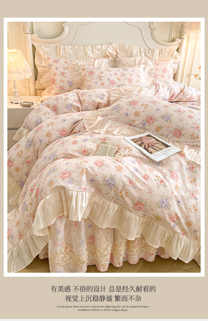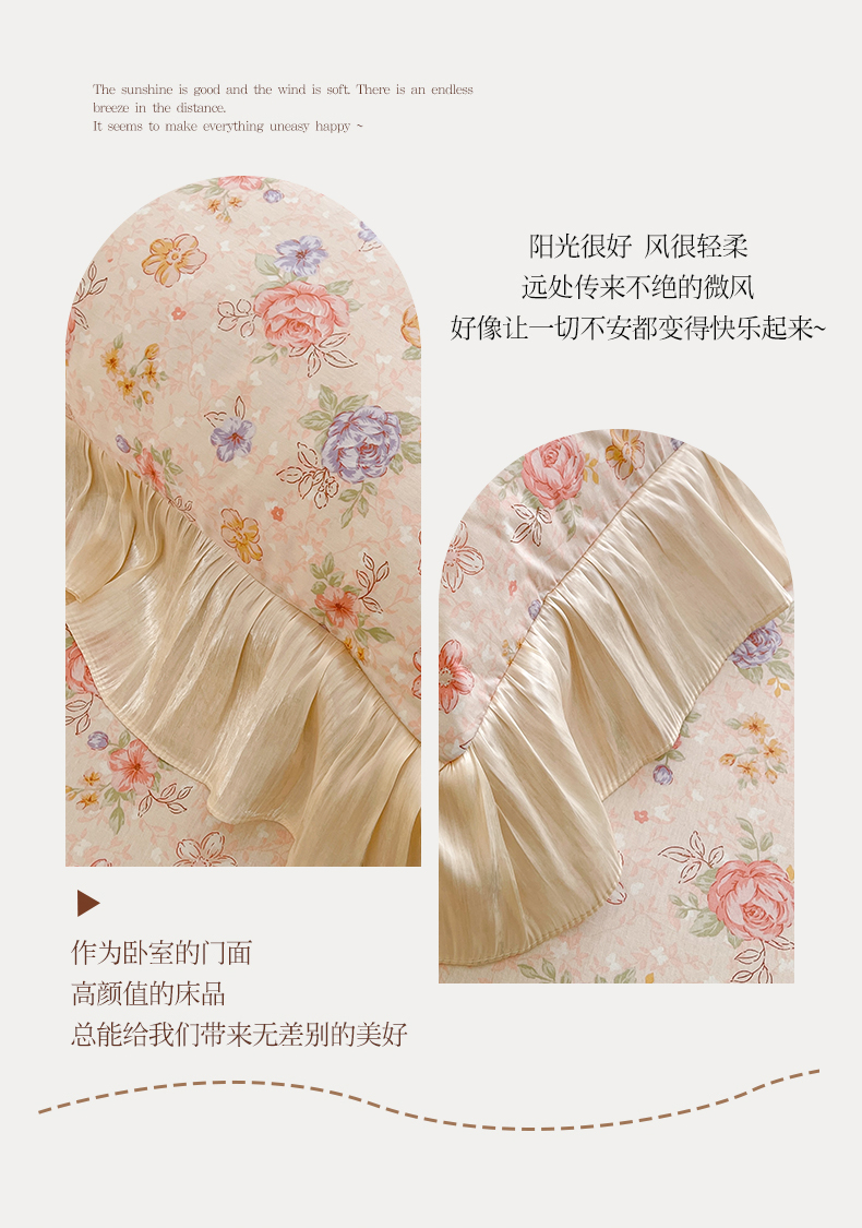 当前位置: 91家纺网 > 商品网购 > 床品套件 > 四件套 > 全棉普通四件套 > 宜凡家纺 2026新款全棉印花床裙款四件套 寻觅花季