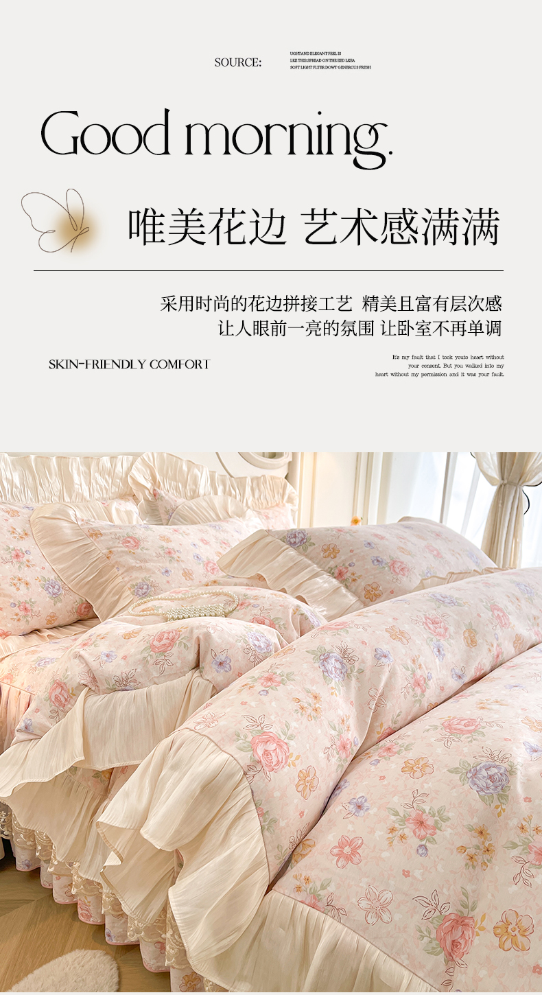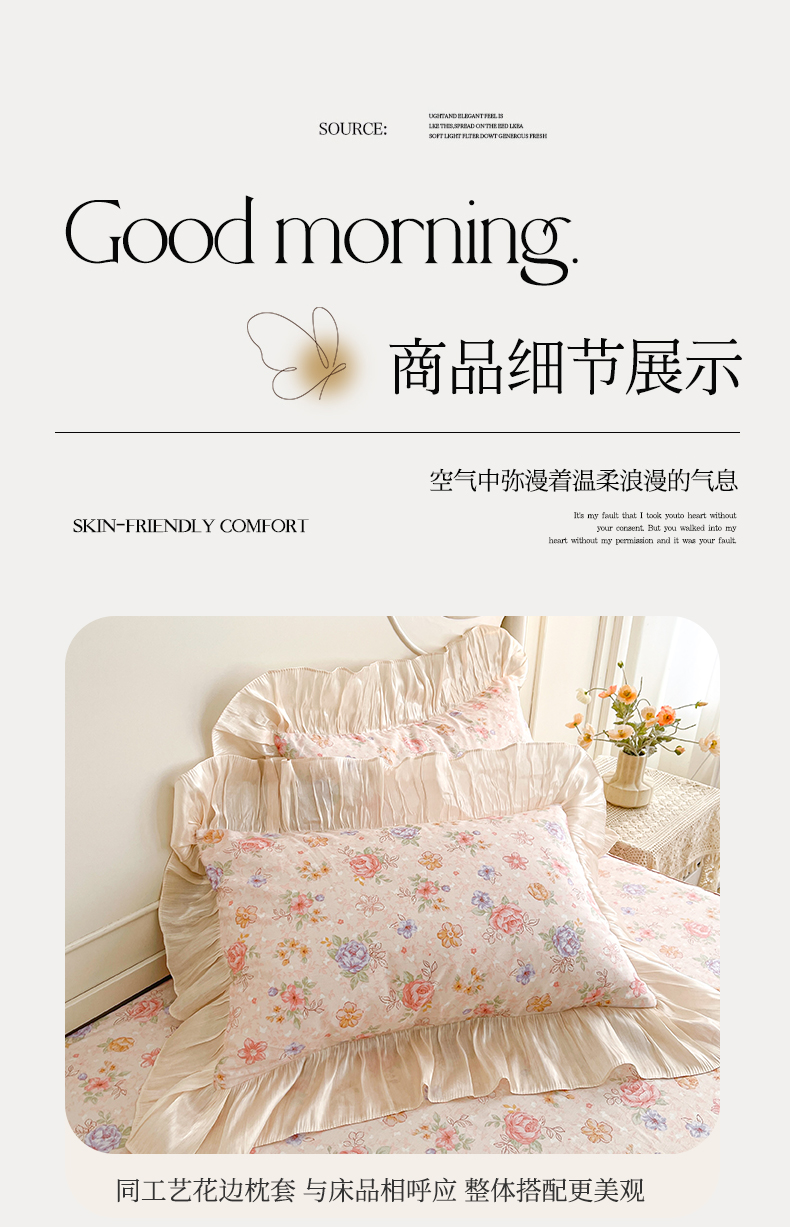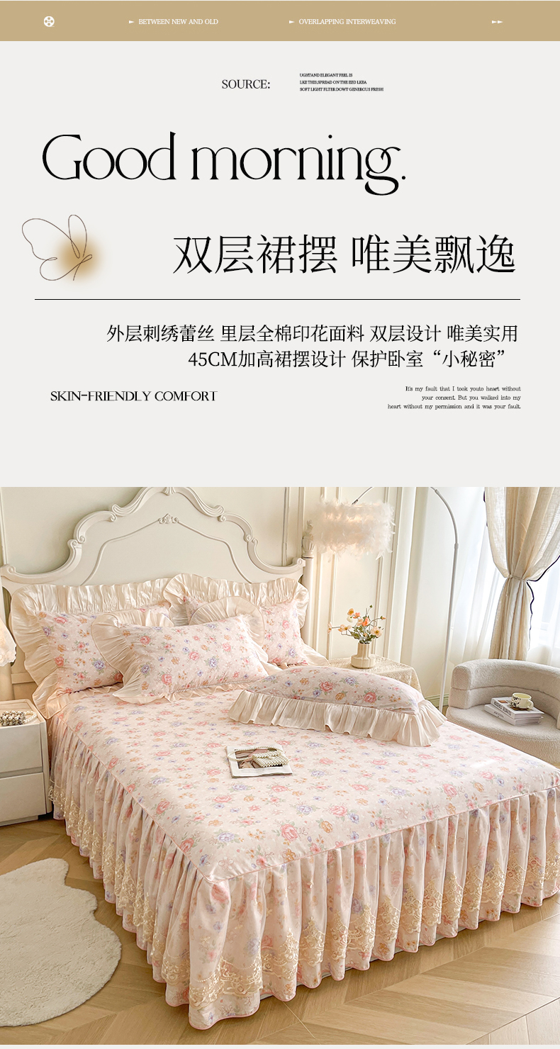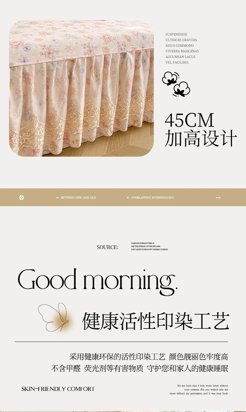当前位置: 91家纺网 > 商品网购 > 床品套件 > 四件套 > 全棉普通四件套 > 宜凡家纺 2026新款全棉印花床裙款四件套 寻觅花季