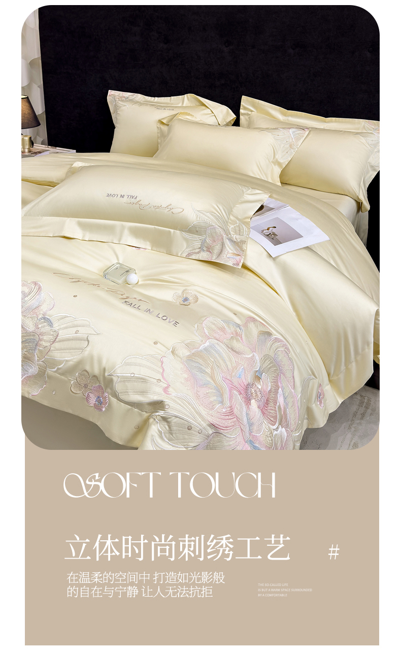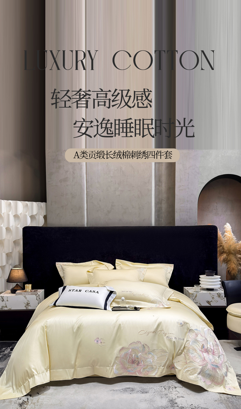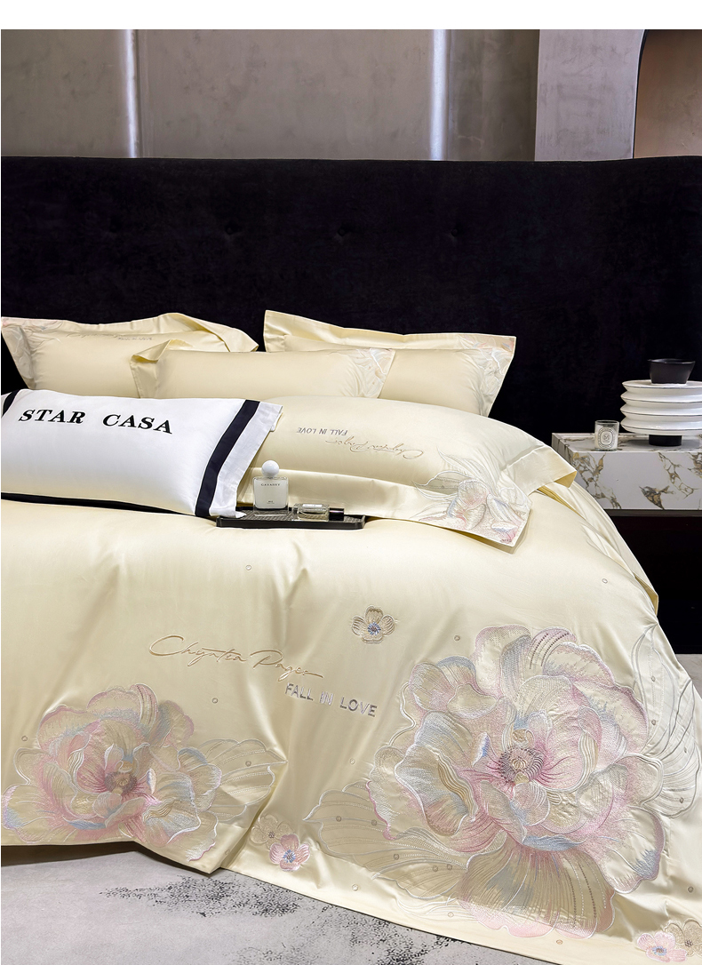 (总)星蕴家纺 2026新款A类新疆全棉刺绣四件套-千禧,千禧粉,高级灰,浅香槟,奶昔白