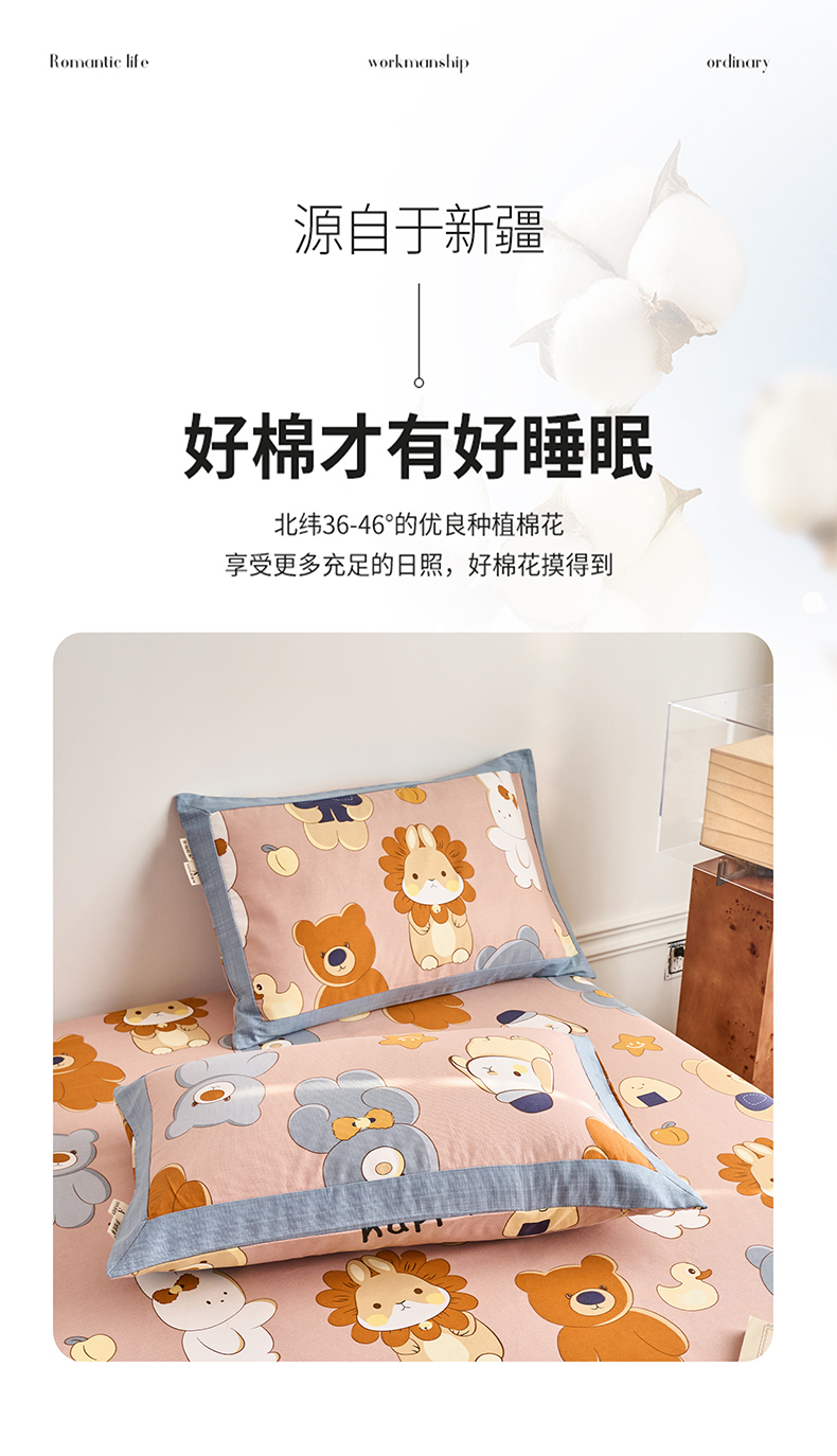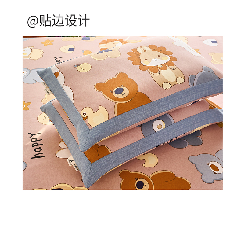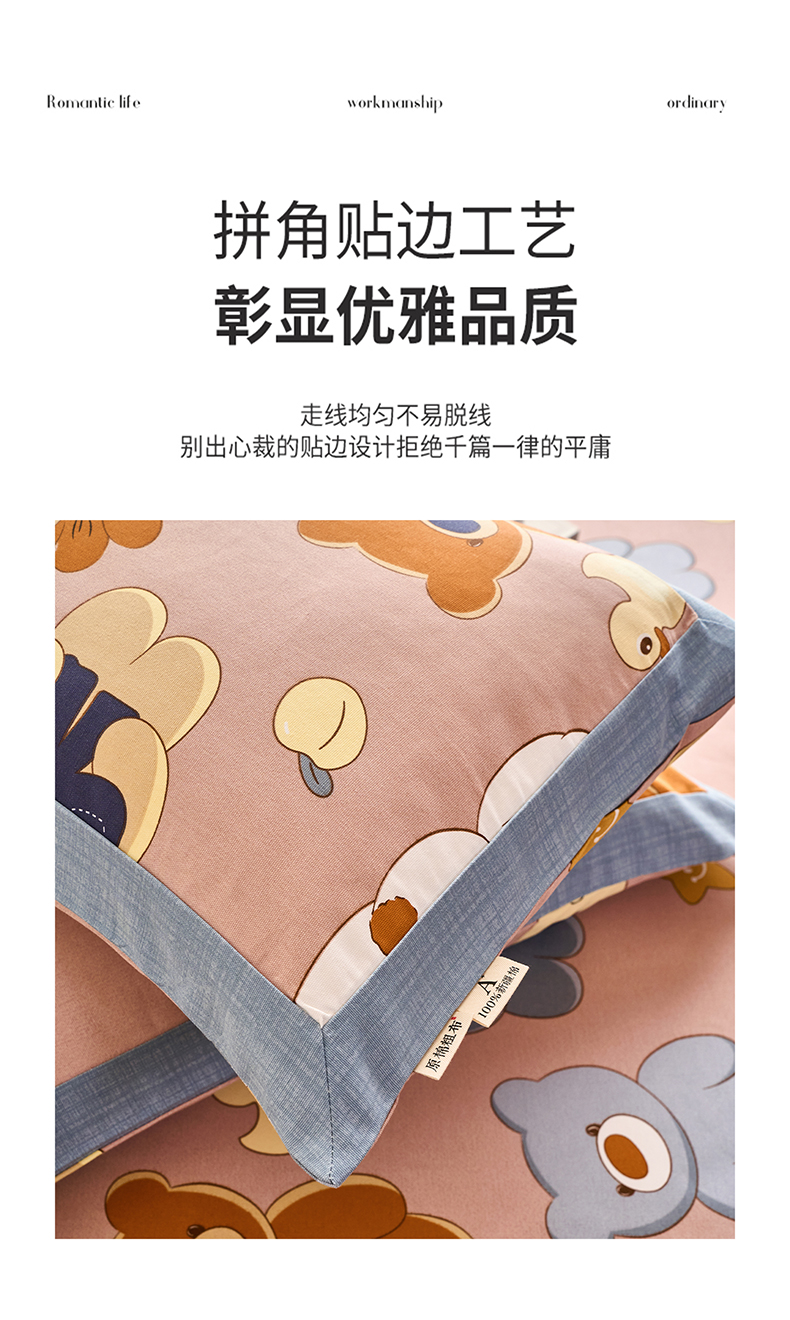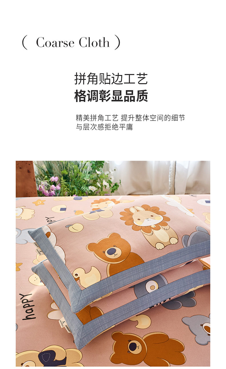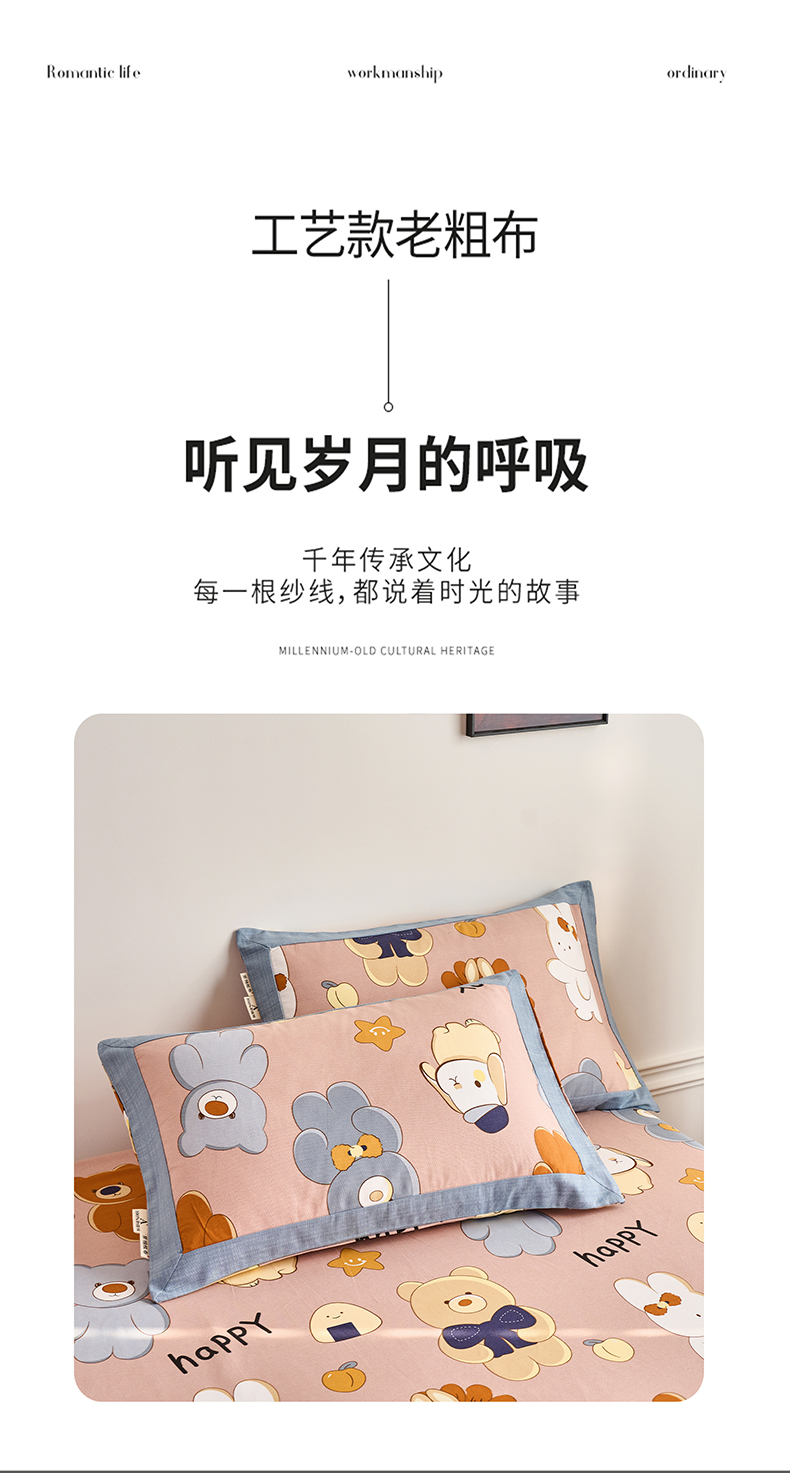 商品名称:春皖家纺 2026新款全棉老粗布工艺款单枕套枕套单件 快乐熊