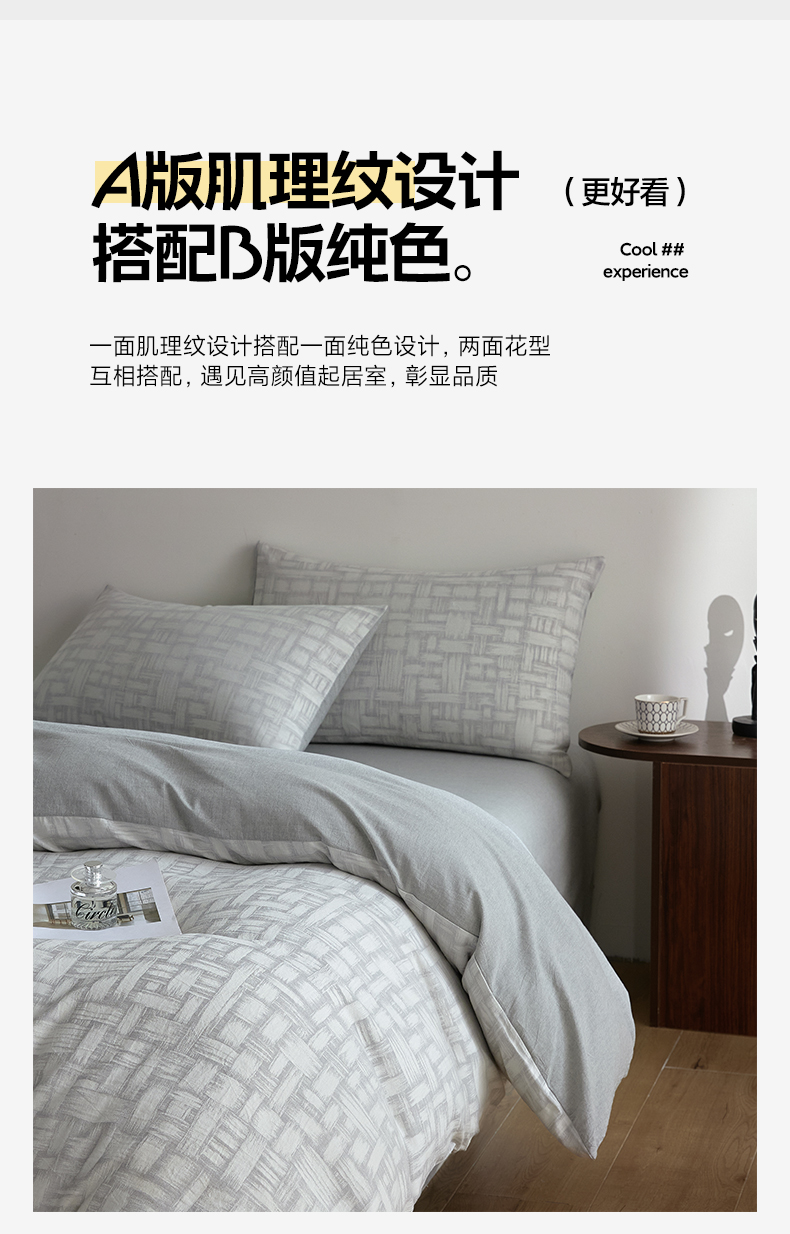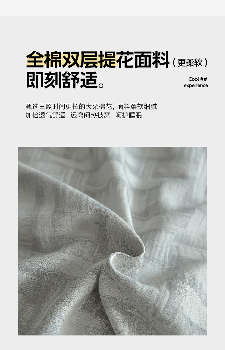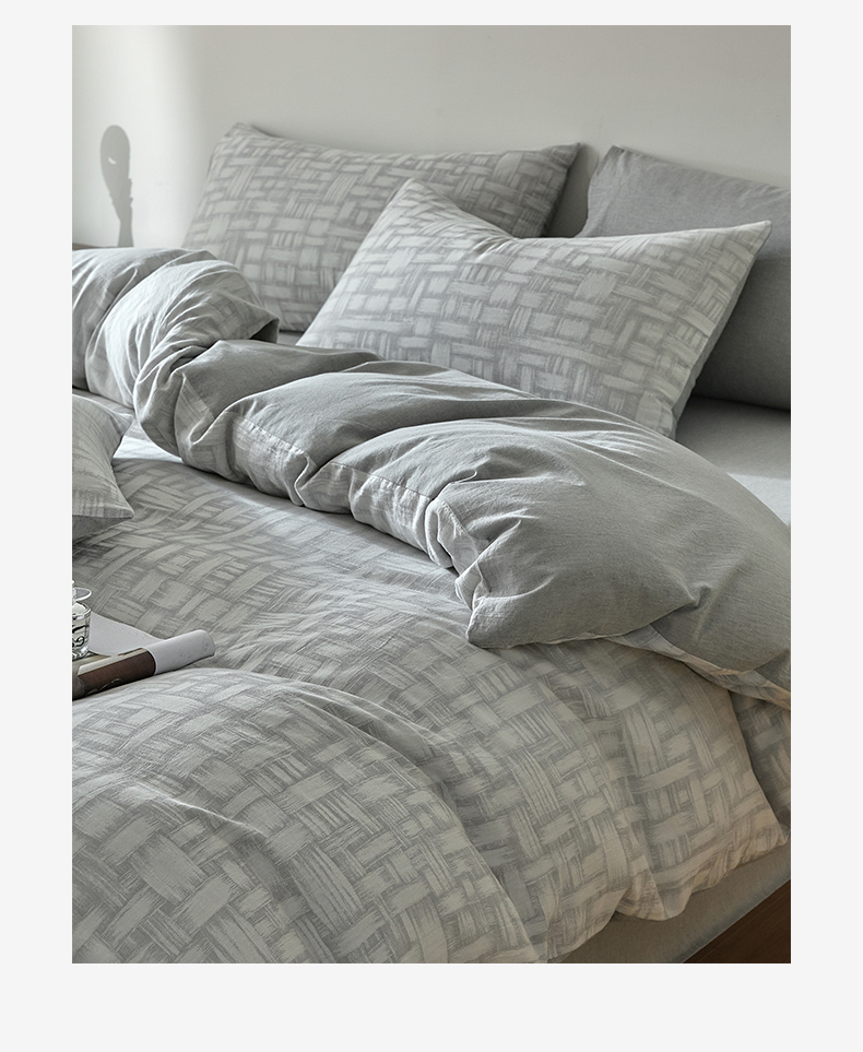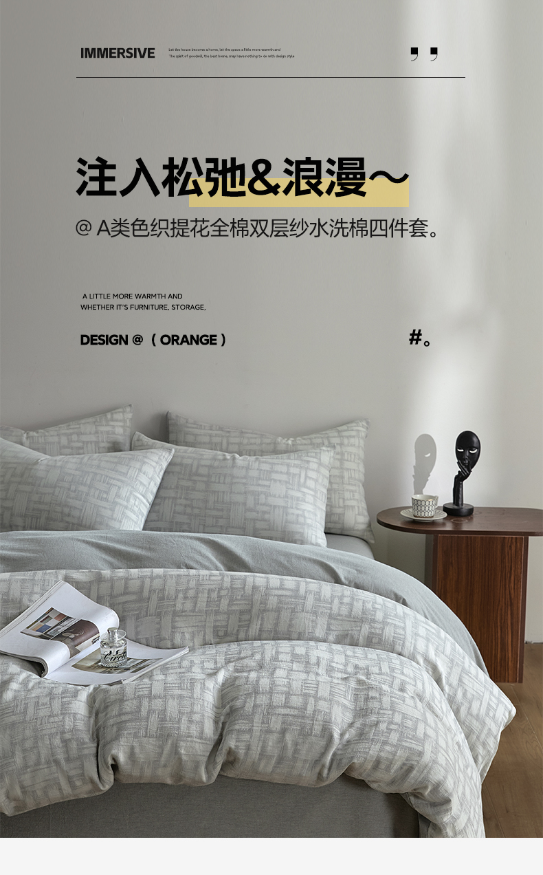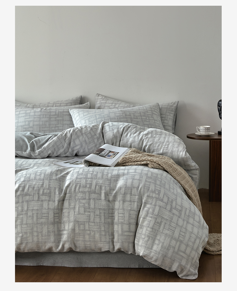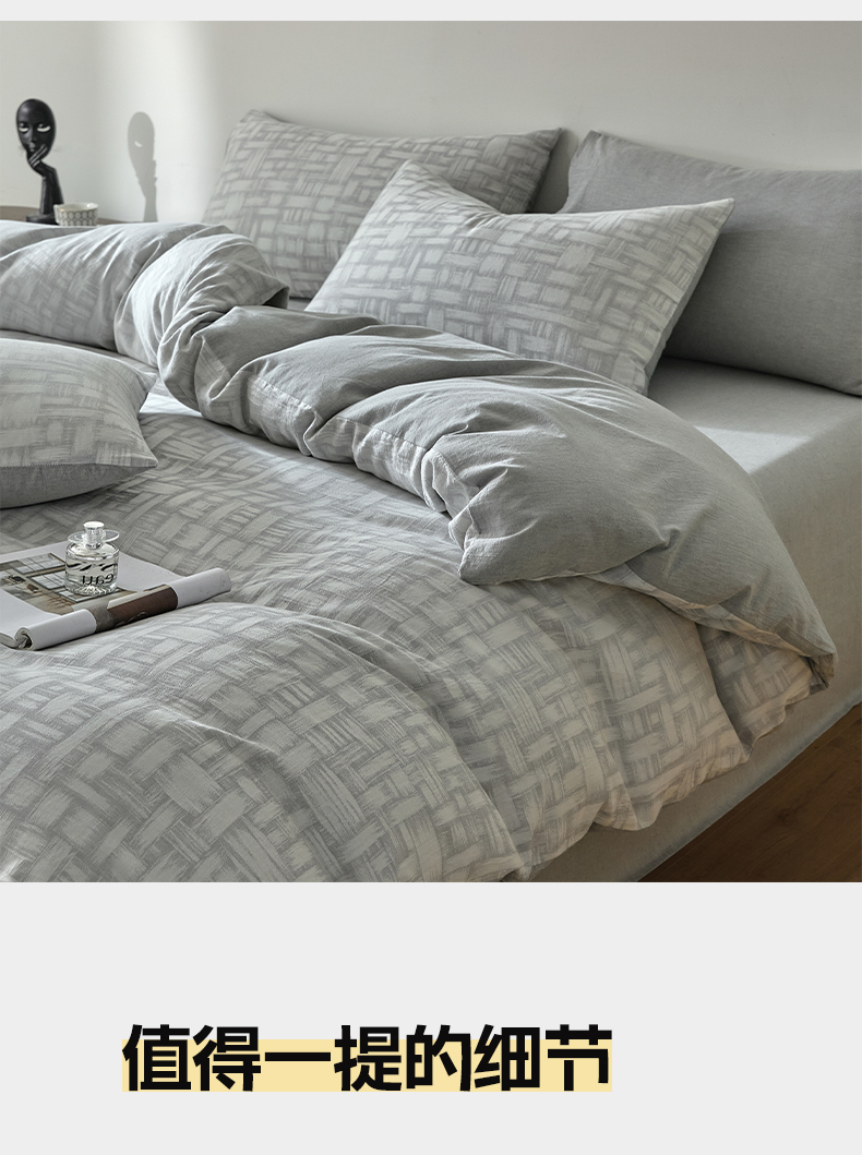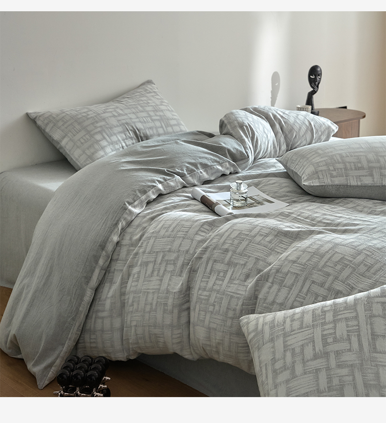 商品名称:如一 2026新款A类色织提花全棉双层纱水洗棉四件套 浮光灰
