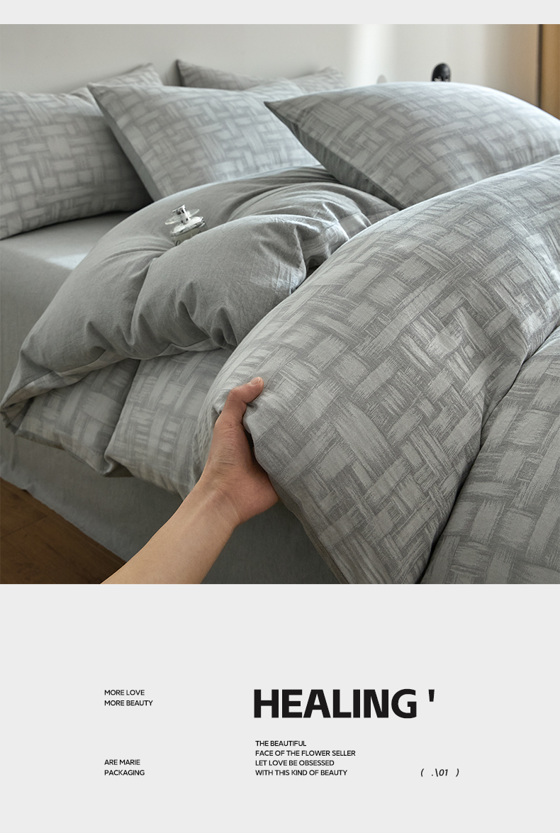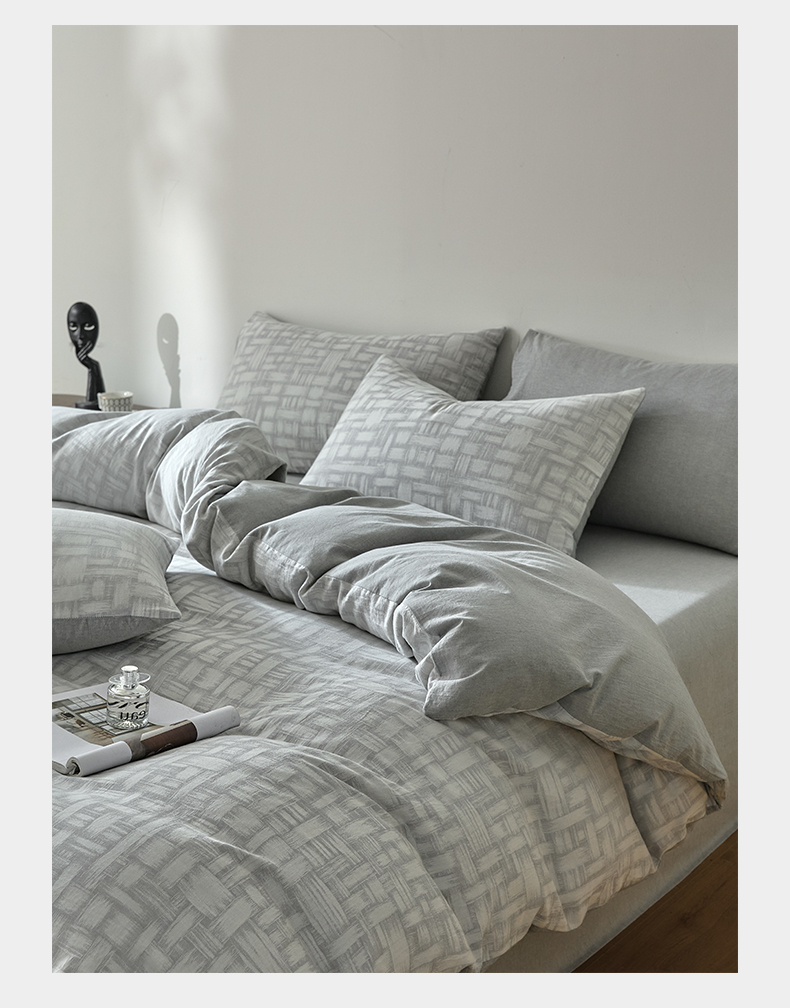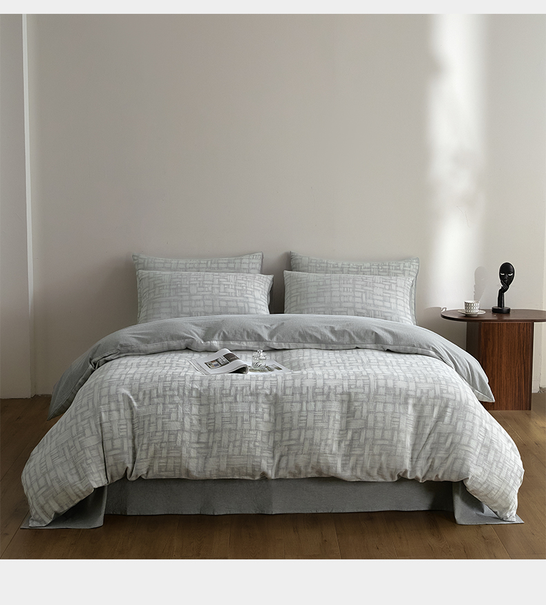 如一 2026新款A类色织提花全棉双层纱水洗棉四件套 浮光灰