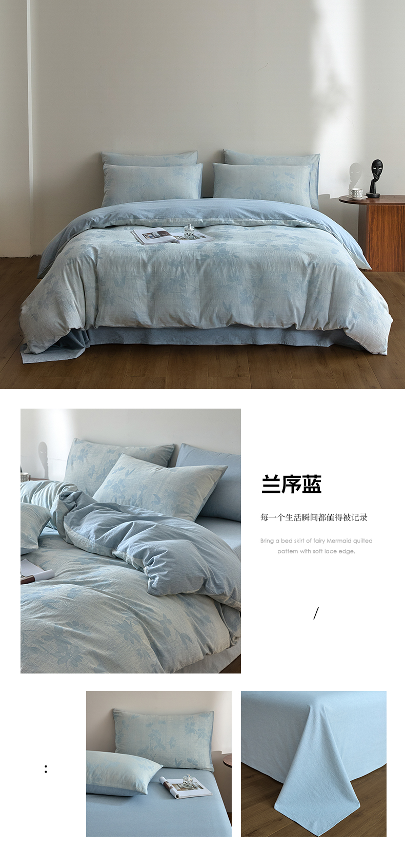 (总)如一 2026新款A类色织提花全棉双层纱水洗棉四件套,序章蓝,序章粉,序章绿,蝶漫粉,蝶漫灰,蝶漫咖,蝶漫绿,浮光粉,浮光灰,浮光咖,浮光绿,花忆粉,花忆灰,花忆绿,骏影黑,骏影蓝,骏影绿,兰序咖,兰序蓝,兰序绿,兰序紫,叶笙粉,叶笙咖,叶笙绿