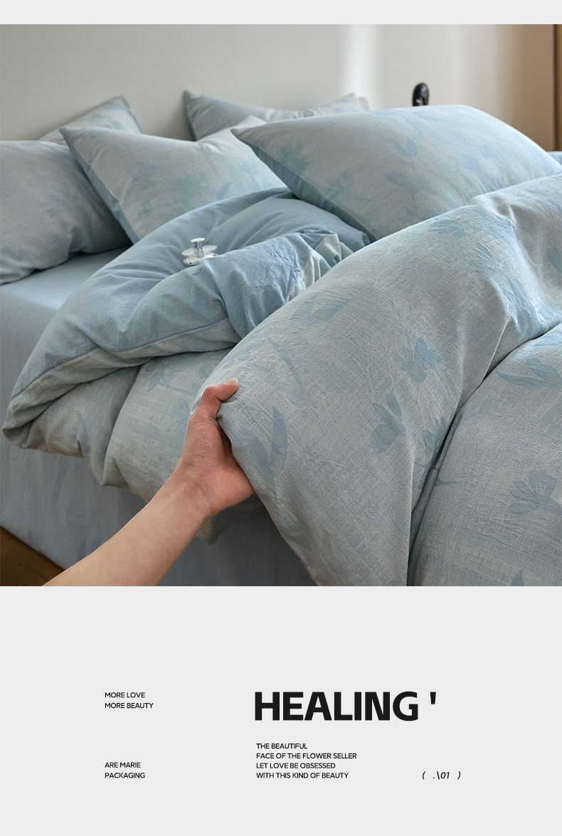 (总)如一 2026新款A类复古全棉棉麻印花四件套-第二批,浮绘,花叙,觅影,墨染,叶蓝,叶绿