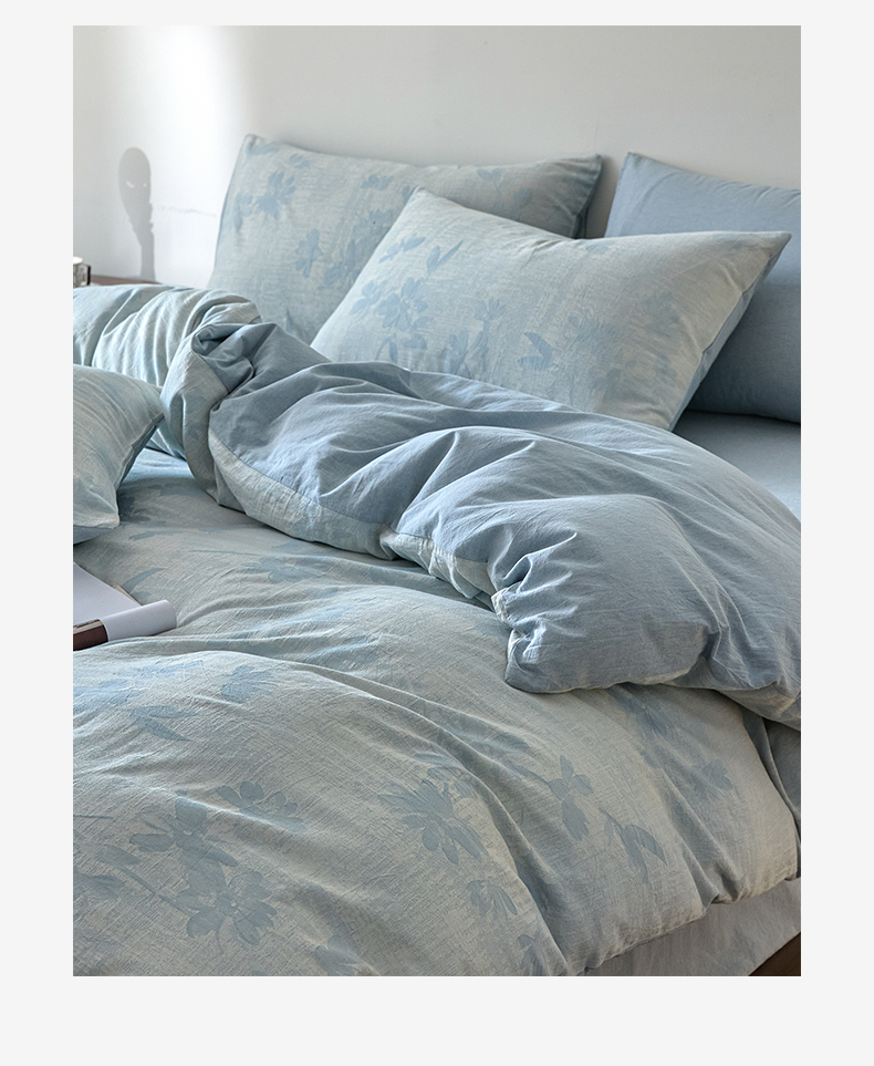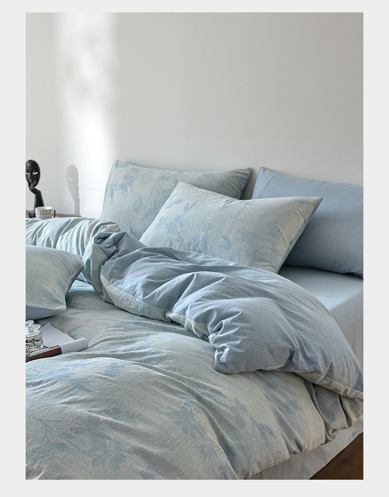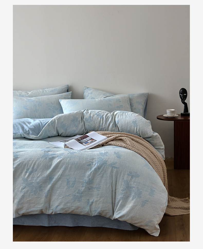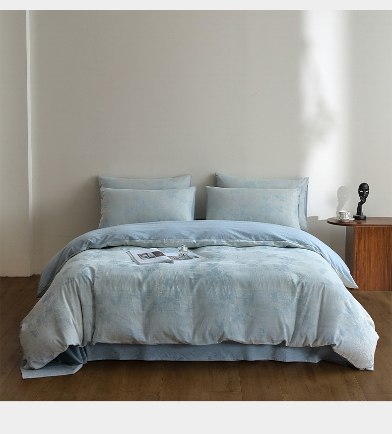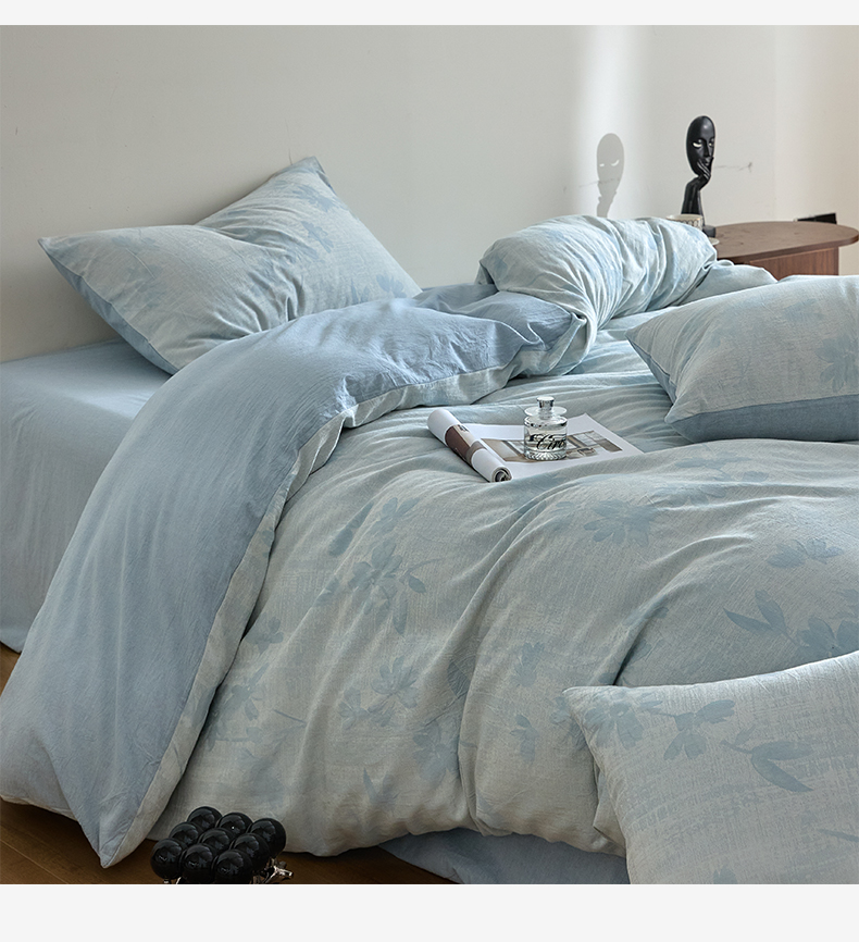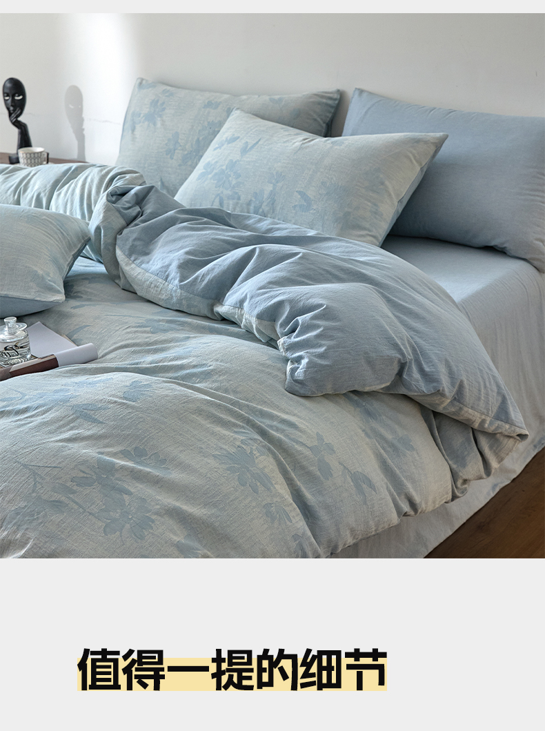 商品名称:如一 2026新款A类色织提花全棉双层纱水洗棉四件套 兰序蓝
