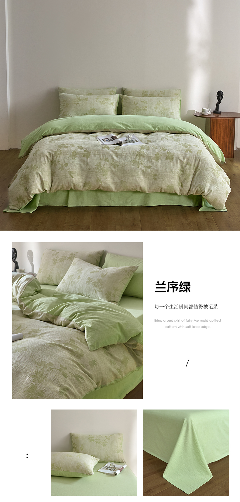(总)如一 2026新款色织提花全棉水洗棉四件套第一批,叶笙-绿,叶笙-咖,兰序-绿,叶笙-粉,兰序-紫,兰序-蓝,兰序-咖